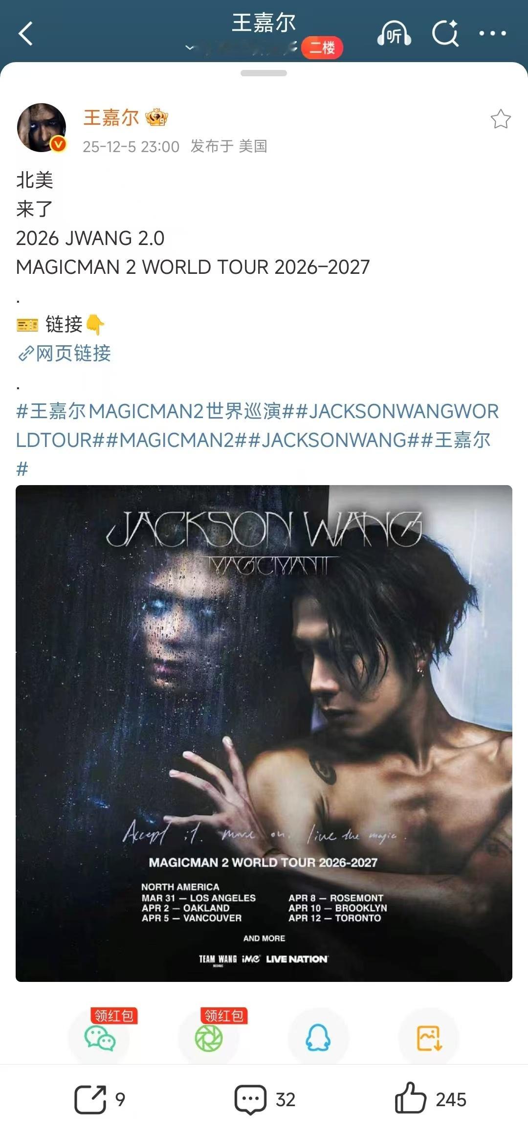 王嘉尔官宣世巡北美站 救命!北美六城巡演突然空降,洛杉矶、温哥华等城市将迎来专属音乐盛宴🥹 十五国杂志封面还没看够,又迎来世巡新惊喜,嘉尔的国际业务能力永远在超纲,这波福利属实让我慕了!