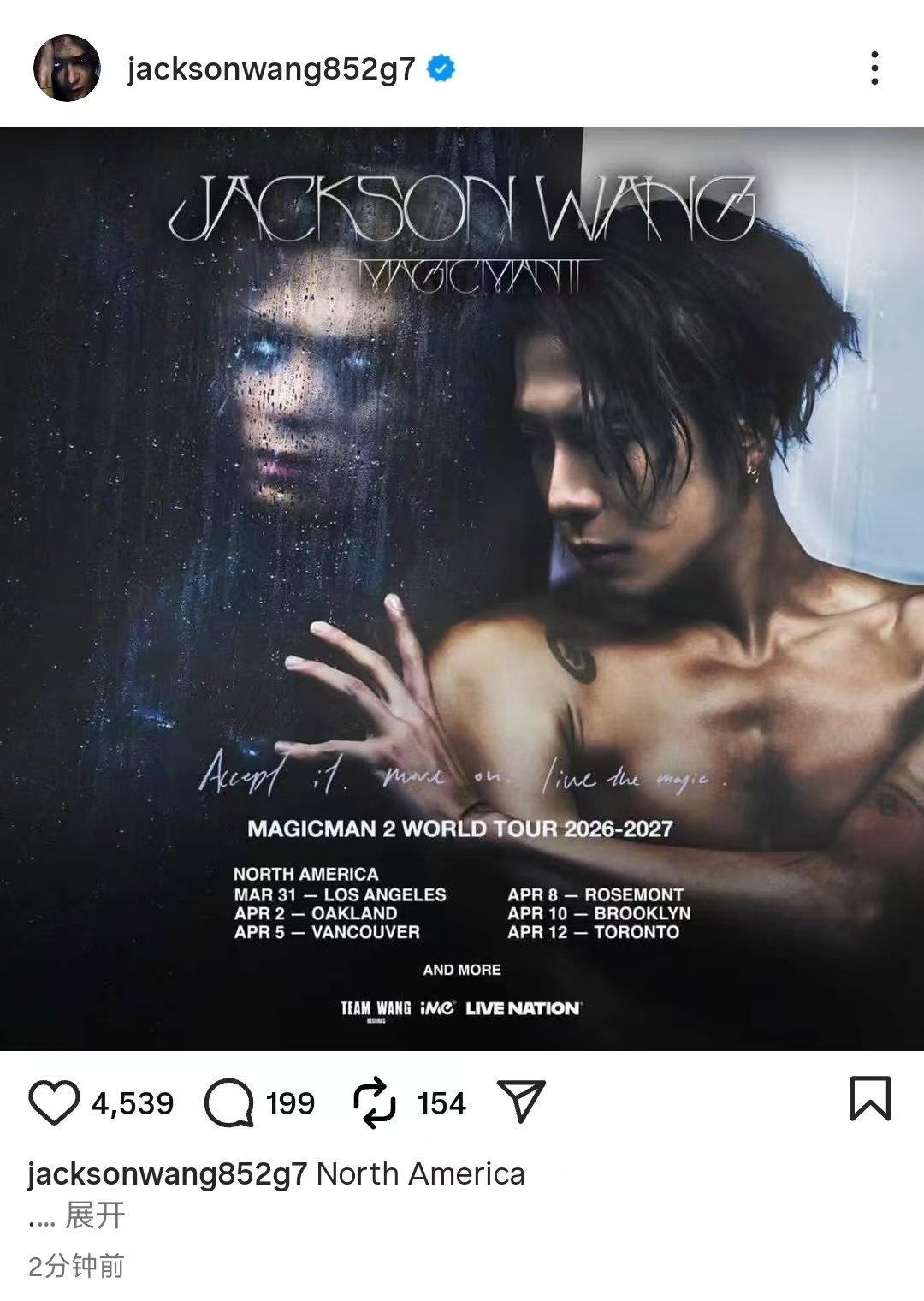 王嘉尔官宣世巡北美站 救命!北美六城巡演突然空降,洛杉矶、温哥华等城市将迎来专属
