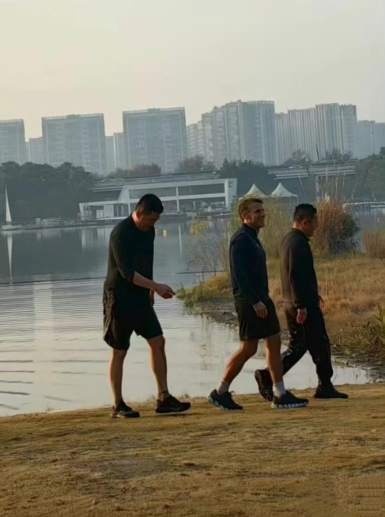 成都果然巴适得很,马克龙已经在锦城湖公园晨跑了。