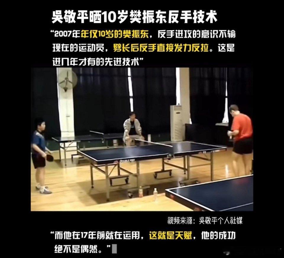 樊振东身上有着太多可怕的点了:身体的天赋,自律(骨子里的自我要求),赛场上的心理素质“大心脏”来看一下王涛与吴敬平两位教练对樊振东的评价➢