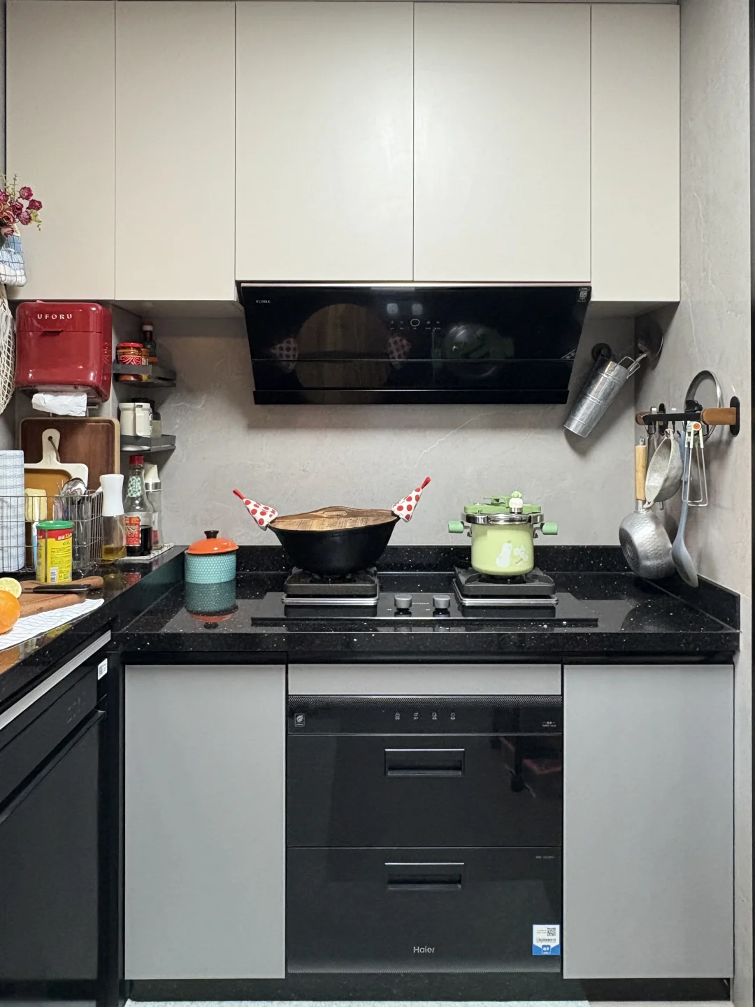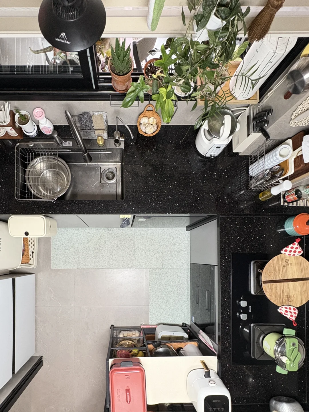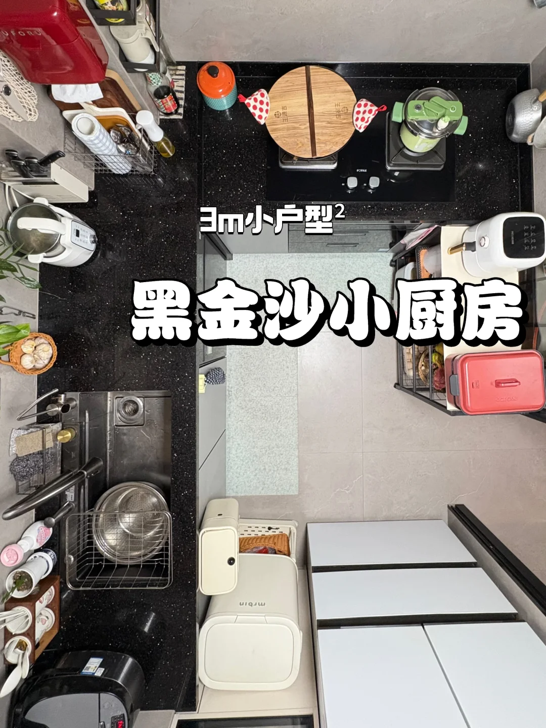 人生第一次被人嫌弃厨房做黑金沙灶台 说又丑又难看 现在谁家还装这种丑不拉几的黑金沙台面 偏偏我这不听劝做了 用了2年都觉得它很香 好打理又耐脏看久了也不丑反而更高级 厨房虽然小,但是好用😊