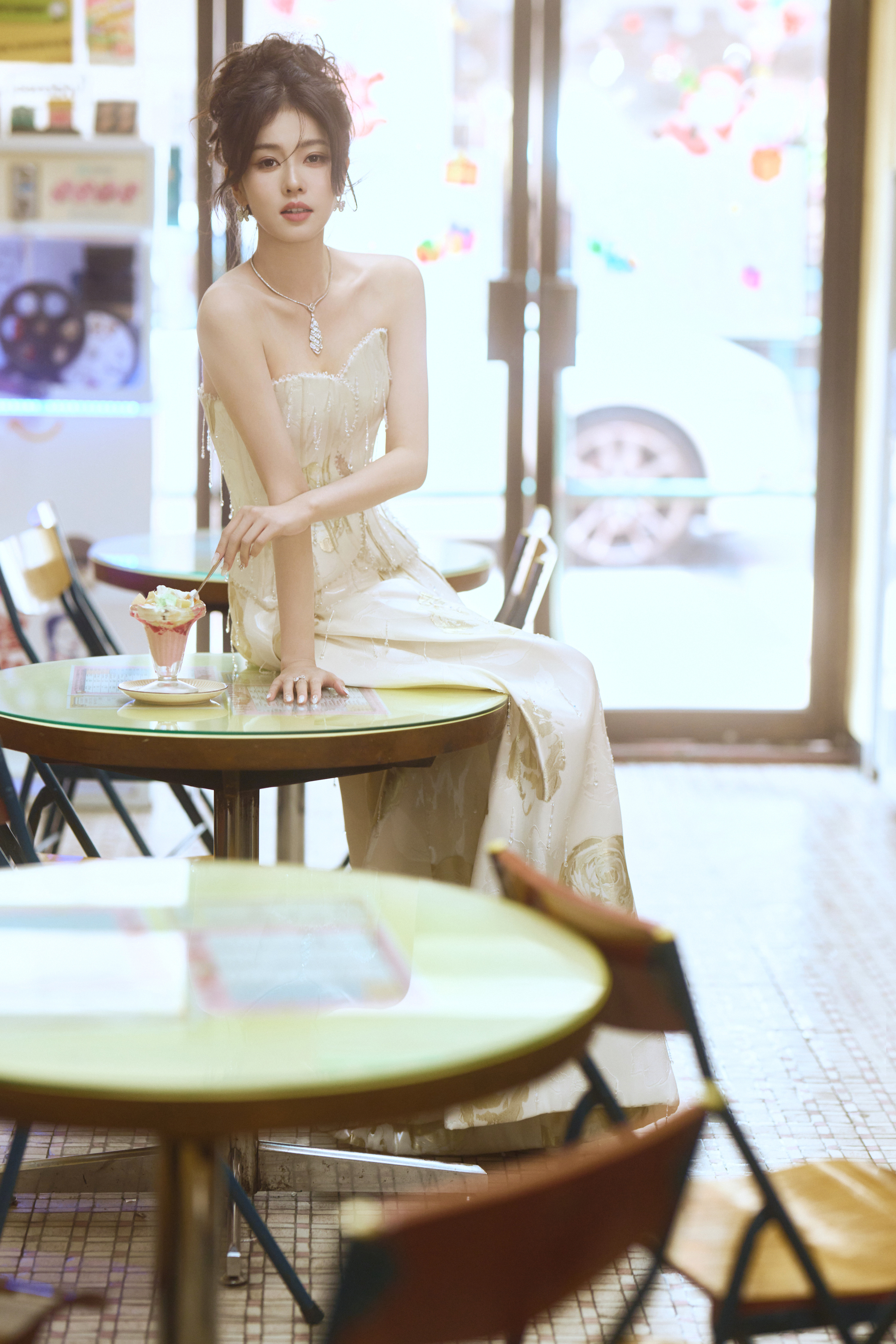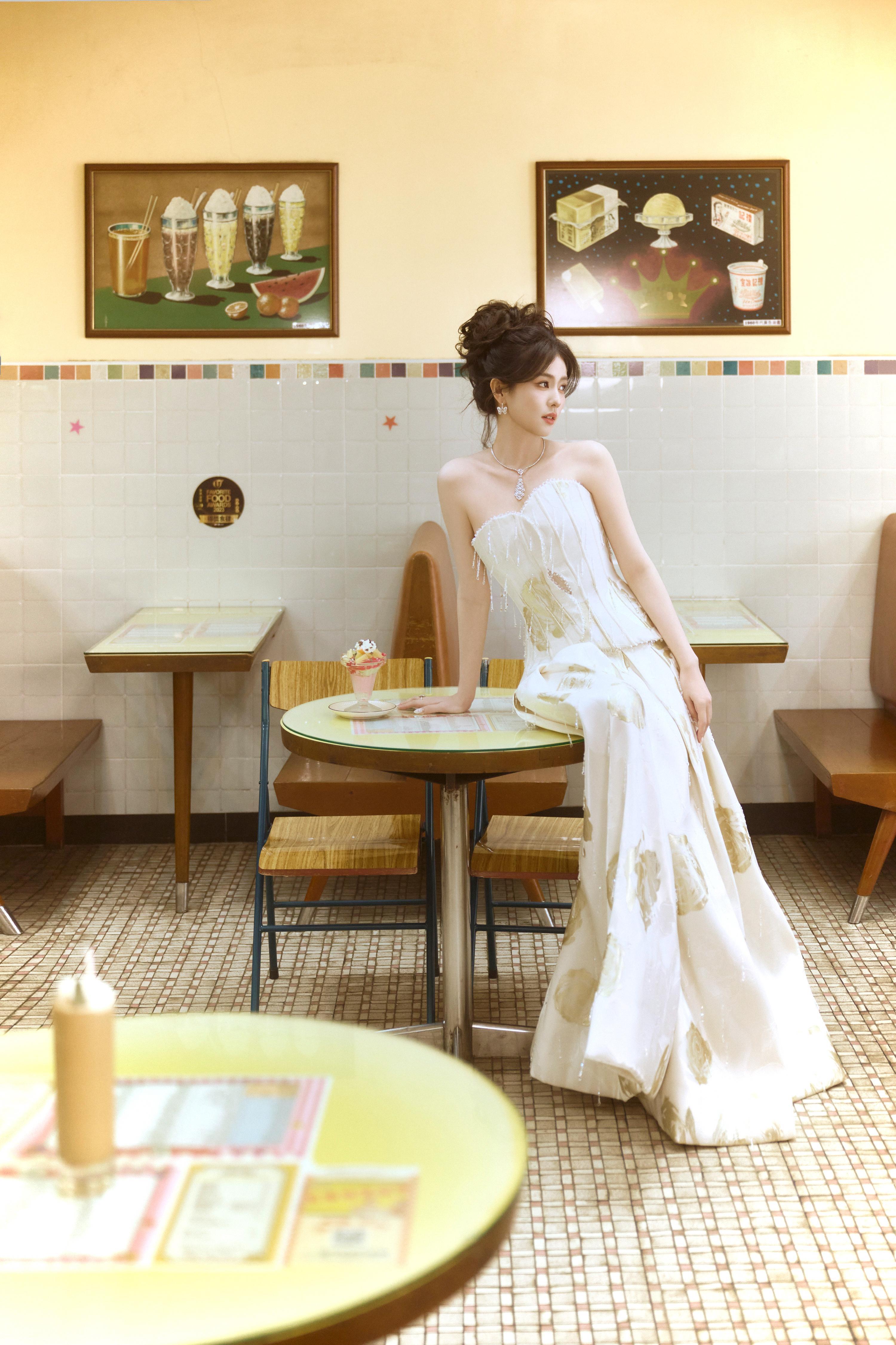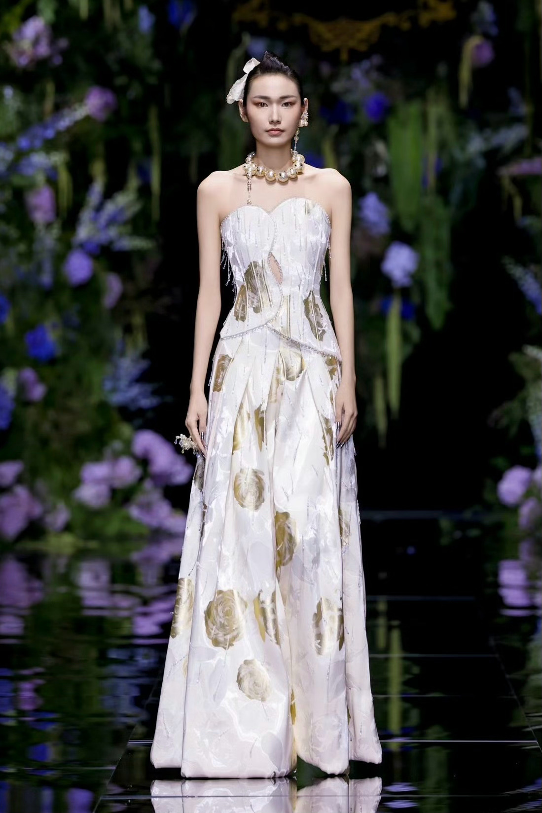 白鹿|尖叫之夜红毯 姐今晚第二套造型图集也正式揭晓 ,身穿 GUO PEI 2026 春夏定制系列裙装 、佩戴 De Beers 高级珠宝亮相 ,缎面裙身点缀鎏金花纹 ,冰室中的优雅大小姐来啦 !🤍尖叫之夜出图