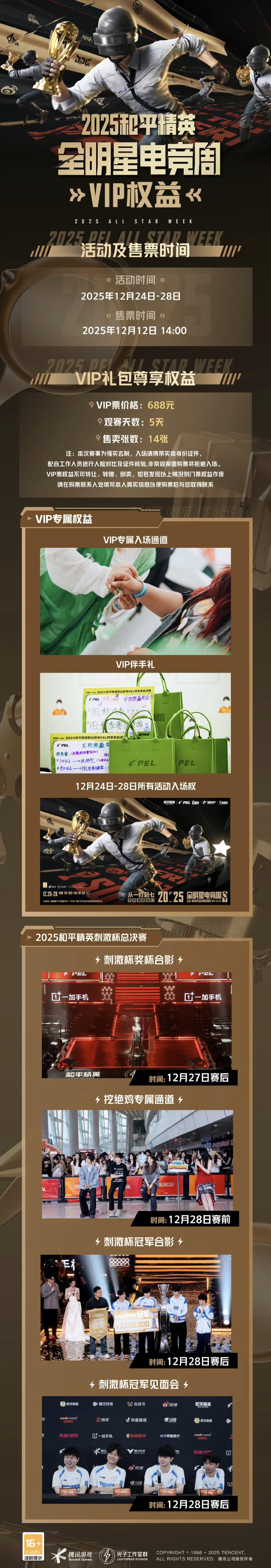 12月24日-12月28日,2025和平精英超级电竞周火热来袭,从一打到七,把把都刺激!小P带来售票信息~