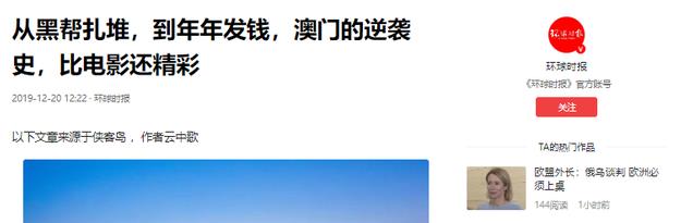 信源:从黑帮扎堆,到年年发钱,澳门的逆袭史,比电影还精彩2019-12-20 环球时报