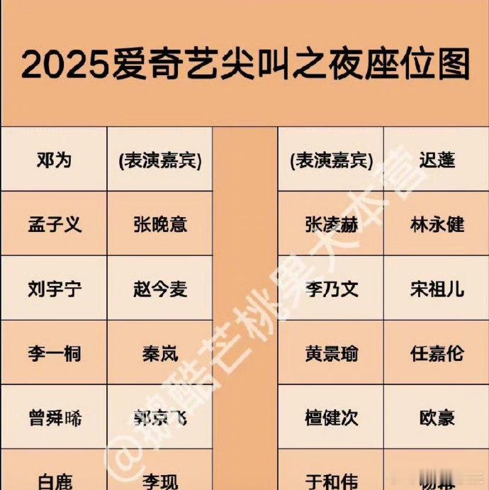 尖叫之夜座位图,娱乐圈果然是最现实的名利场,座位基本对应咖位。左边桌位位置最好的:白鹿、李现、曾舜晞、郭京飞。右边桌位位置最好的:杨幂、于和伟、欧豪、檀健次。符合你的体感吗?尖叫之夜座位 杨幂白鹿 内场双C