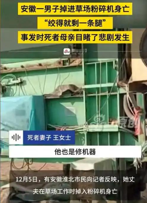 维修未断电致惨剧!37岁男子意外掉粉碎机,家属目睹全程痛彻心扉 安徽淮北那台1800转/分的粉碎机,吞掉的不只是37岁的王百忍,更是一个家庭的全部希望。事故过去半个月,他的妻子夜夜被噩梦缠醒,66岁的老母亲只要听见机械声就浑身筛糠。这位老人亲眼看着儿子被高速刀片吞噬,那血肉模糊的画面,成了她后半辈子都绕不开的炼狱。 出事前一天,王百忍通宵干活到凌晨五点,刚合眼三小时,就被草场老板一个电话催回了工地。作为家里唯一的顶梁柱,他不敢歇——上有老要养,下有四个月大的女儿要喂。粉碎机进料口堵了,他主动上前清理,没断总电、兜里揣着遥控器的操作,看着是疏忽,实则是长期疲劳透支的必然。当遥控器被意外触碰,机器瞬间启动的那一刻,他甚至没来得及发出一声呼救,就被卷进了刀片。消防队后来拆了半天才找到他的一条腿,这就是“赶进度”给一个家庭留下的最后念想。 这根本不是意外,是早有预谋的悲剧,当老板把“赶工”摆在“保命”前面,当安全规程成了墙上的摆设,事故只是早晚的事。工人们说,农忙季草场天天催着加班,安全培训就是念一遍稿子;涉事的粉碎机连红外急停、双按钮启动这些基础防护都没有,遥控器更是谁用谁拿,完全不合规。王百忍累得眼睛发红,脑子都转不动了,哪还有精力去想“断电”这种“麻烦事”?出事后老板更显冷漠,起初只肯赔20万,被拒后才涨到50万,还要求分期,仿佛一条人命的价值,还抵不上一台机器的维修费。王女士说“要的是公道”,可公道在“效益优先”的算计里,显得格外廉价。 最让人寒心的,是这种“拿命换钱”的逻辑在不少小微企业里根深蒂固。老板们总说“快点修完就行”,把“维修先断电”的保命底线说成“多余步骤”,有些工人也抱着“不会轮到我”的侥幸,默许了疲劳作业和违规操作。可他们忘了,安全投入从不是“额外开支”,而是给工人的保命钱;拒绝不合理加班也不是“偷懒”,而是对家人最基本的责任。那些被省略的安全步骤,那些被无视的疲劳信号,从来都不是“小事”,而是悬在头顶的利剑。 四个月大的女儿还没学会叫爸爸,白发苍苍的父母要送黑发人,妻子抱着孩子在空荡的家里流泪,这些撕心裂肺的痛苦,不是一句“意外”就能抹平的。更该反思的是,为什么农村小微企业的安全监管总是“缺位”?为什么“带电维修致死”的事故屡禁不止?那些负责监管的部门,那些喊着“安全生产”的口号的人,是不是也该看看这个破碎的家,问问自己尽到责任了吗? 王百忍的悲剧不是个例,每一条安全规程的背后,都浸着血的教训。对企业来说,守不住安全底线的生意,赚的都是“亡命钱”,对监管部门来说,缺位的监管就是帮凶,对劳动者来说,别拿侥幸赌明天,你的命,是家人的天。钱没了能再挣,命没了,就真的什么都没了,这个道理,真该刻在每个人的心里。 情感 意外
