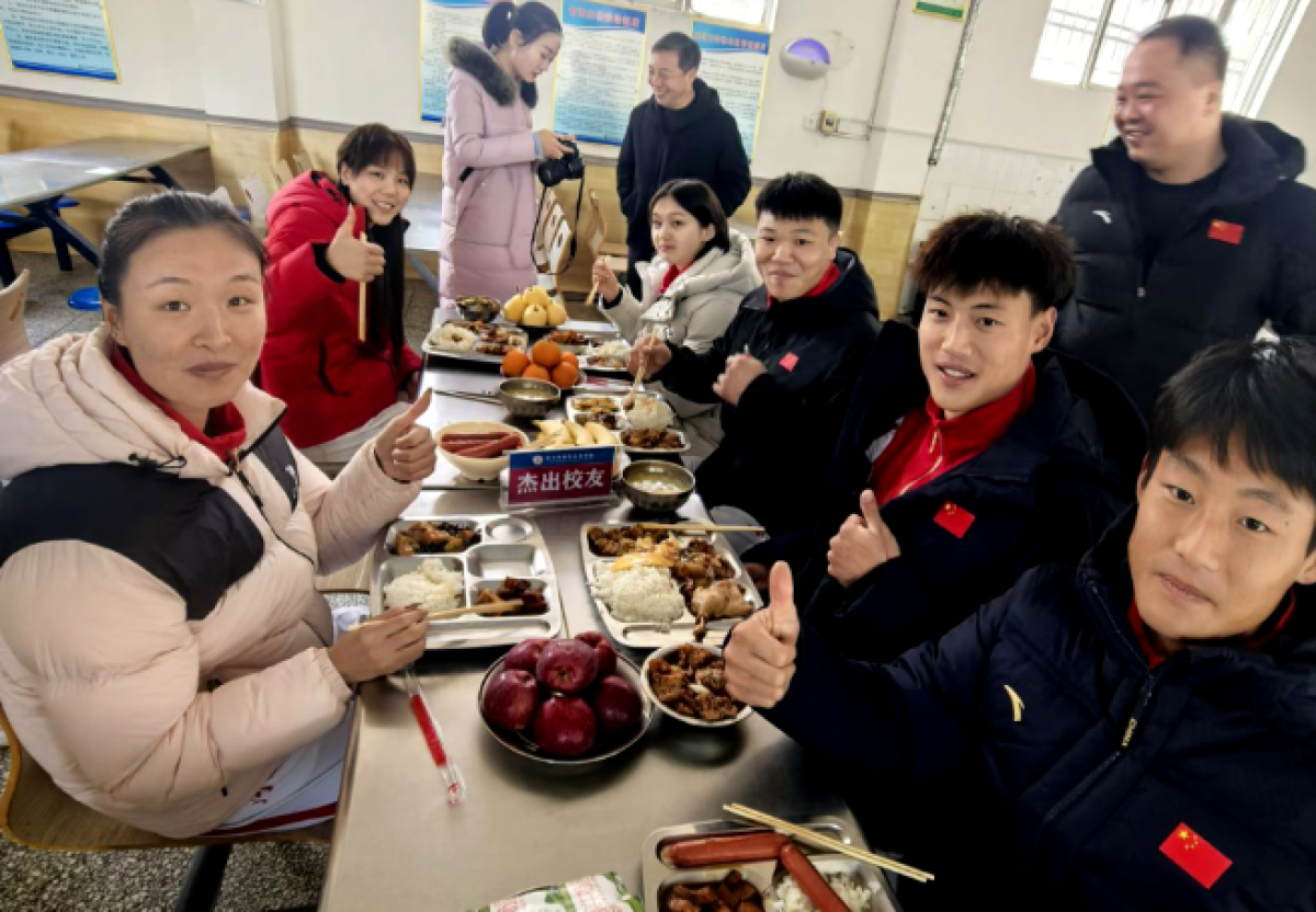 中午,运动员与教练员们共进午餐,重温校园滋味,畅叙师生情谊。