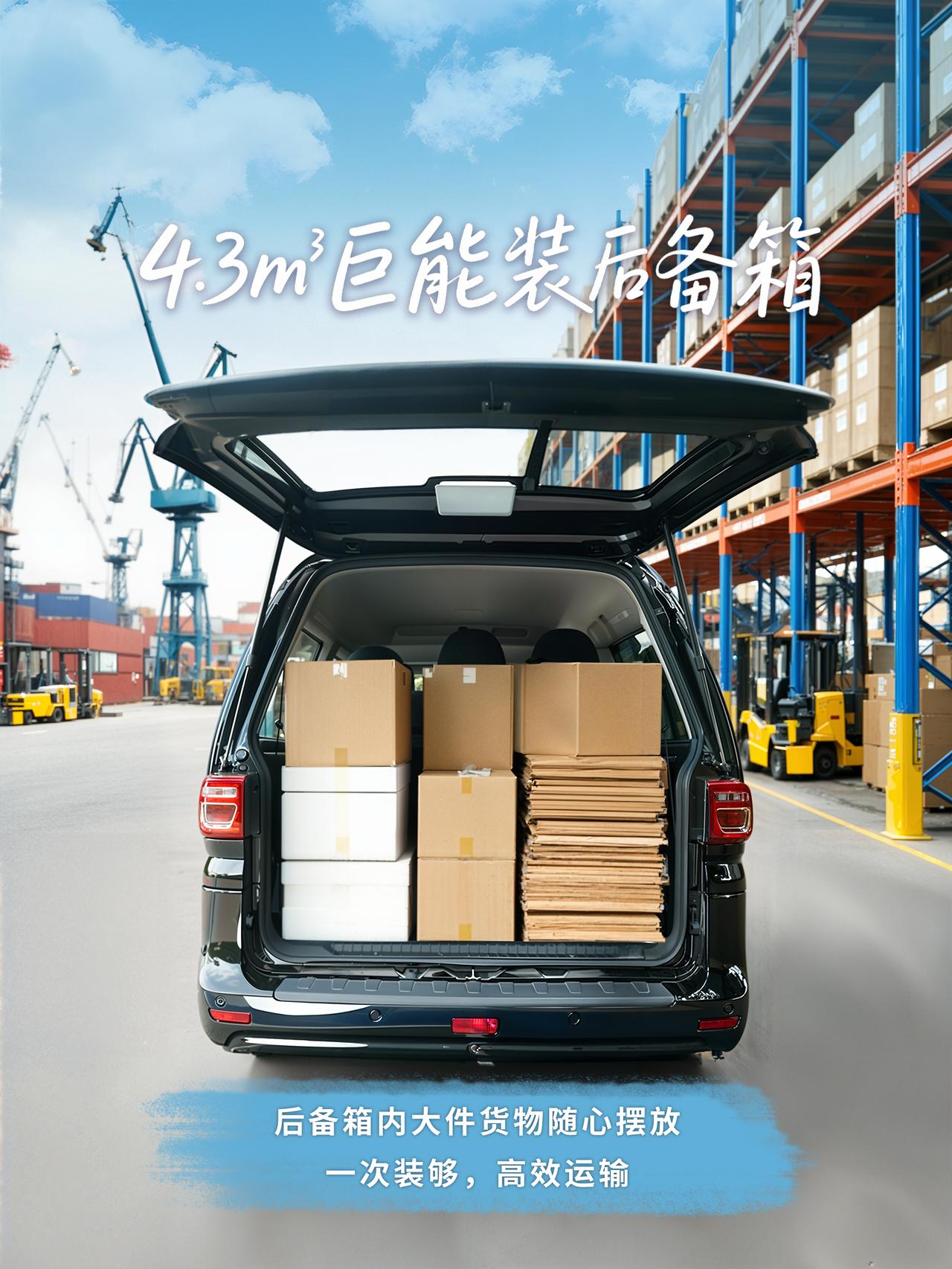 东风风行菱智新能源110km增程版 4.3m³后备箱超能装,批量货物轻松容纳 多