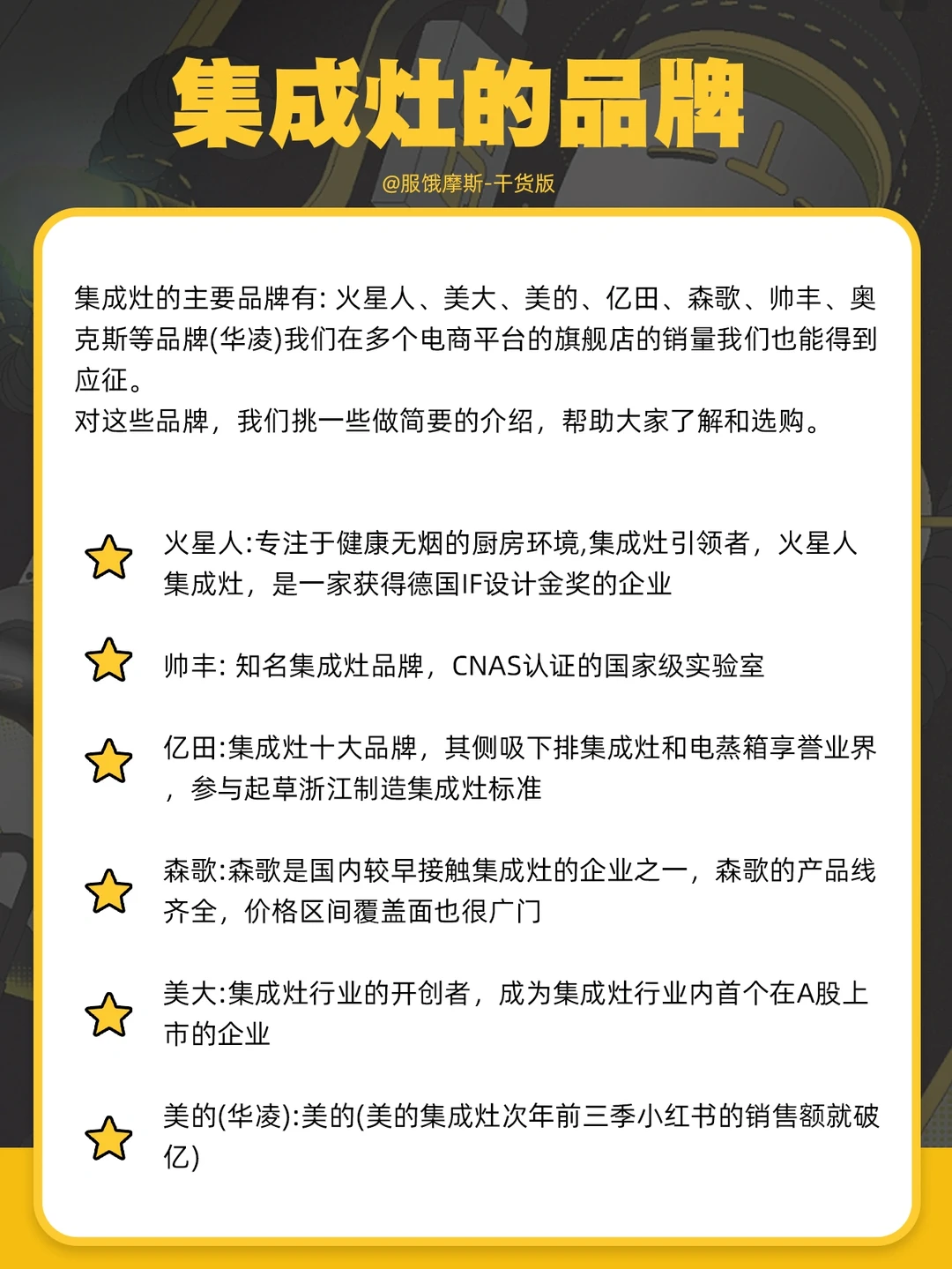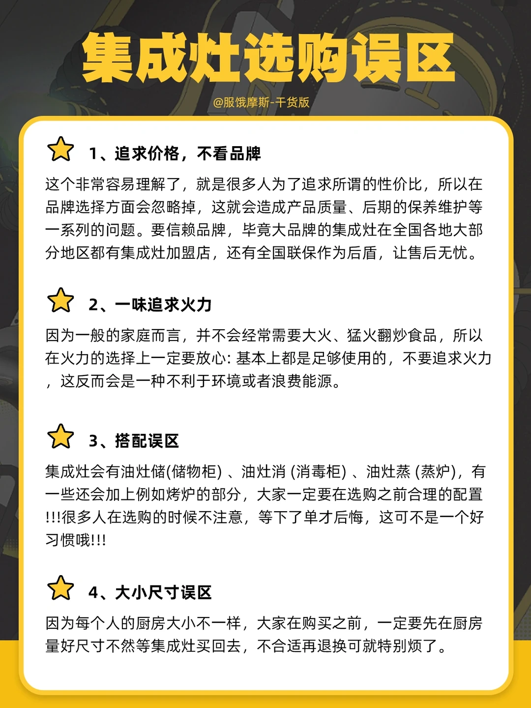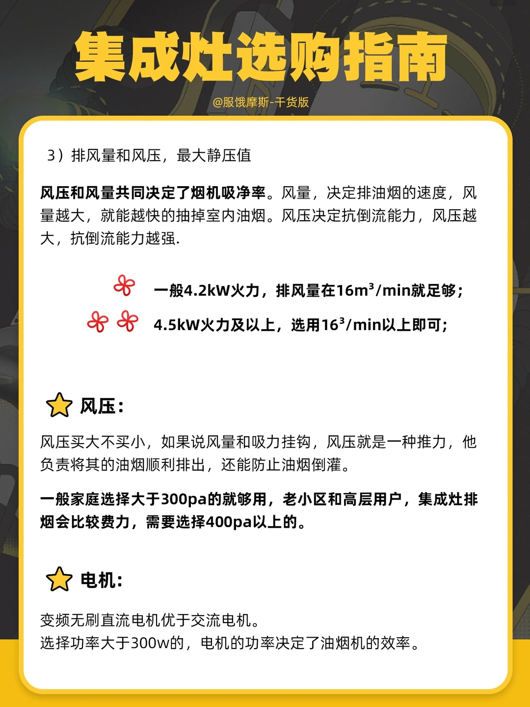 现在厨房设施越来越多样化,集成灶也已经走入很多人的家里。 🕹现在的集成灶内容丰富,功能贼多。品牌和样式也特别多。最近很多粉丝问我应该怎样挑选集成灶。 ❗️虽说集成灶融合了很多功能,但最主要还是吸油烟能力和灶具,以及智能化、便利生活上,其他的功能根据需求选择即可。 ♥️因此,我们主要考虑以下几点: ⭐️1.核心参数能否满足日常需要 ; ⭐️ 2.智能化方面按需选择; ⭐️3.静音性可接受程度; ⭐️4.机身材质和售后保障满意度; -