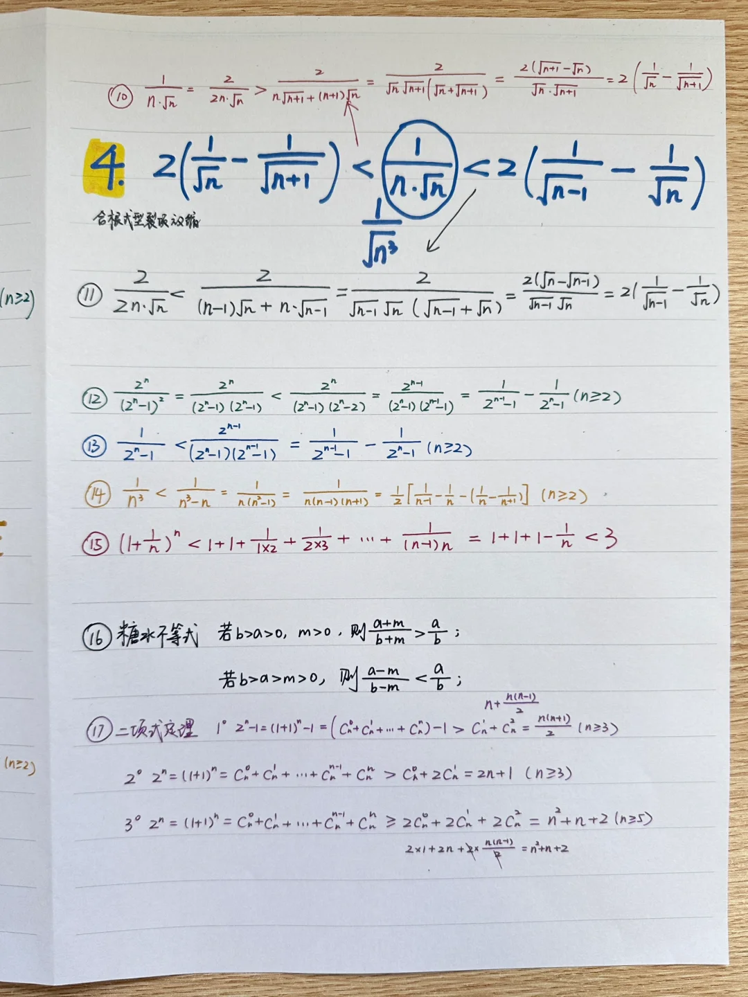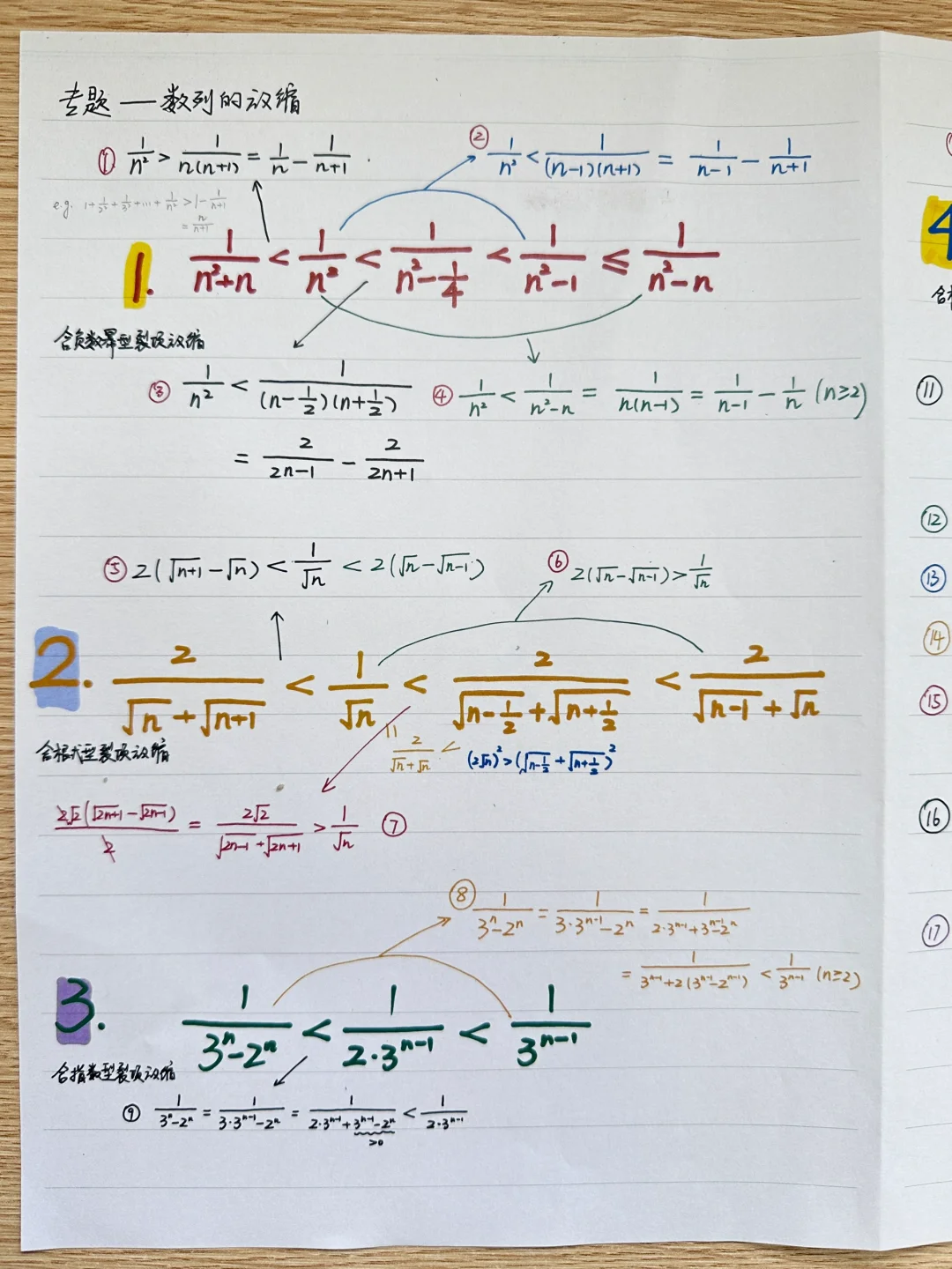 把数列放缩常见形式总结了一下,借鉴了一位博主的笔记,又增加了一些类型,给学生彩印出来了,这样有色彩冲击,看起来舒服一点~ 缺少一些题目的总结和运用,后面补上去。