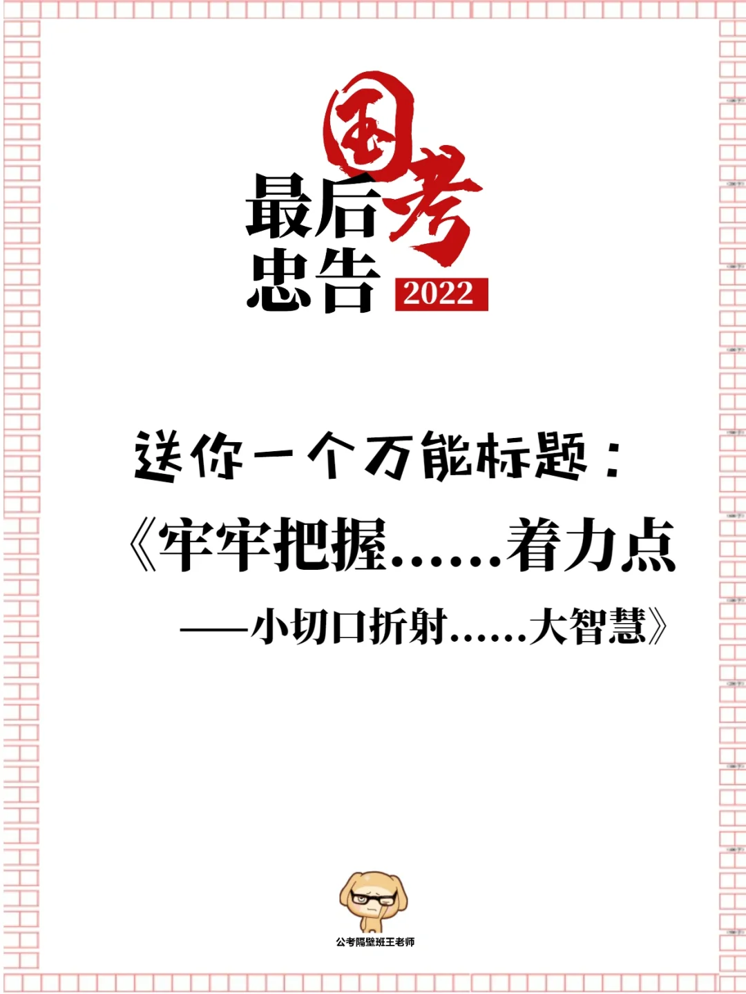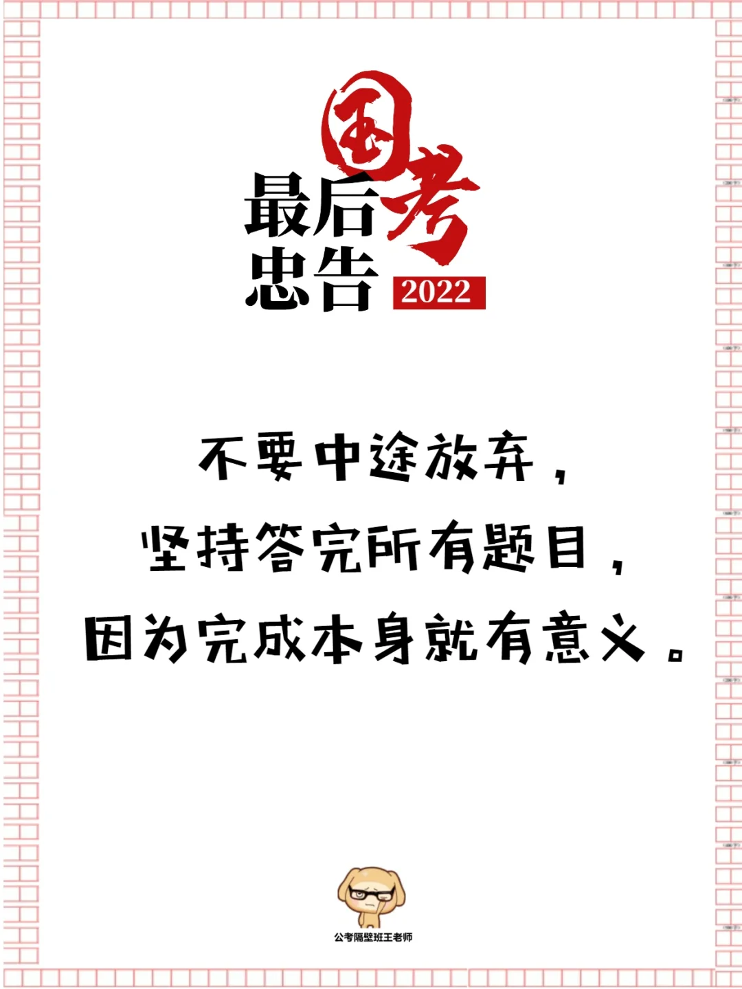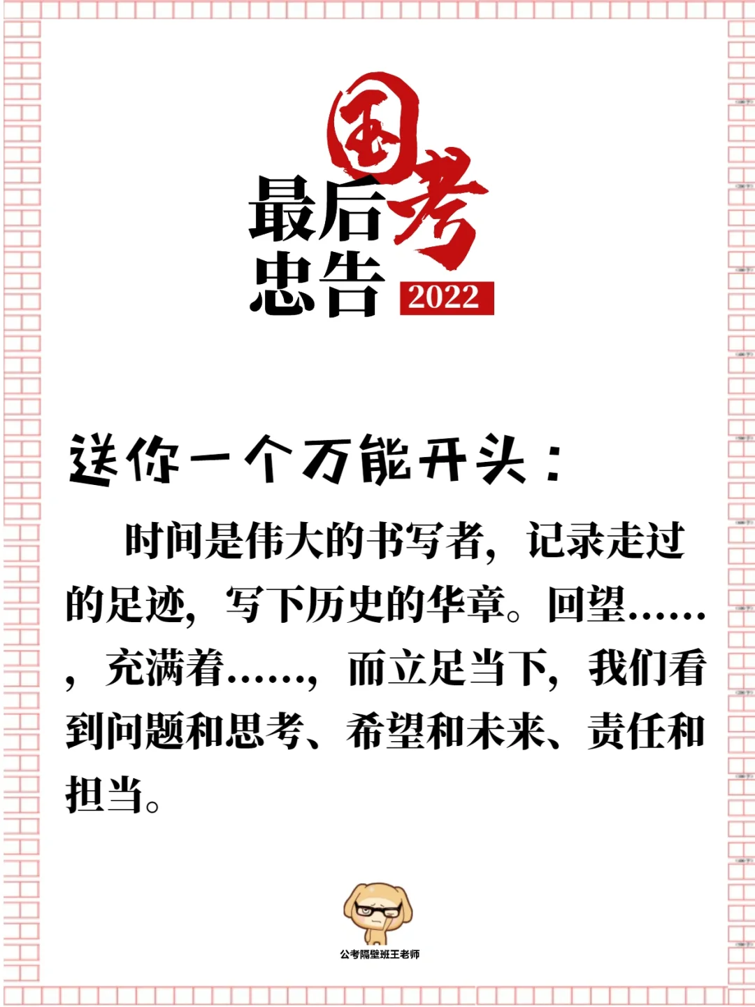 明天,你们就要上考场了,当然也是战场。 我仿佛看到十年前的自己,拼尽全力又彷徨迷茫。 不知不觉,在陪你们抄申论已经三个月。 临上场,为兄再嘱咐最后9句话。 等你们的好消息!