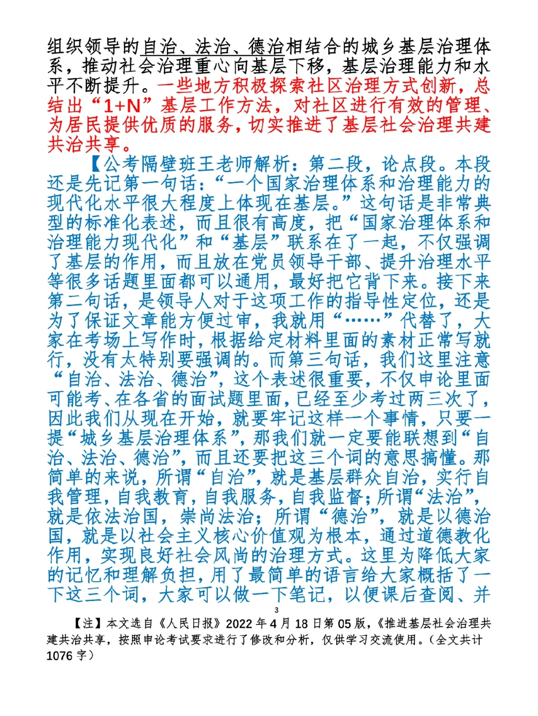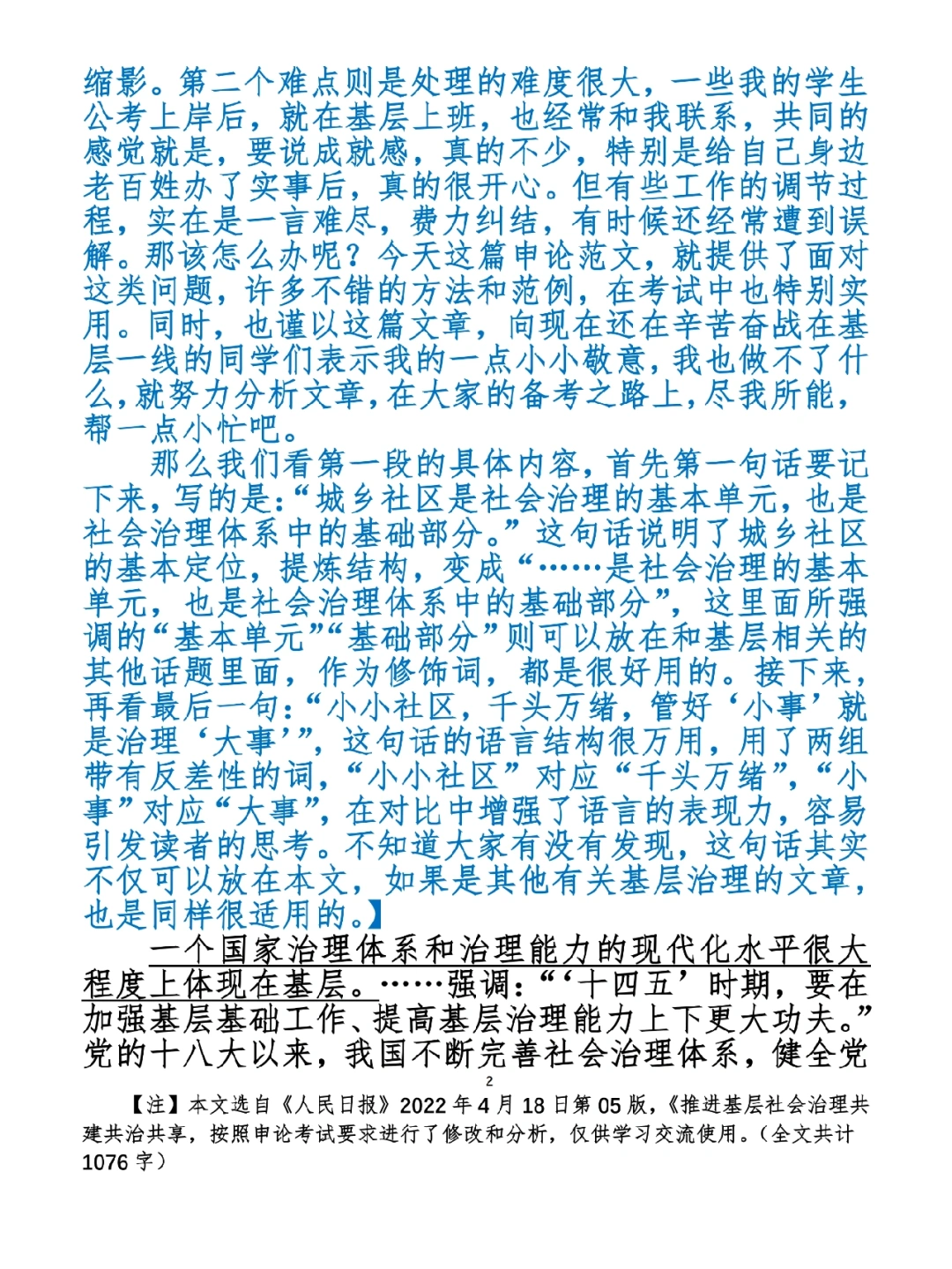 人民日报申论讲解:基层治理共建共治共享