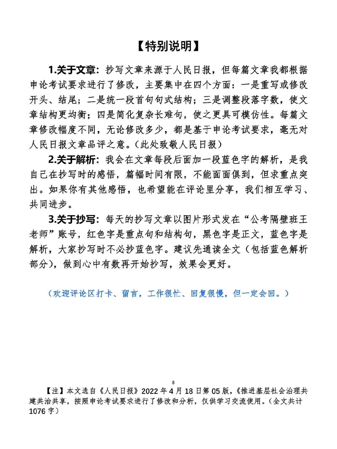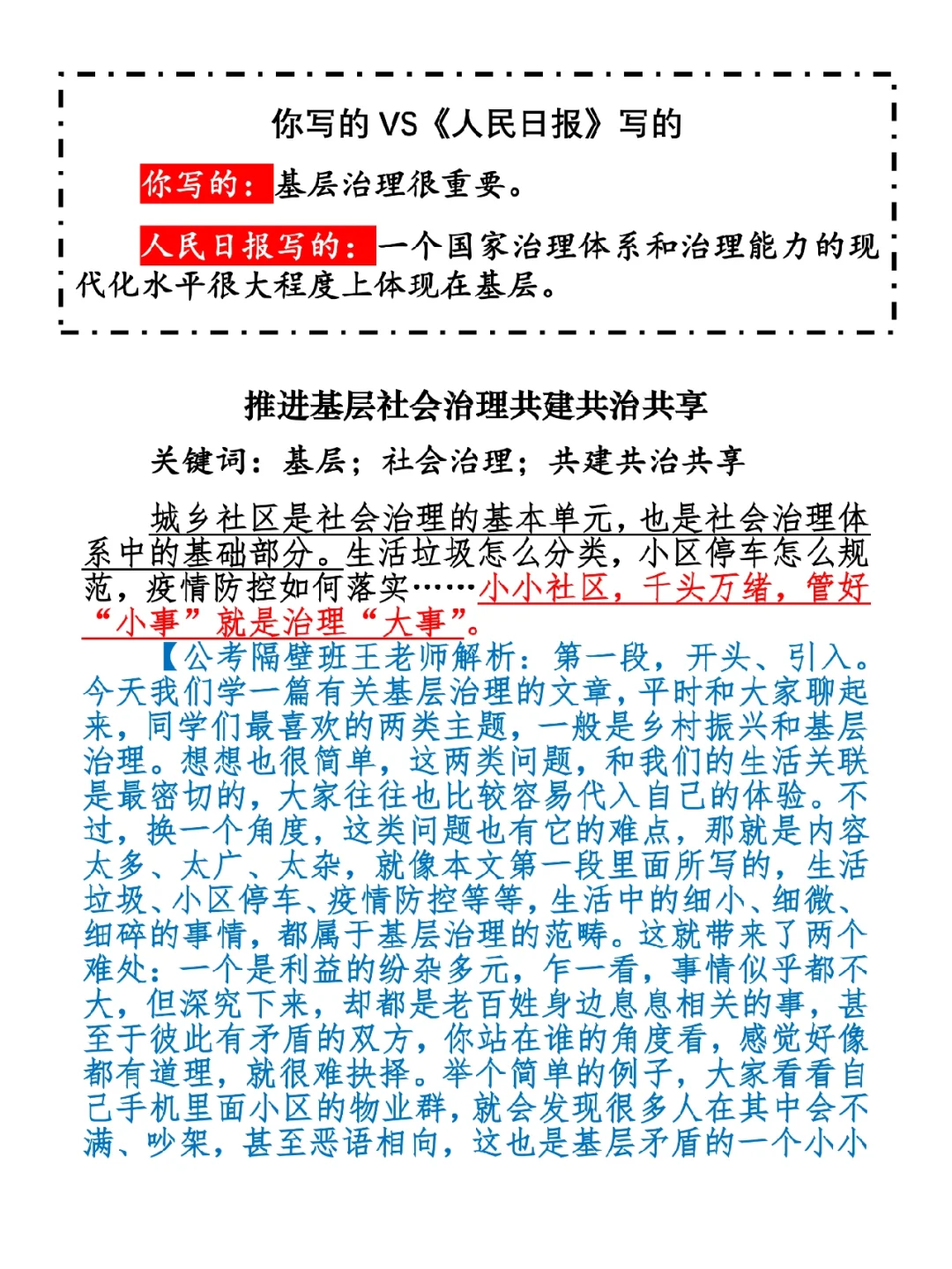 谨以这篇文章,向现在还在辛苦奋战在基层一线的同学们表示我的一点小小敬意,我也做不了什么,就努力分析文章,在大家的备考之路上,尽我所能,帮一点小忙吧。 ⭐️ ⭐️ ⭐️ ⭐️ ⭐️ ⭐️ 这里是公考隔壁班王老师独创的“每天半小时・申论80分”抄写团,欢迎加入我们!