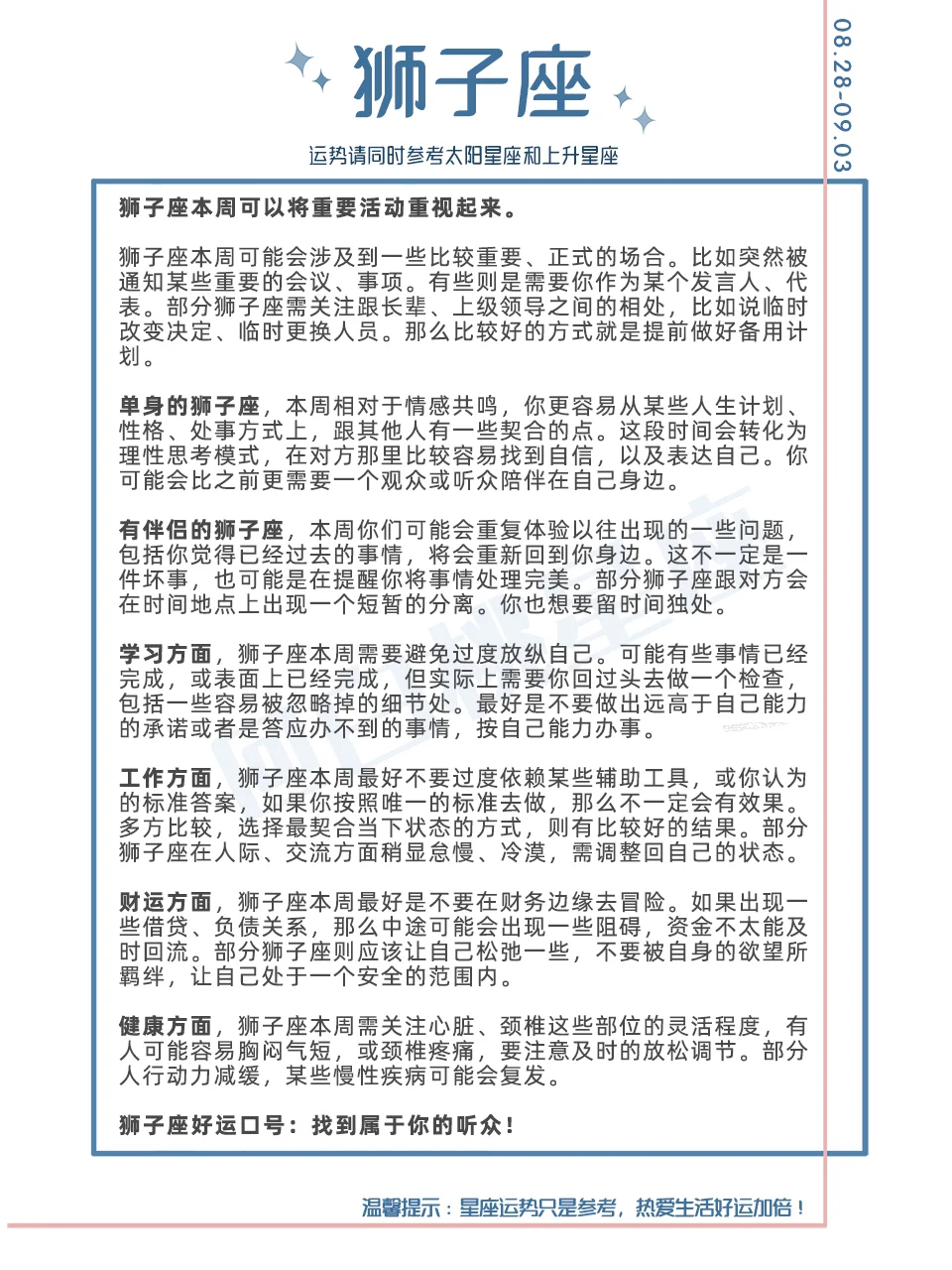 【白桃星座周运】2023.8.28-9.03