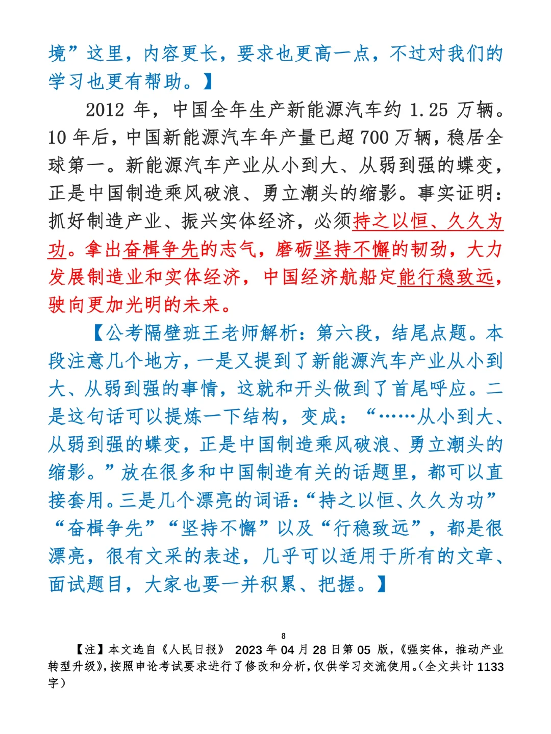 如何抄写:每日抄写文章发在“公考隔壁班王老师”账号,红色字是重点句和结构句,黑色字是正文,蓝色字是解析,大家抄写时不必抄蓝色字。建议先通读全文,做到心中有数再开始抄写,效果会更好。 关于文章:抄写文章来源于人民日报,但每篇文章我都根据申论考试要求进行了修改:一是重写或修改开头、结尾;二是统一段首句句式结构;三是调整段落字数,使文章结构更均衡;四是简化复杂长难句,使之更具可模仿性。每篇文章无论修改多少,都是基于申论考试要求,毫无对人民日报文章品评之意。(此处致敬人民日报)