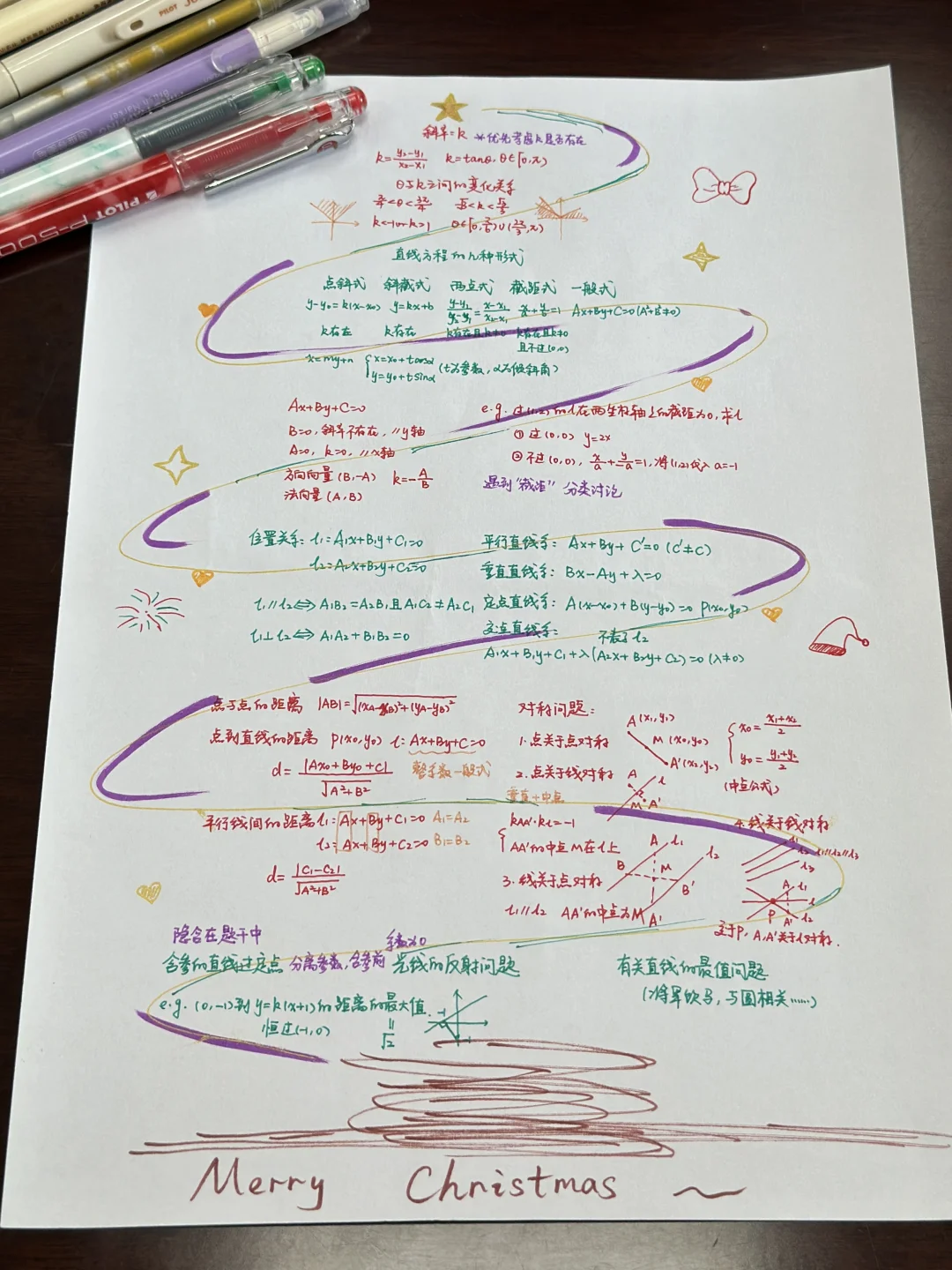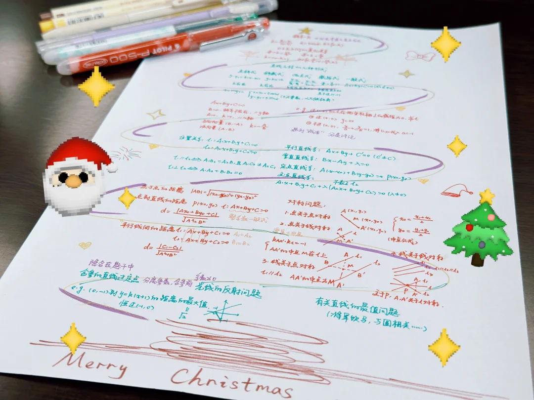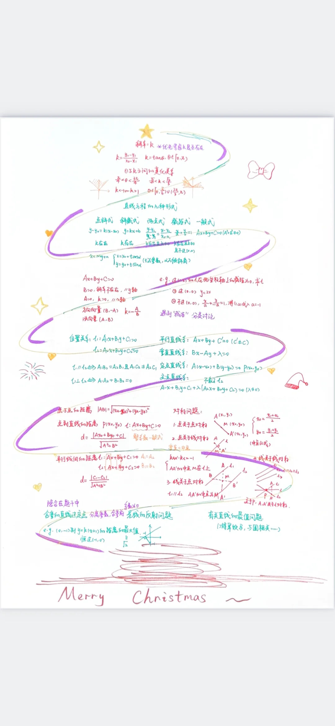 数学圣诞树!圣诞氛围要到位,今天平安夜,明天正好复习到直线方程这里,就把复习框架画成了一棵圣诞树,准备彩印出来送给学生,算是一个节日小惊喜吧~ 手绘圣诞树☑️数学是浪漫的,嘻嘻💕圣诞快乐~
