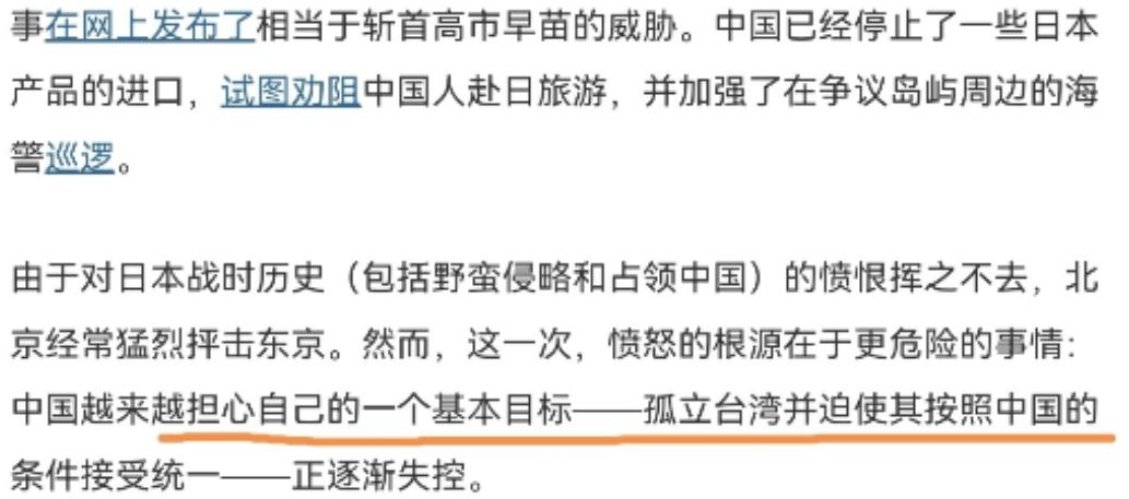 美媒声称,中国的策略“失败了”!12月3日,纽约时报刊文声称,高市早苗“戳破”了中国的台湾战略幻象。美媒表示,高市早苗只是将长期存在的认识说了出来——任何涉及台湾的危机将威胁日本的国家安全。她的言论是迄今最明确的公开信号,表明东京可能协助台湾抵御潜在的中国“侵略”。   美媒好像特别爱放大这种言论,说这是东京可能协助台湾抵御中国"侵略"的信号。可他们怎么不说日本和平宪法明明白白写着不能行使集体自卫权? 这位常年蹦跶的右翼人物,之前就因为参拜靖国神社、洗白侵略历史被骂翻。现在扯上台海,说白了就是想借这个热点,给自己攒政治资本。嘴上喊着 “要帮台湾”,真要让日本自卫队扛枪上战场,她第一个得躲起来。 日本真敢为台湾豁出去?别逗了。和平宪法就像套在日本头上的紧箍咒,明明白白写着 “放弃战争权”,连集体自卫权都受着严格限制。 去年日本新改的安保战略,把中国说成 “挑战”,可提台海时也只敢说 “关注稳定”,半个字没提 “协防”。 东京心里门清,真插手台海,第一个倒霉的是自己。中国的东风导弹不是摆设,日本列岛离台海近在咫尺,真打起来,日本本土能安稳?那些喊着 “强硬” 的政客,根本不敢赌上全日本的安全。 经济上更没法赌。中国连续 15 年是日本最大的生意伙伴,2024 年上半年,两国做生意就花了 13.2 万亿日元。丰田汽车在华卖的车,占了它全球销量的四分之一;大阪的电子厂、神户的港口,全靠中国市场活着。 要是真跟中国闹僵,这些企业先得倒闭,日本老百姓的饭碗都保不住。日本经团联早就放话了:“台海乱不得,一乱我们全完了”,这才是日本商界的真心话。 再看军事,日本就是个 “半吊子”。2024 年防卫费涨破天,也才 7 万亿日元,可核心装备全靠美国。所谓的 “国产导弹”,射程刚够着家门口,想碰台海都费劲。 驻日美军看着吓人,真到台海有事,人家只会躲在后面让日本当 “挡箭牌”,绝不会真刀真枪帮着打。去年美日军演,模拟台海情况时,连兵力部署都不敢提,只敢搞搞情报共享,这同盟靠得住才怪。 台当局抱着日本的大腿喊 “救命”,更是纯属自欺欺人。高市早苗跟台当局互动,无非是互送点小礼物、隔空喊几句口号,从来没给过真东西。 日本卖给台湾的设备,都得看中国脸色,绝不敢越雷池一步。反观两岸,2024 年上半年贸易额就有 1600 亿美元,台湾从大陆赚走 600 多亿顺差,这才是真金白银的依靠。 《纽约时报》故意放大这些噪音,说白了就是想搅乱台海。美国自己在台海煽风点火,又怕中国真动真格,就拉上日本演 “双簧”,想给中国添堵。 可他们忘了,中国的台湾战略,从来不是靠 “吓退” 谁来维持,而是扎根在两岸同胞的血脉里,扎根在历史和法律的铁证上。 高市早苗的狠话、美媒的炒作、台当局的幻想,就像一阵风,刮过就散。日本不会为台湾赌上国运,美国不会为台湾跟中国拼命,台当局的 “倚外谋独”,不过是自掘坟墓。 中国从来都把话说得很明白,和平统一是最大诚意,但捍卫国家主权绝不手软。所谓 “战略失败” 的论调,不过是美西方的自我安慰。两岸统一是早晚的事,这股潮流,不是几个政客、几家媒体就能挡得住的。