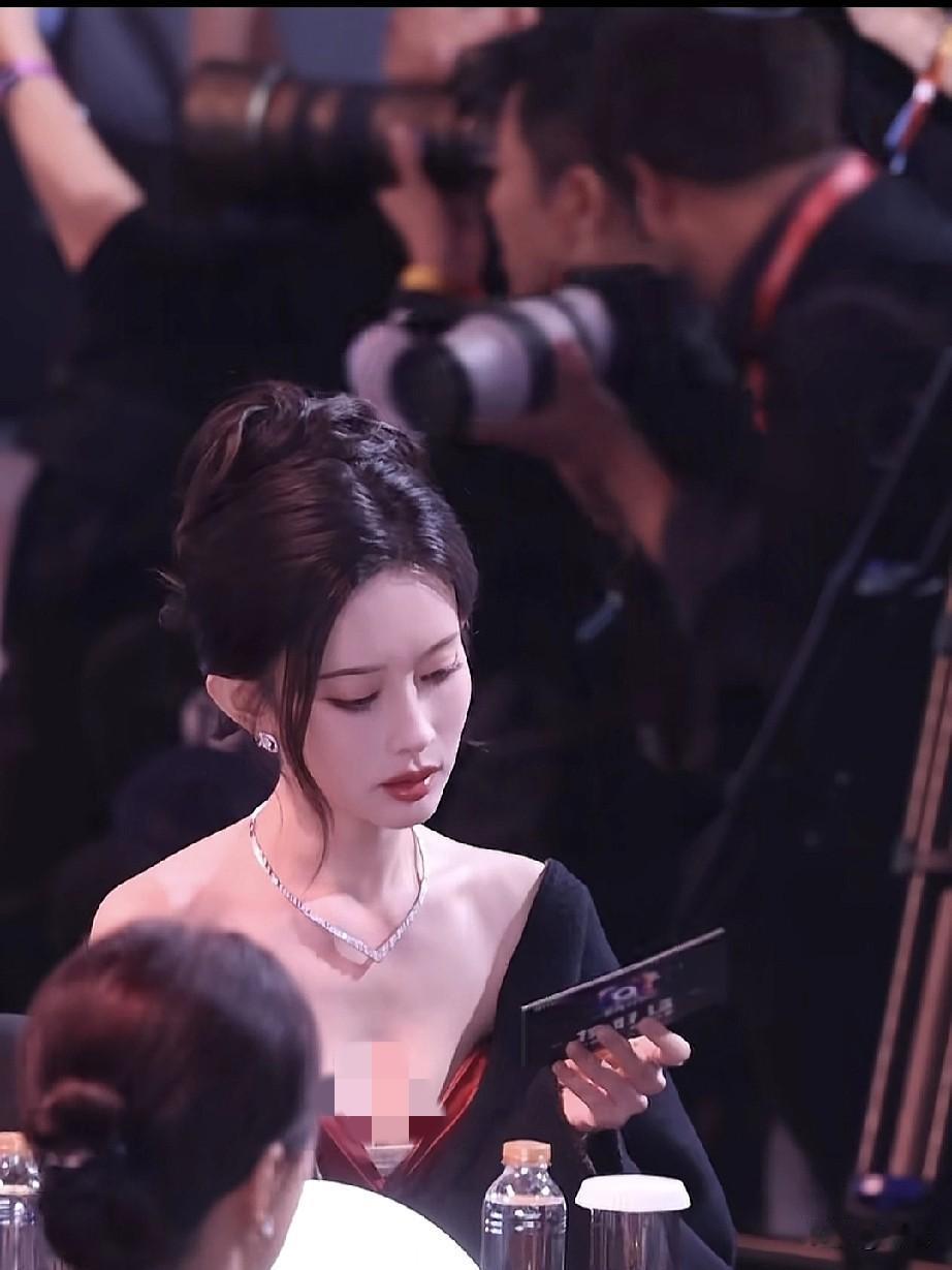 孟子义在活动现场的状态。一袭红黑撞色的晚礼服搭配精致的项链,真的又美又有梗,谁能