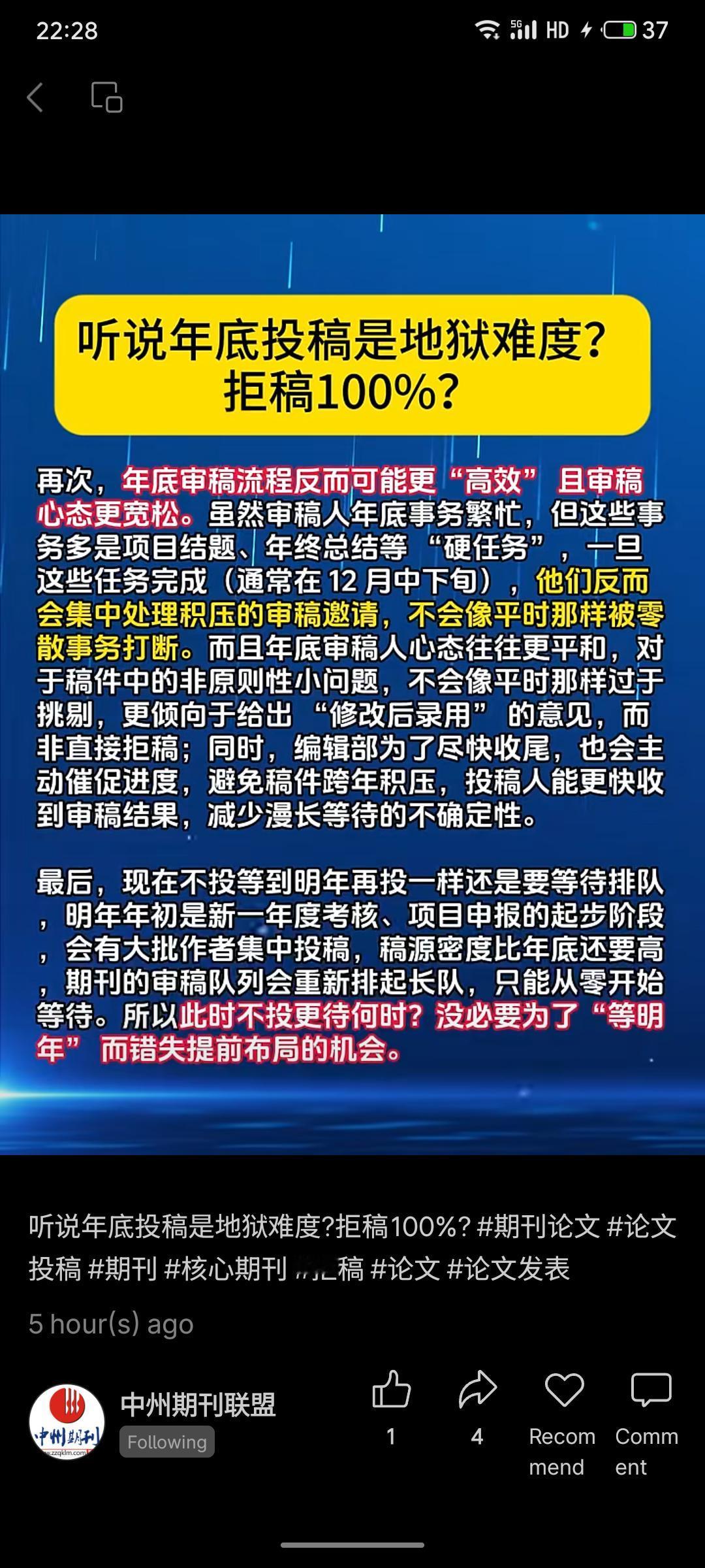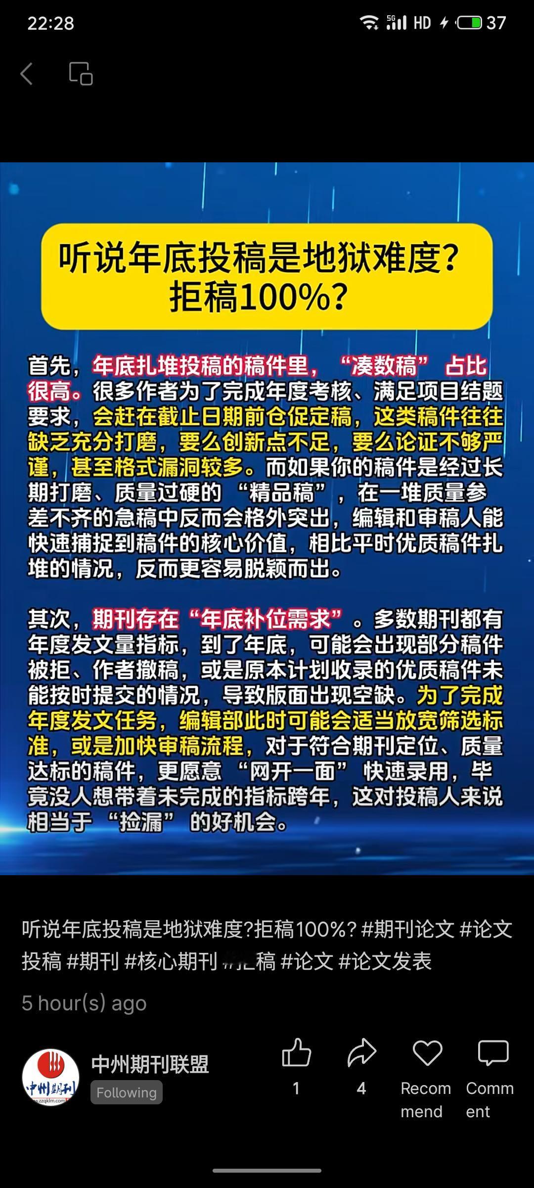 文章反驳“年底投稿是地狱难度”的说法,指出:1. 年底“凑数稿”多,优质稿件反而突出;2. 期刊为完成年度指标,可能有“补位需求”并加快流程;3. 审稿人在年底事务完成后可能集中处理稿件,心态更宽松;4. 拖延至明年初可能面临新一轮投稿高峰。因此,年底投稿或许反而是机会。