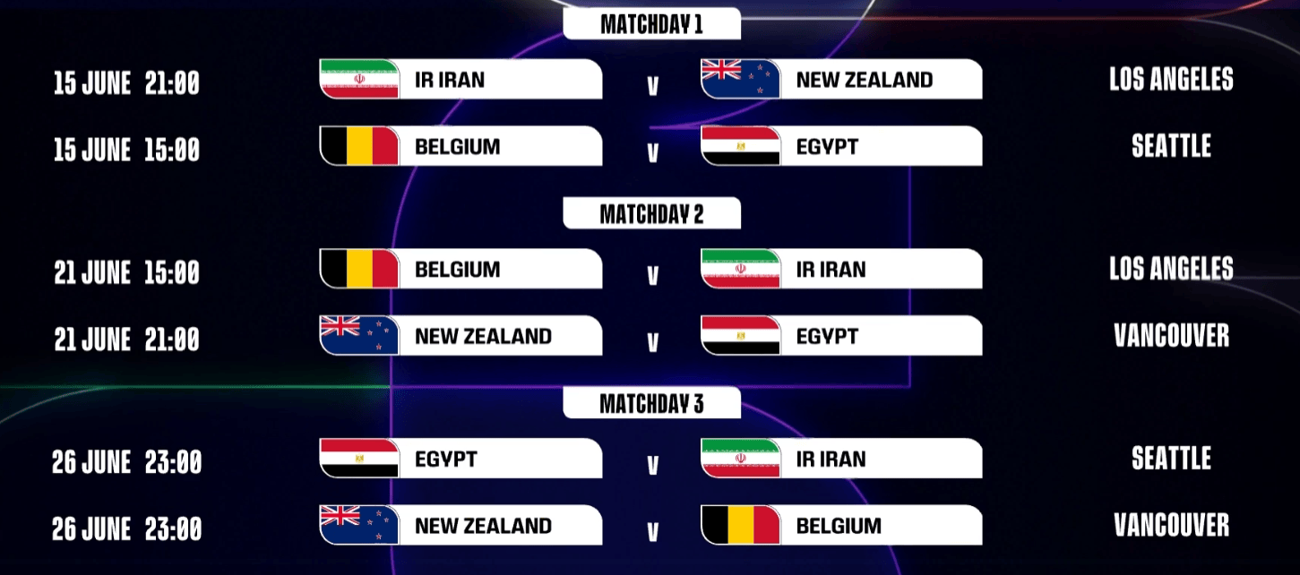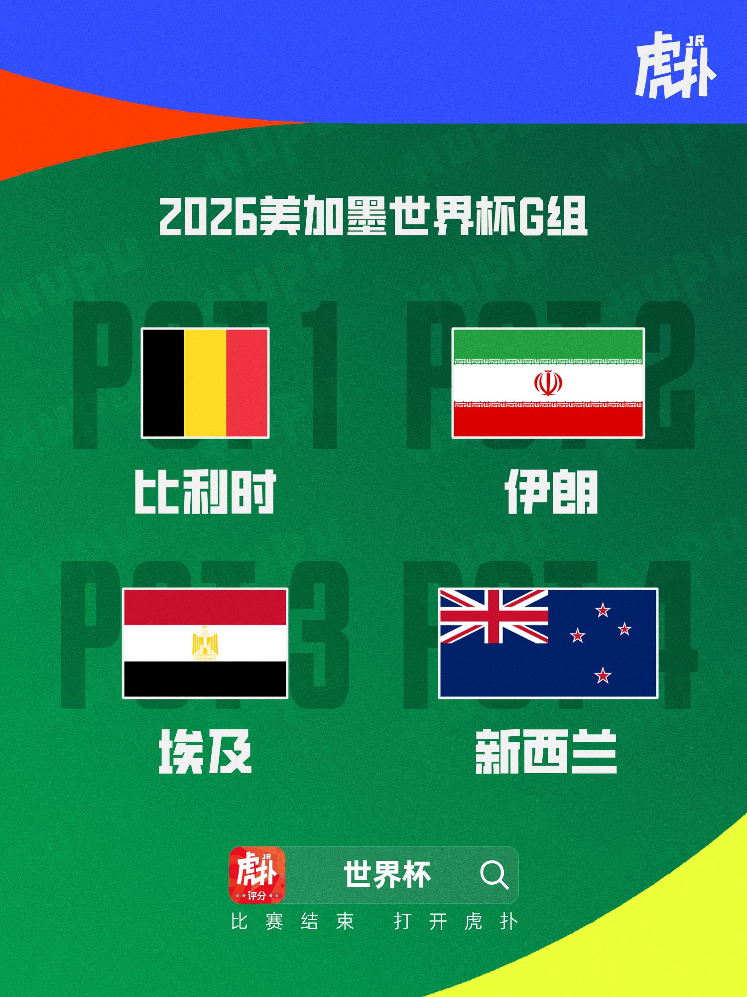 虎扑12月07日讯2026美加墨世界杯赛程全部公布,G组赛程如下(北京时间):