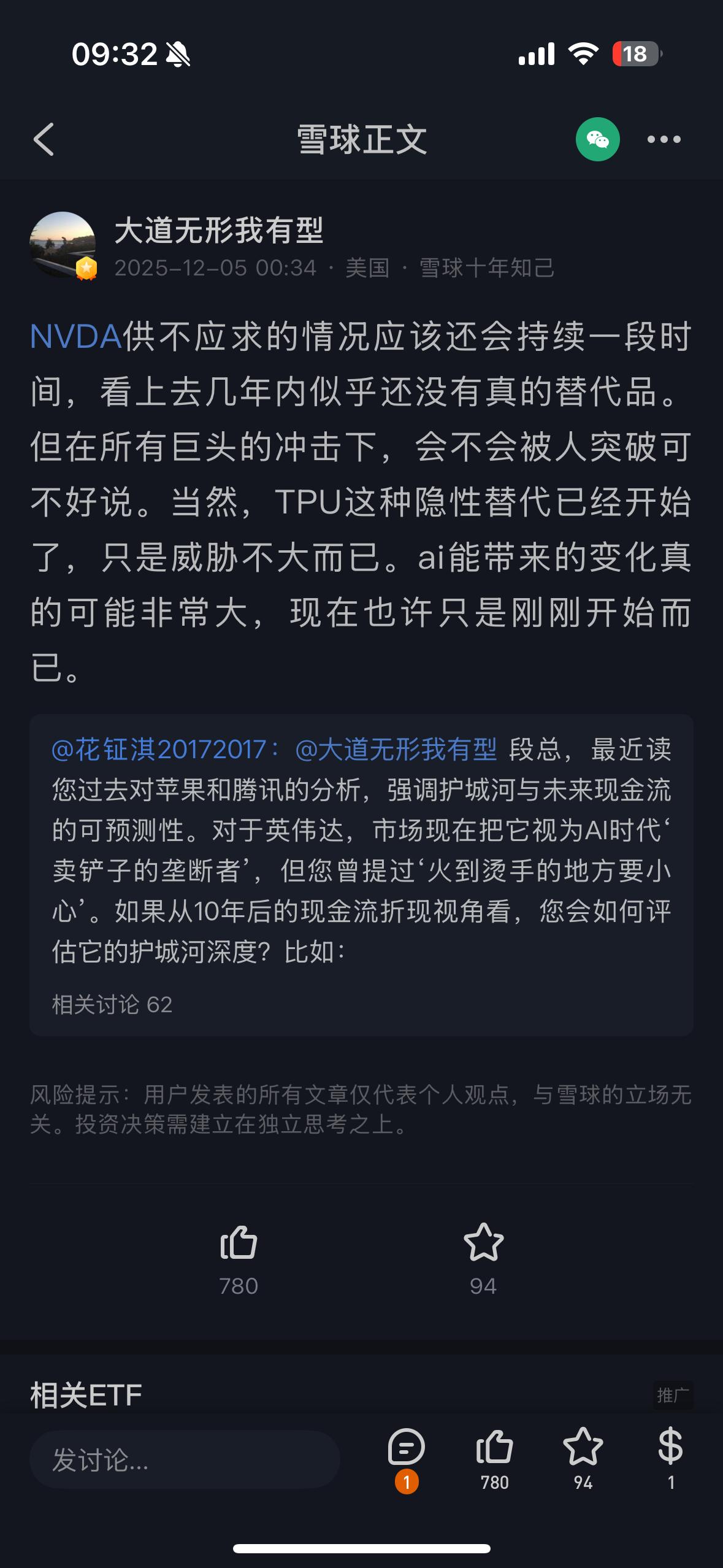 大道段永平点评谷歌的人工智能,说现在已经基本上都用谷歌的了。以前他都是谷歌和openai的对比着用。 大道其实一直在亲身经历和对比两个ai,并一直在思考ai未来的情况。大道的判断是只有几家ai能活下来,谷歌是其中之一的概率高。 现在谷歌3.8万亿,ai原来带给谷歌的一大担心是搜索被ai替代;而搜索是名门。如果ai处在领先位置,且融合搜索,可能不至于导致搜索用户的大面积流失,而是留在谷歌的ai➕搜索里。谷歌这个公司的tpu目前也很牛,单独给予tpu弄出来gemini3,meta考虑买。所以在原有搜索 youtube waymo googlemap android 再加上ai 和 tpu 感觉谷歌真实强大的厉害 3.8万亿大为位置,也跟进观察,如果掉,在增加。[大笑]