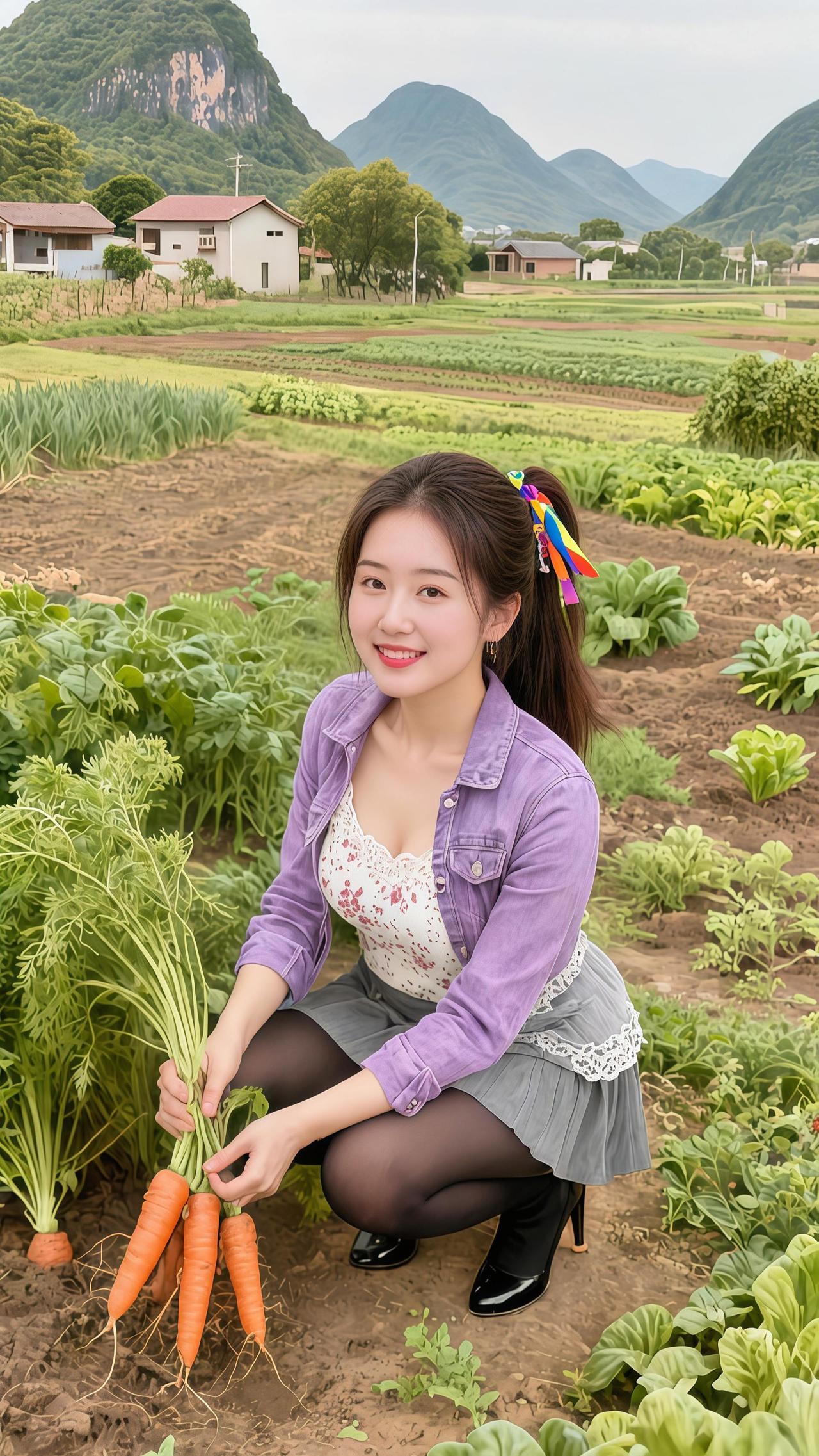 地里收胡萝卜我的农村生活 清纯美女 乡村田野