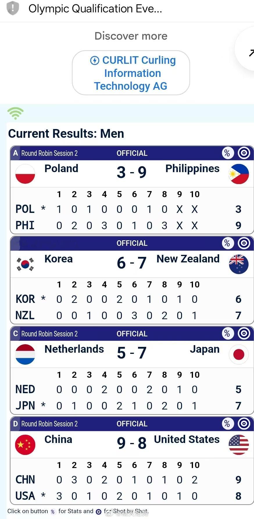 冰壶冬奥落选赛 2026年米兰冬奥会冰壶落选赛男子循环赛前两轮🇨🇳中国 8-6 🇳🇱荷兰,取得本届落选赛开门红🇨🇳中国 9-8 🇺🇸美国,取得本届落选赛循环赛2连胜,明天早上6点循环赛第三轮对今年亚冬会冠军🇵🇭菲律宾队!