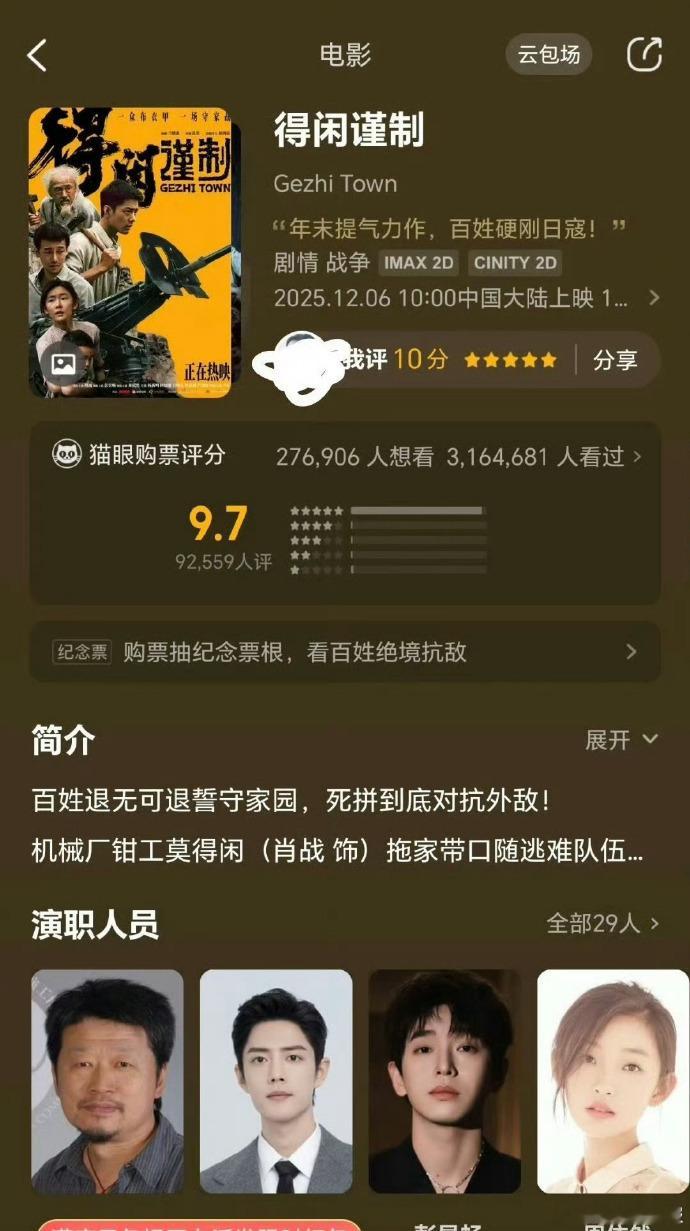 得闲谨制猫眼购票开分9.7肖战得闲谨制猫眼开分9.7高分不负期待,影片笑着流泪的