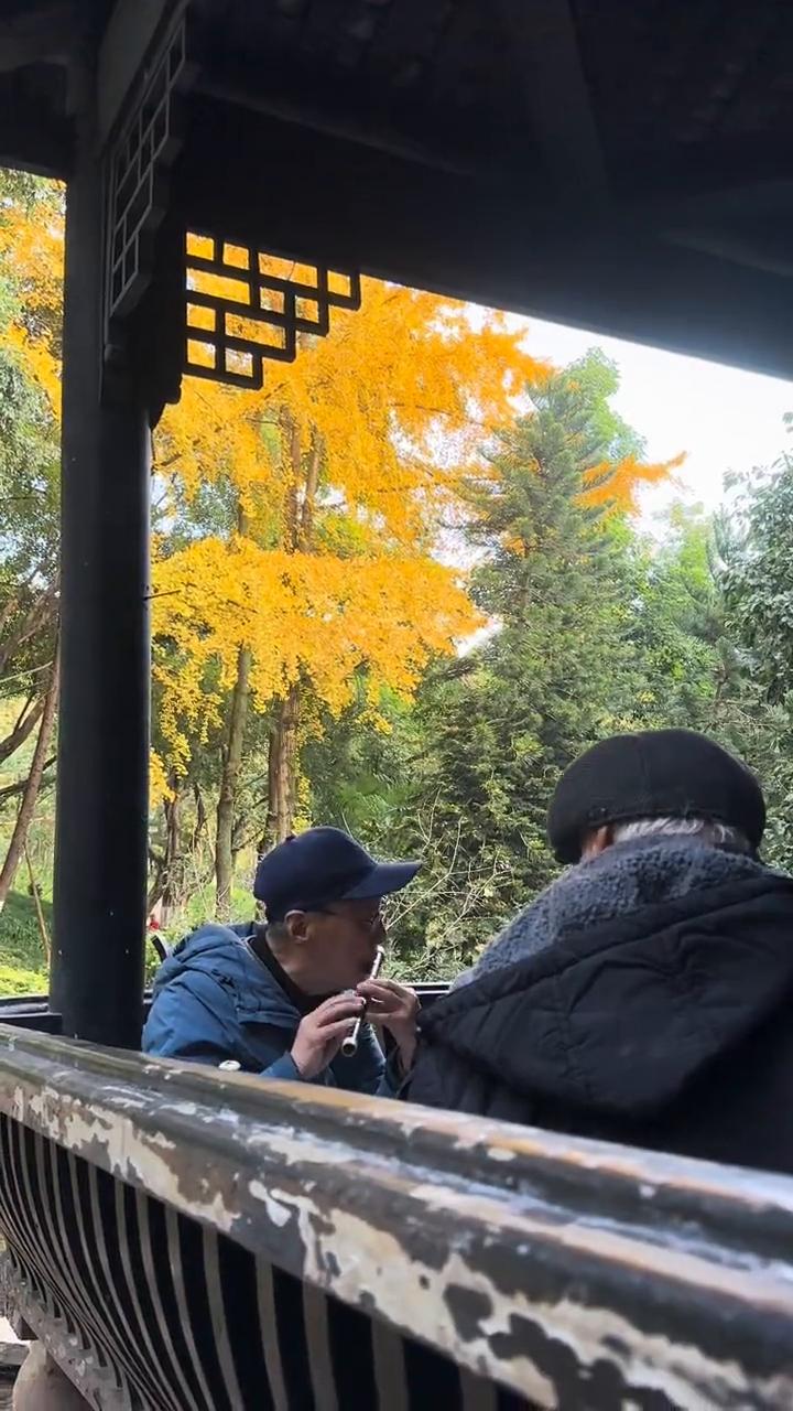 十二月七号中华美德公园银杏黄的,红枫叶红的,突然出太阳了,赶紧去看。轻轨穿过银杏树林,这个公园虽然小,但其实也蛮大的,因为它是个山地公园。从山下到山上,各种角度坐地铁到轻轨二号线平安站或者大渡口站。玩完这里还可以去大渡口公园,大渡口公园有很多黑天鹅、杨家坪地铁站的银杏,可能还有三到五天才最黄,轻轨二号线真的太美了。