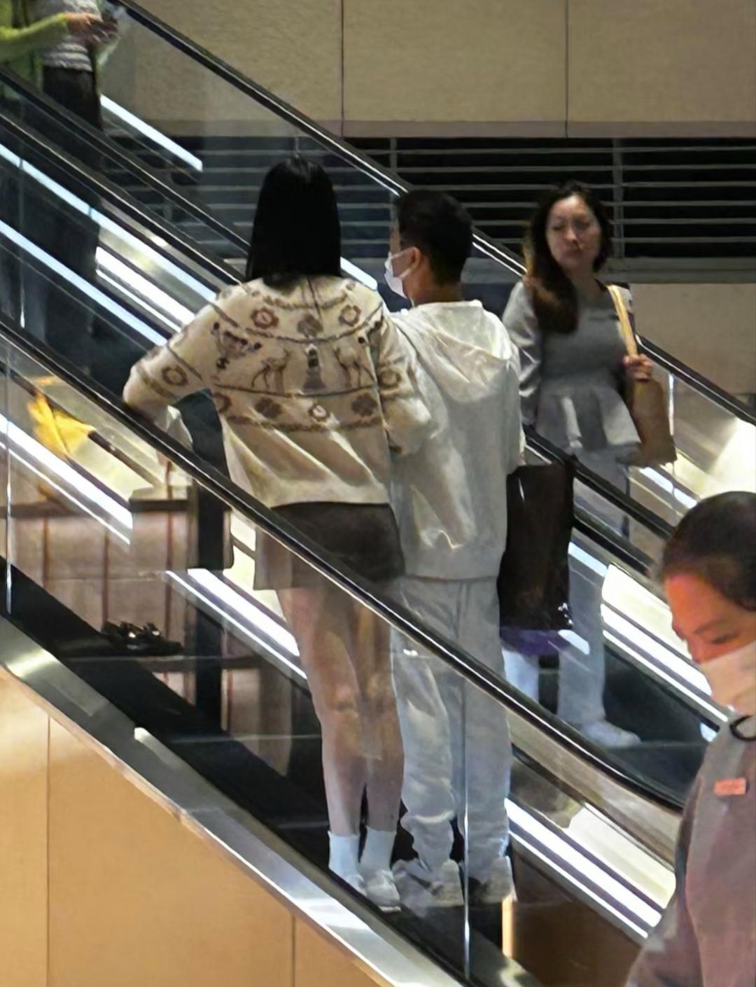 我信奚梦瑶说的她是嫁给爱情了,36岁的她和老公何猷君在香港逛商场,夫妻俩手挽着手