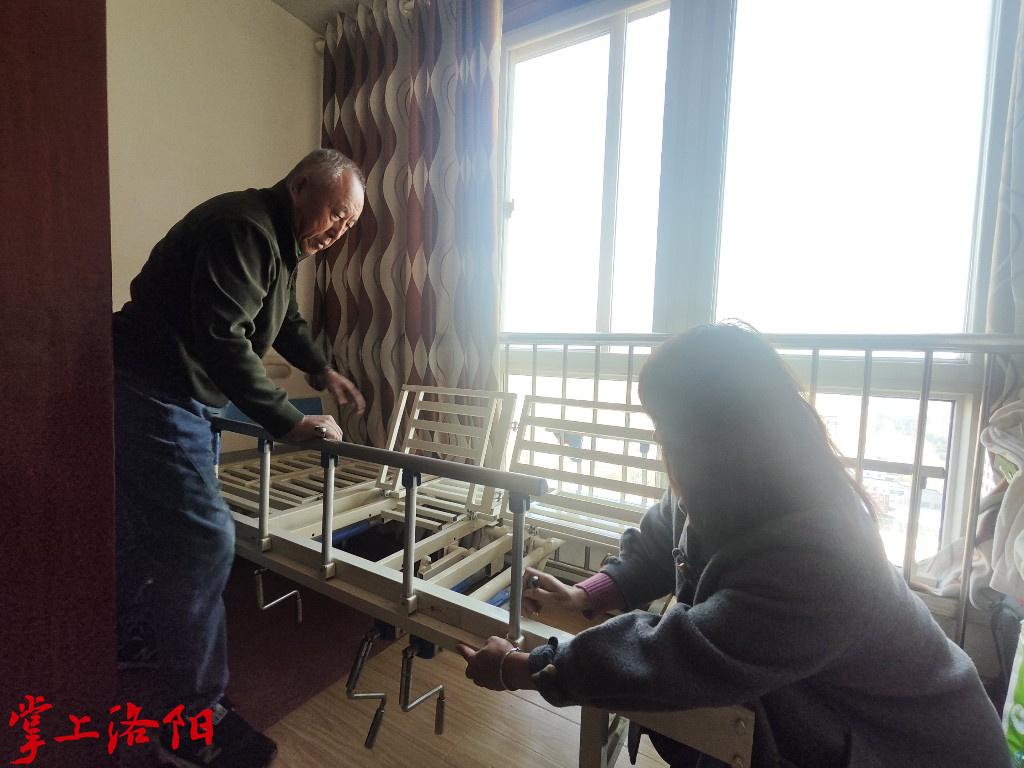 5日一大早,涧西区安徽路30号院,一场特殊的“搬家”正在温情上演。居民杨迎峰在天四社区工作人员的协助下,小心翼翼地将自家拆卸下来的家庭照护床部件搬出,运往仅一街之隔的云峰国际小区。这些部件在程大爷家中重新组装,成为老人起居的新依靠。