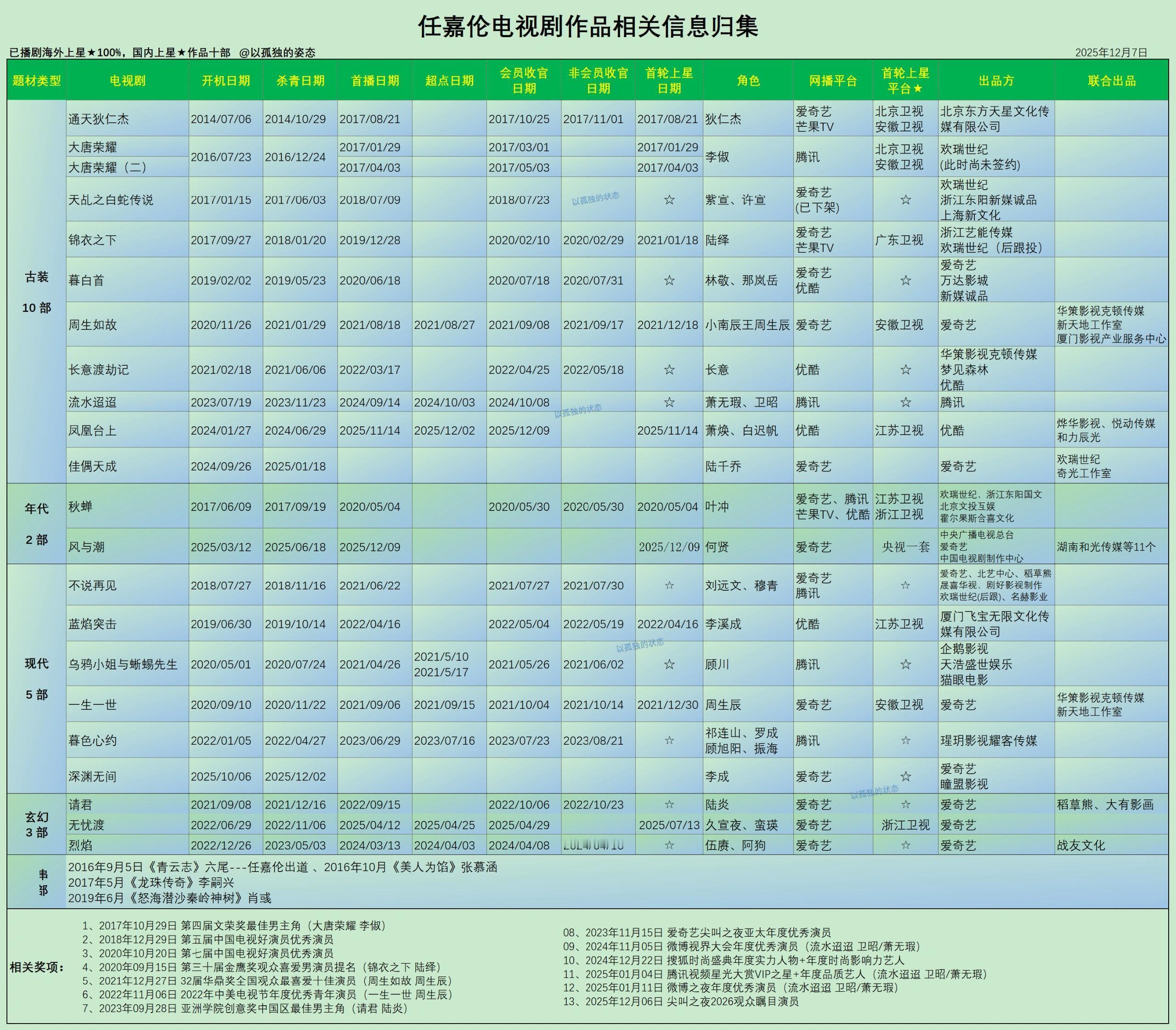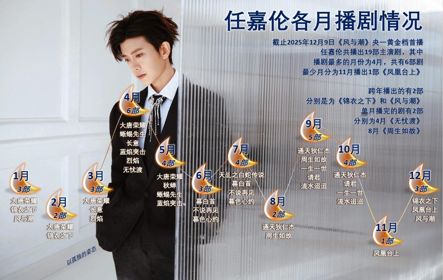 任嘉伦出道9年已播23部剧其中,主演19部,客串4部目前待播剧还剩3部21年跨年