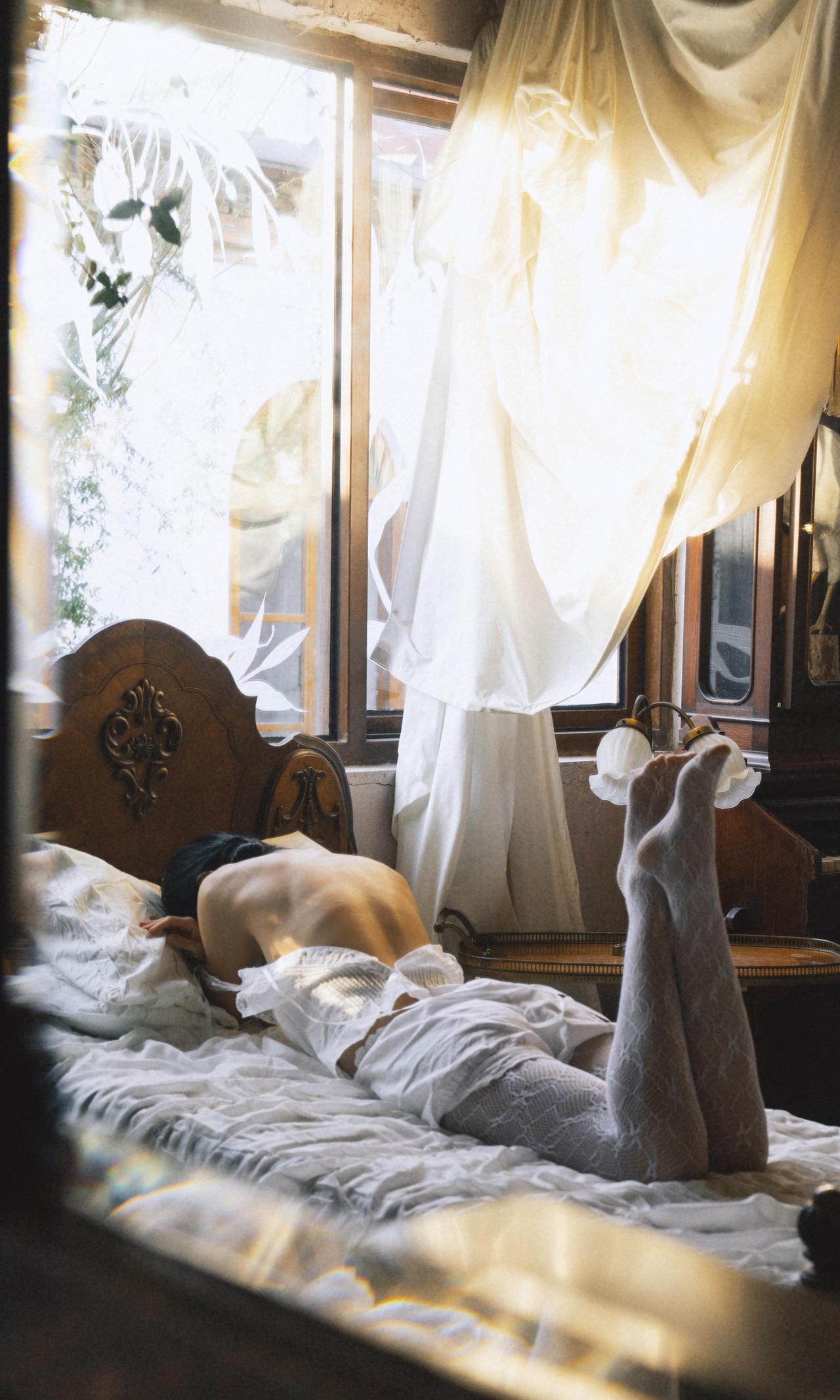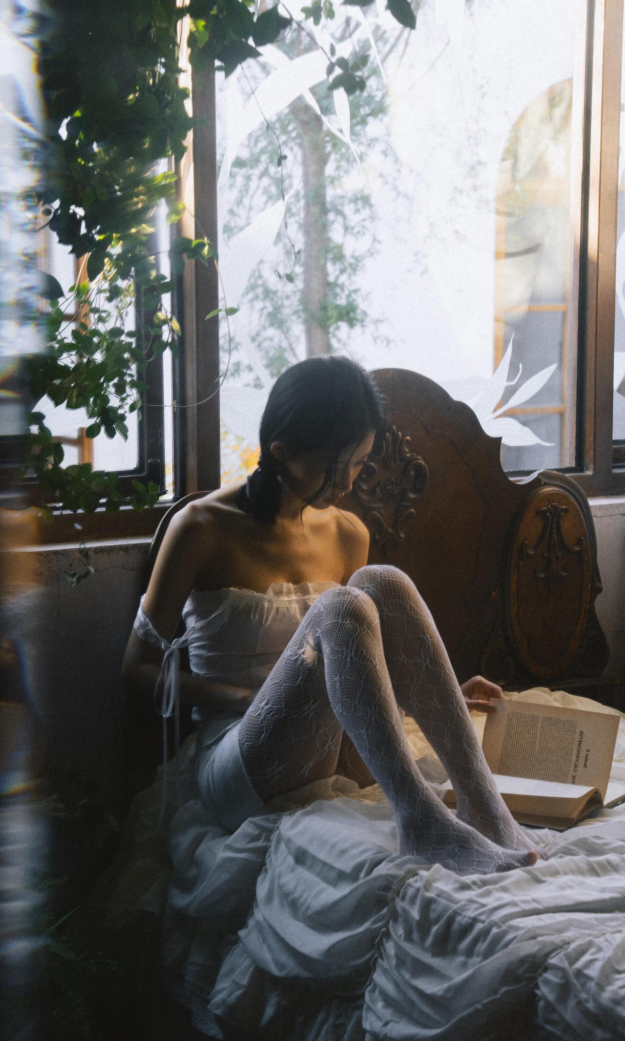 【无人陪我度黄昏】 晒图笔记大赛 (人像写真作品分享) 摄影技巧分享: ①侧光塑造质感:利用窗边柔和侧光,勾勒皮肤、蕾丝的纹理,明暗对比让画面更通透; ②复古场景衬氛围:老家具、纱帘等复古元素,和白色穿搭形成温柔调性; ③松弛肢体显情绪:自然蜷缩、垂落的肢体姿态,弱化摆拍感,传递慵懒松弛的情绪。