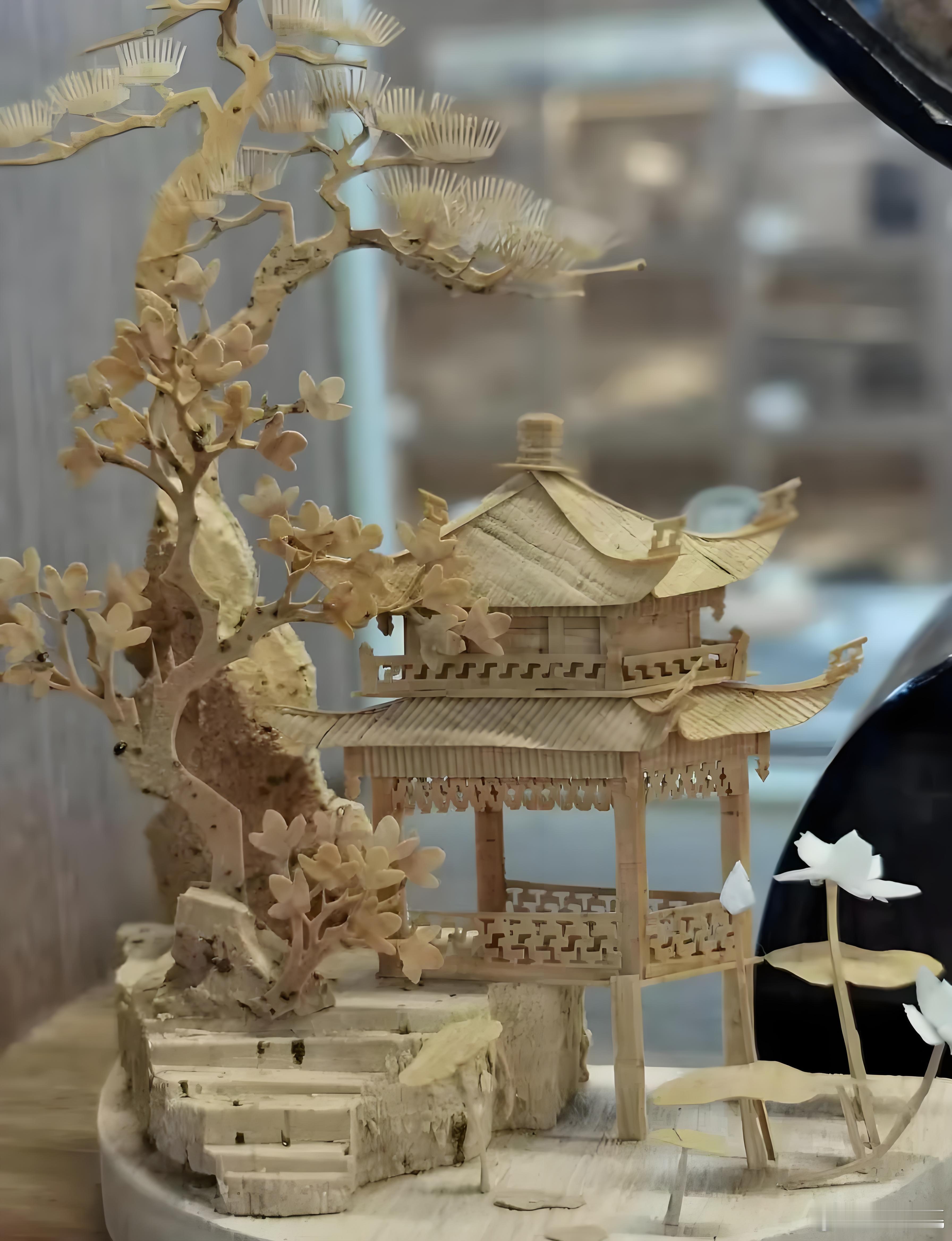 这个顶流发饰太上头了中国人把亭台楼阁戴在头上软木画制作太考验手艺!上千零部件精雕细琢,能完成作品的匠人,这份匠心真的让人肃然起敬