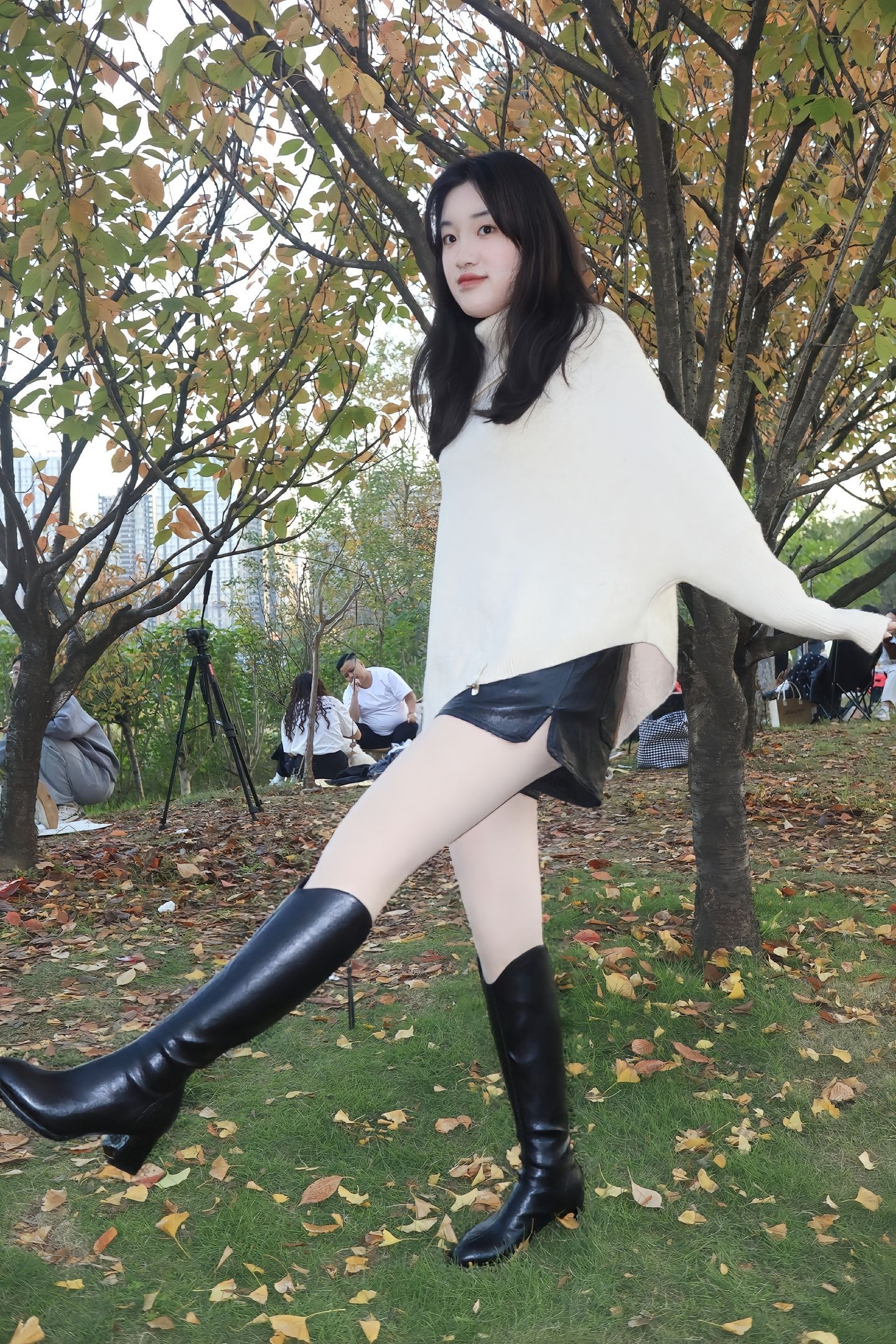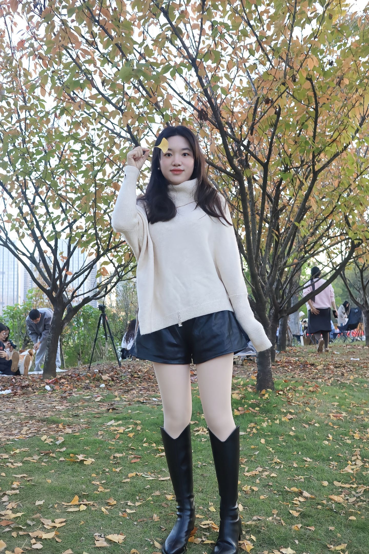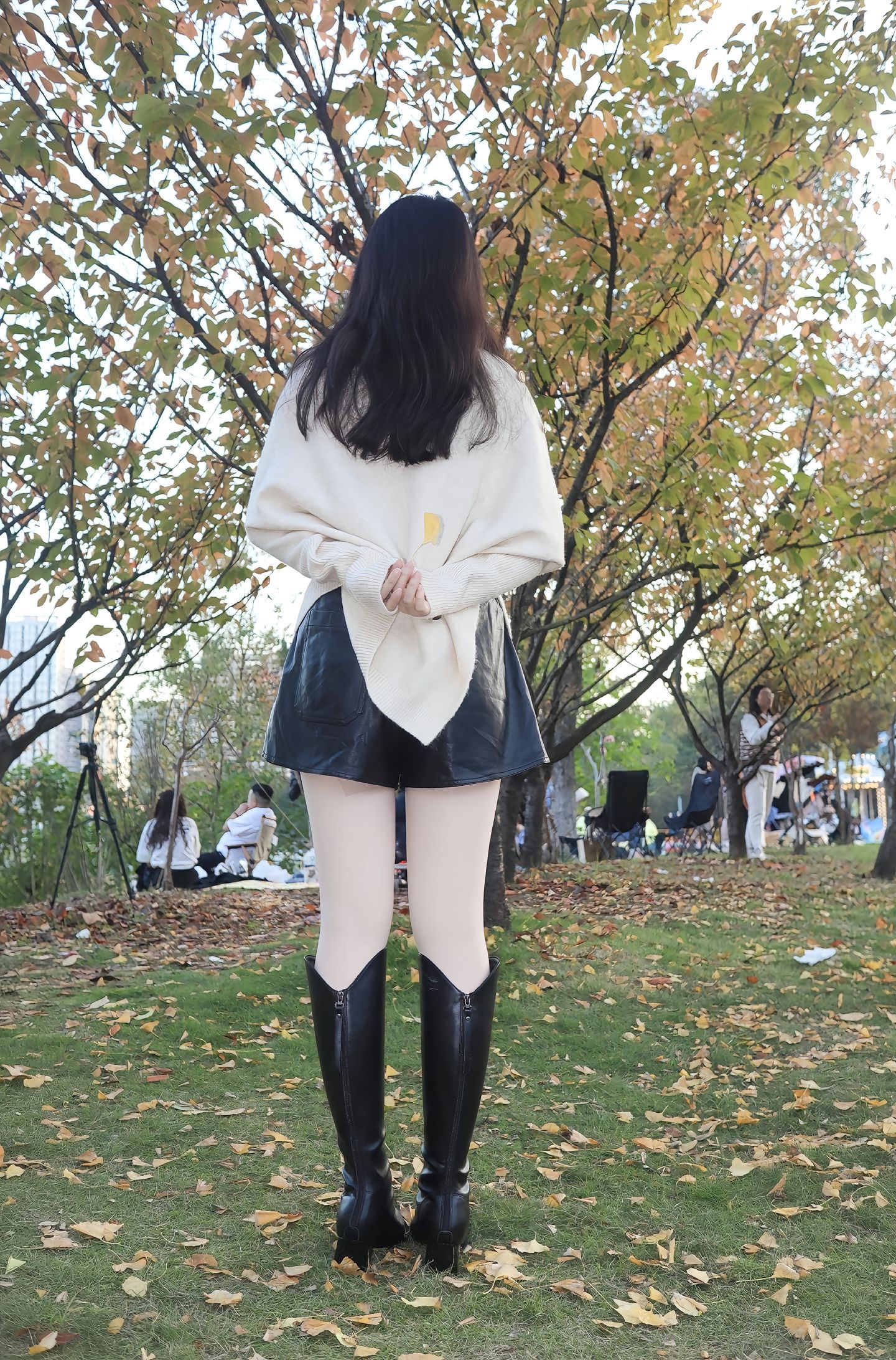 光腿神器长靴甜妹和冬天绑定啦!暖阳下的幸福时光今日穿搭