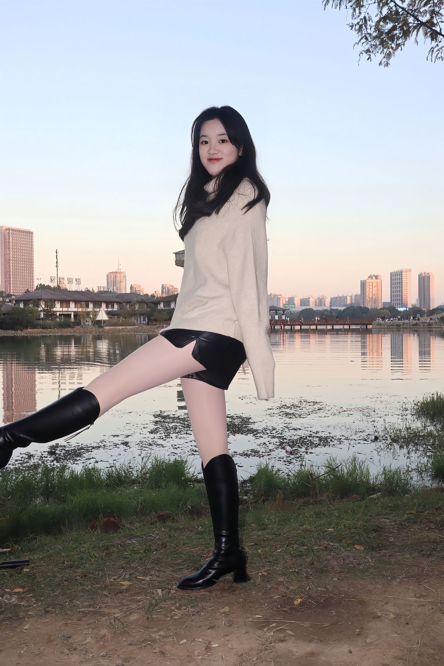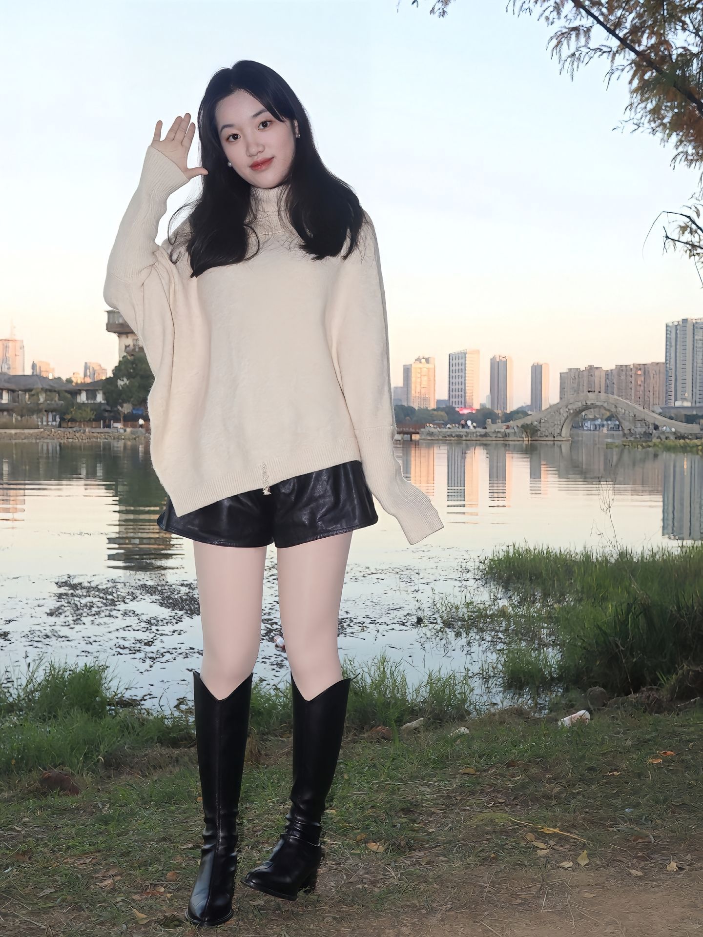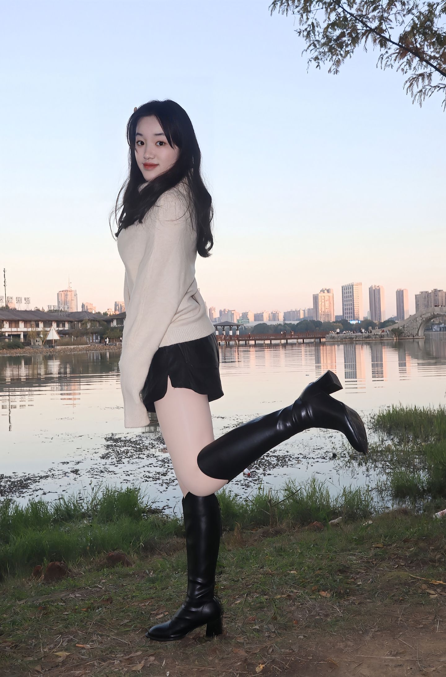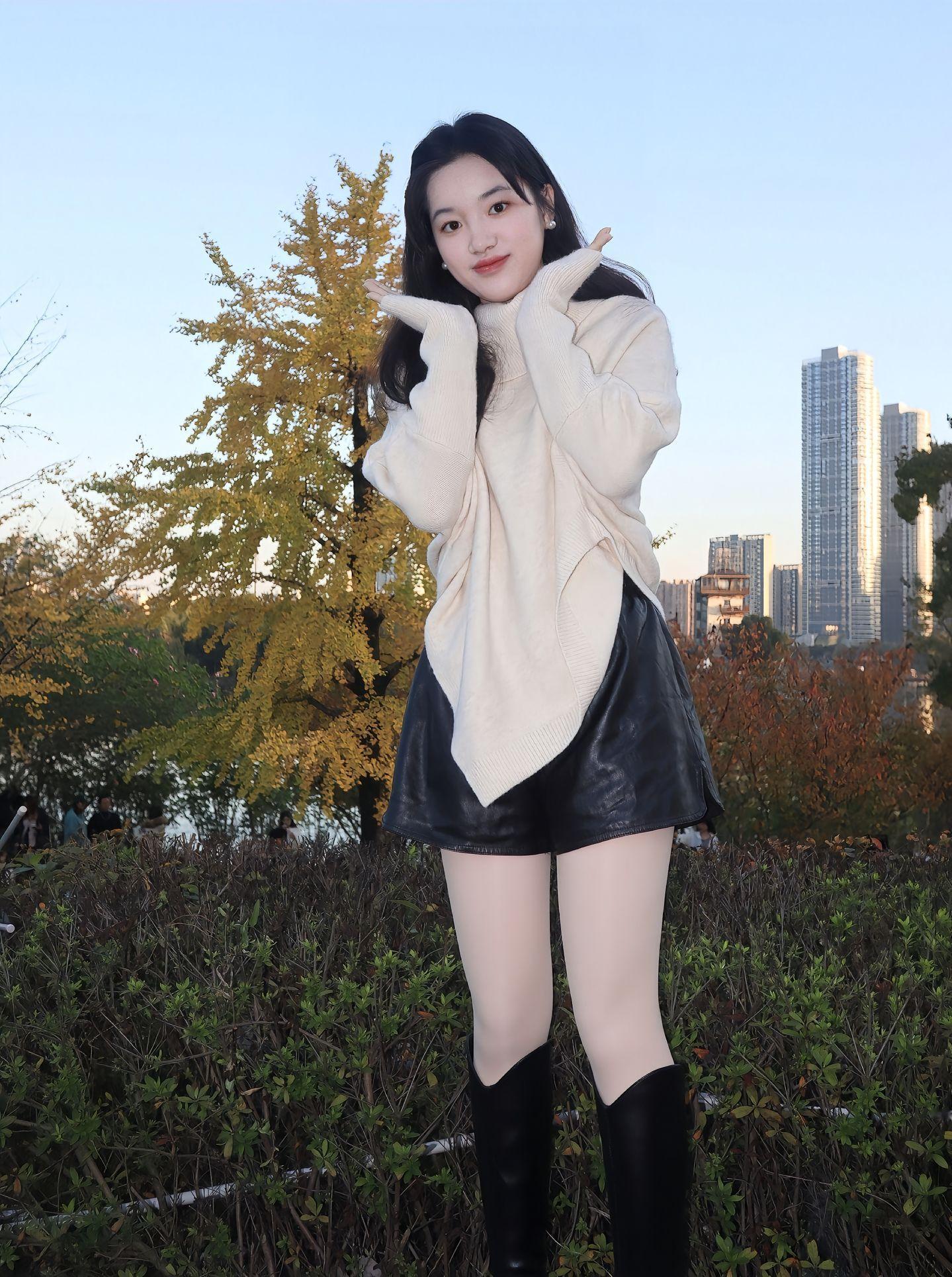 光腿神器长靴甜妹和冬天绑定啦!暖阳下的幸福时光今日穿搭