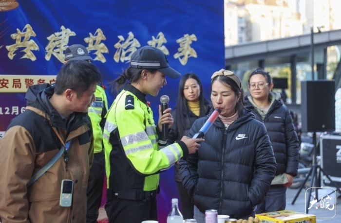 参与酒精测试互动,观看擒敌拳,学习防诈知识,12月6日15时,合肥肥东县公安局在吾悦广场举办以“平安法治肥东,共建共治共享”为主题的大型警务广场活动。