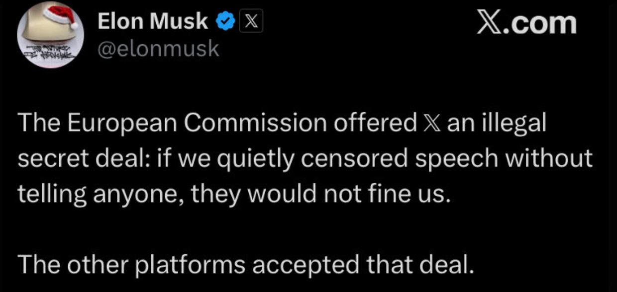 马斯克史无前例大口径炮轰欧洲 欧盟以违反《数位服务法》的打假规定为由,对X