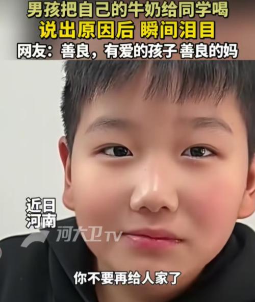 “这小男孩日后必成大器!”在河南,妈妈发现儿子最近有点反常——每天特意给他买的牛奶,他居然全给了同学。妈妈实在忍不住追问,儿子的回答让妈妈瞬间红了眼眶…… 更令人动容的是,当孩子怯生生问“能带三盒吗”时,妈妈毫不犹豫连说三个“管”。 而这个简单却有力的回应,守护了孩子心中最宝贵的善良。 事情始于一个平常的傍晚。 那天男孩儿的妈妈提前到校,无意间瞥见儿子正把牛奶塞给一个衣衫略显破旧的男孩。 想着这是咋回事,他不是最喜欢喝这个牛奶的吗,怎么舍得分享给别人。 再联想到这几天孩子反常的举动,一个想法悠然而生。 孩子不会被霸凌了吧,被人逼着给牛奶。 于是那天晚上吃饭的时候,妈妈终于忍不住直接点破:"宝贝,你为什么天天把牛奶送给同学啊?是不是有人逼你这么做的?" 儿子抬起小脸,眼睛清澈见底:是我自己要给的。 那他的妈妈也会给他买牛奶的呀! 妈妈本能地想到现在社会复杂,怕孩子被人占便宜。 这是天下父母最常见的担忧。 然而儿子低头沉默片刻,然后用轻得几乎听不见的声音说:“他没有妈妈。” 这五个字像一记重锤,击碎了妈妈所有的疑虑。 小男孩接着又说,我只是想让他也喝到牛奶。 空气顿时凝固了几秒。 此时的妈妈瞬间明白,儿子不是在“分享过剩”,而是在默默补缺,补那个孩子生命中最重要的缺失。 气氛缓和后,妈妈温柔的说:“那你明天带两盒,你们一人一盒,你也得喝。” 没想到儿子仰起小脸,眼神期待地问:“那...能带三盒吗?” 妈妈一愣,为啥啊? 儿子轻声解释:“他还有个小妹...我每次给他牛奶,他都不舍得喝,要带回家给妹妹。” 原来,这份善意不是点到为止,而是环环相扣:同学心疼妹妹,儿子心疼同学,而妈妈,此刻选择了心疼儿子的这份心疼。 听到这话的妈妈没有丝毫犹豫,连说三个“管管管!” 而这简单的回应,被网友称为“年度最暖对话”。 没有讲大道理,没有斤斤计较,只有全然的支持。 儿子不仅关心同学,还细心到注意到同学对妹妹的疼爱。 而这种纯粹的善意,没有任何算计,只是本能地想要帮助需要帮助的人。 事后,这位妈妈分享道:“当时心里又酸又暖。酸的是那个没妈的孩子和他妹妹,暖的是自己的孩子这么懂事。” 之后她不仅爽快同意带三盒牛奶,还开始给儿子多准备一份点心,因为发现儿子时常把自己的零食分给那个同学,而同学的午餐常常只是一个冷馒头。 其实这个故事最打动人的,是善意的循环与传递。 同学拿到牛奶后,自己从不舍得喝,而是带回家给妹妹。 他甚至偷偷收集空牛奶盒,说等攒够十个,就寄给在外地打工的爸爸看。 而小男孩之所以能如此细腻地体察他人的困难,是因为他成长在一个充满爱的家庭中。 网友一针见血地指出:“善良的孩子背后,一定站着能听懂他善良的家长。” 而这种善意的传递超越了家庭。 班上另一个家长留言说,她儿子曾连续三年把学校订的牛奶让给一个单亲同学,直到那个同学转学,她才知道真相。 这个故事引发了对“富养”的重新思考。 真正的富养,不是给孩子买最贵的衣服、报最贵的补习班,而是培养一颗温暖、善良的心。 哈佛大学“推广关爱”项目研究指出,约80%的年轻人认为父母更关注他们的成绩或开心与否,而不在意他们是否关心别人。 而这位河南妈妈的做法恰恰相反,当孩子的善良与常规认知冲突时,她选择了倾听和理解。 正如心理学家所说,想要孩子关心他人、有礼貌、负责任,父母需要以身作则,并肯定孩子关心他人的行为。 而这个小男孩的善良,正是家庭教育开出的最美花朵。 一瓶牛奶值多少钱?不过几元钱。 但它所承载的温暖,却无法用价格衡量。 在这个追逐功利的世界里,这个孩子用最朴素的方式告诉我们:真正的教养,是看见他人的苦难时自然流露的悲悯。 而这种微小善意的力量,可能不会改变世界,但足以在绝望的裂缝中种下一束光。 当越来越多的孩子学会用善良看待世界,这个世界自然会变得更加温暖。 后来,有志愿者想帮助那个没有妈妈的家庭,小男孩却悄悄说:“不用帮,他自己能行。” 他理解尊严和善良同样重要。 而这个秋天,一瓶普通的牛奶,照见了三个孩子的纯真,一个懂得担当的哥哥,一个默默关怀的同学,一个被哥哥爱护的妹妹。 在这背后,是一个用三个“管”字守护善良的母亲。 正如一位网友所说:“善良的孩子背后,一定站着能听懂他善良的家长。” 家庭是孩子的第一课堂,而善良,是最好的家教。 而这个世界最需要的不是聪明人,而是温暖的人。 主要信源:(男孩把自己的牛奶给同学喝了说出原因后瞬间泪目——河南日报网)