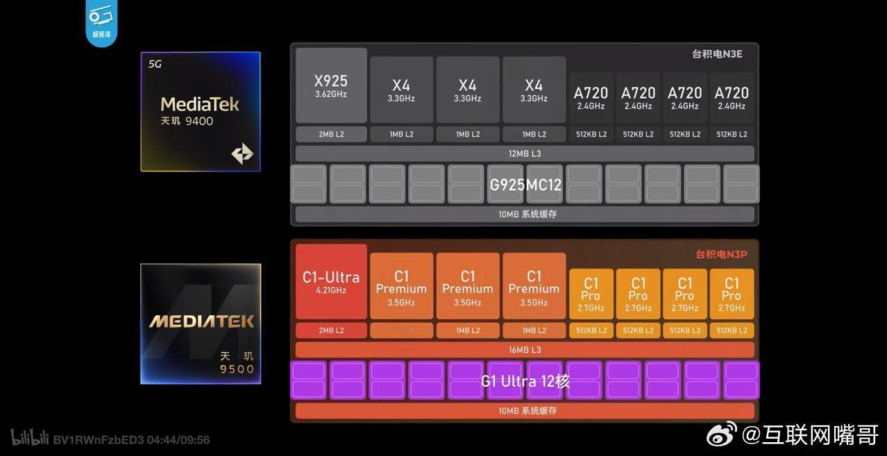 天玑 9500 和第五代骁龙 8 至尊版的二级缓存都可以看出来,这两款处理器的侧
