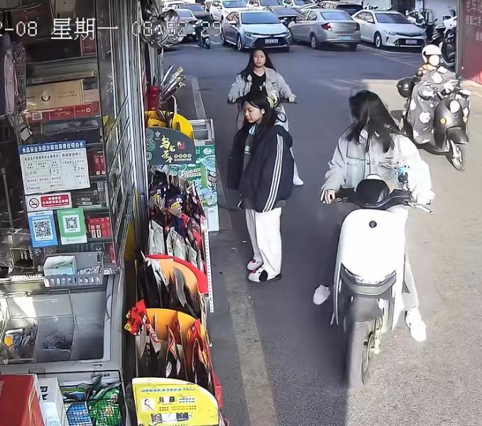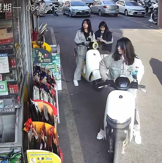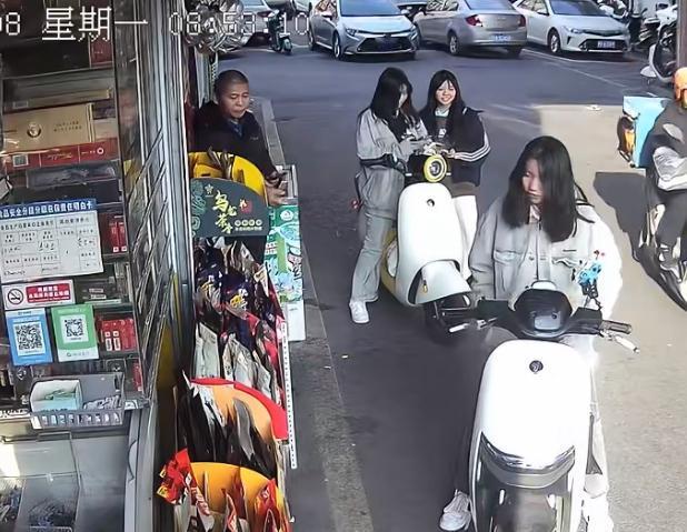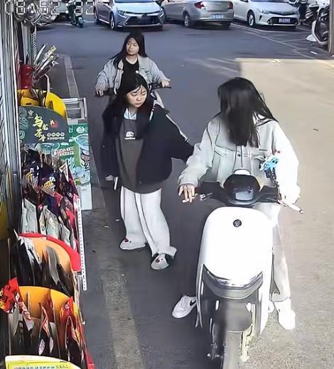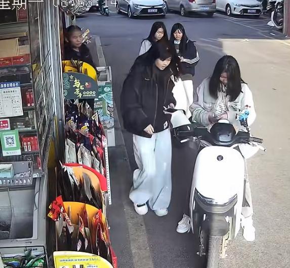 这一伙精神小妹太无耻了,偷店门口的槟榔,难怪有些便利店要用渔网把槟榔和烟包起来就是防这些人的。这一伙四个人,其中一个进去假装买东西,转移视线。其中一个小妹趁机拿拿了一包贵的槟榔放在电瓶车上,老板有警觉,出来查看没发现问题,小妹们也很淡定。大姐偷东西 两女孩偷东西