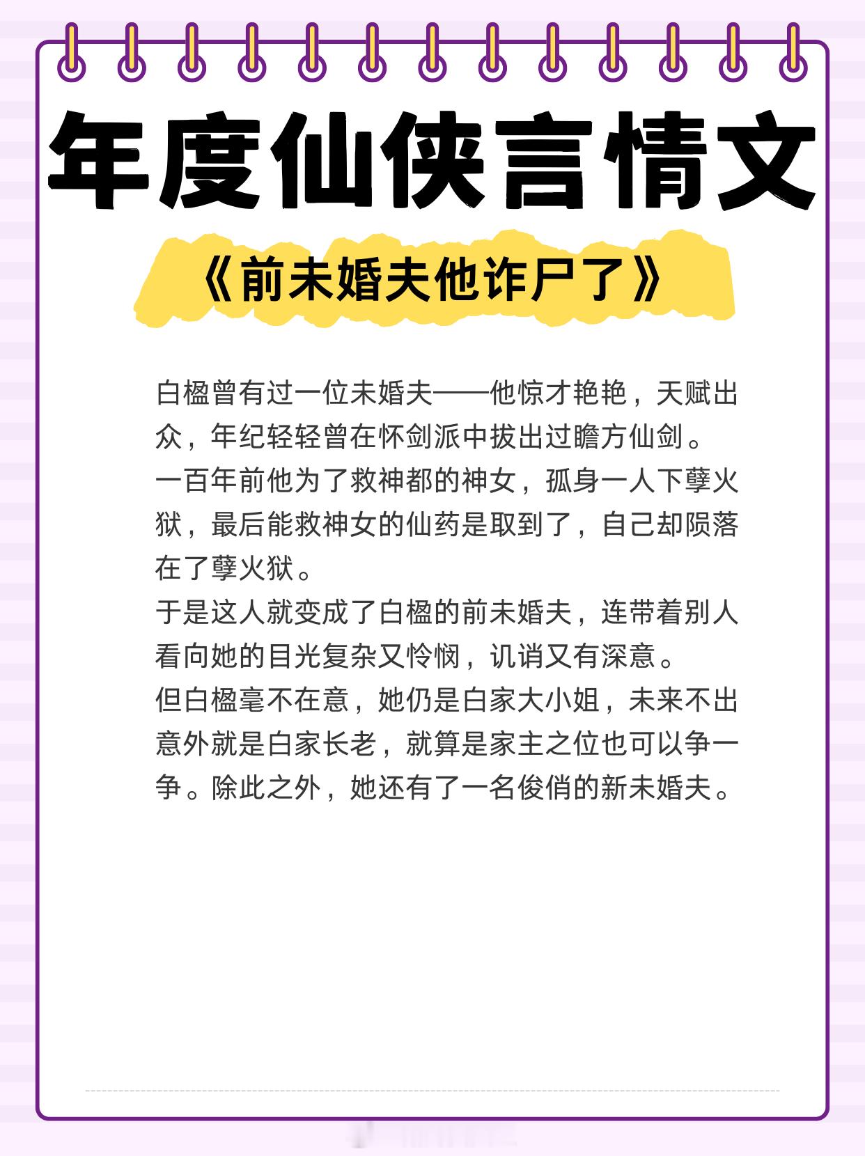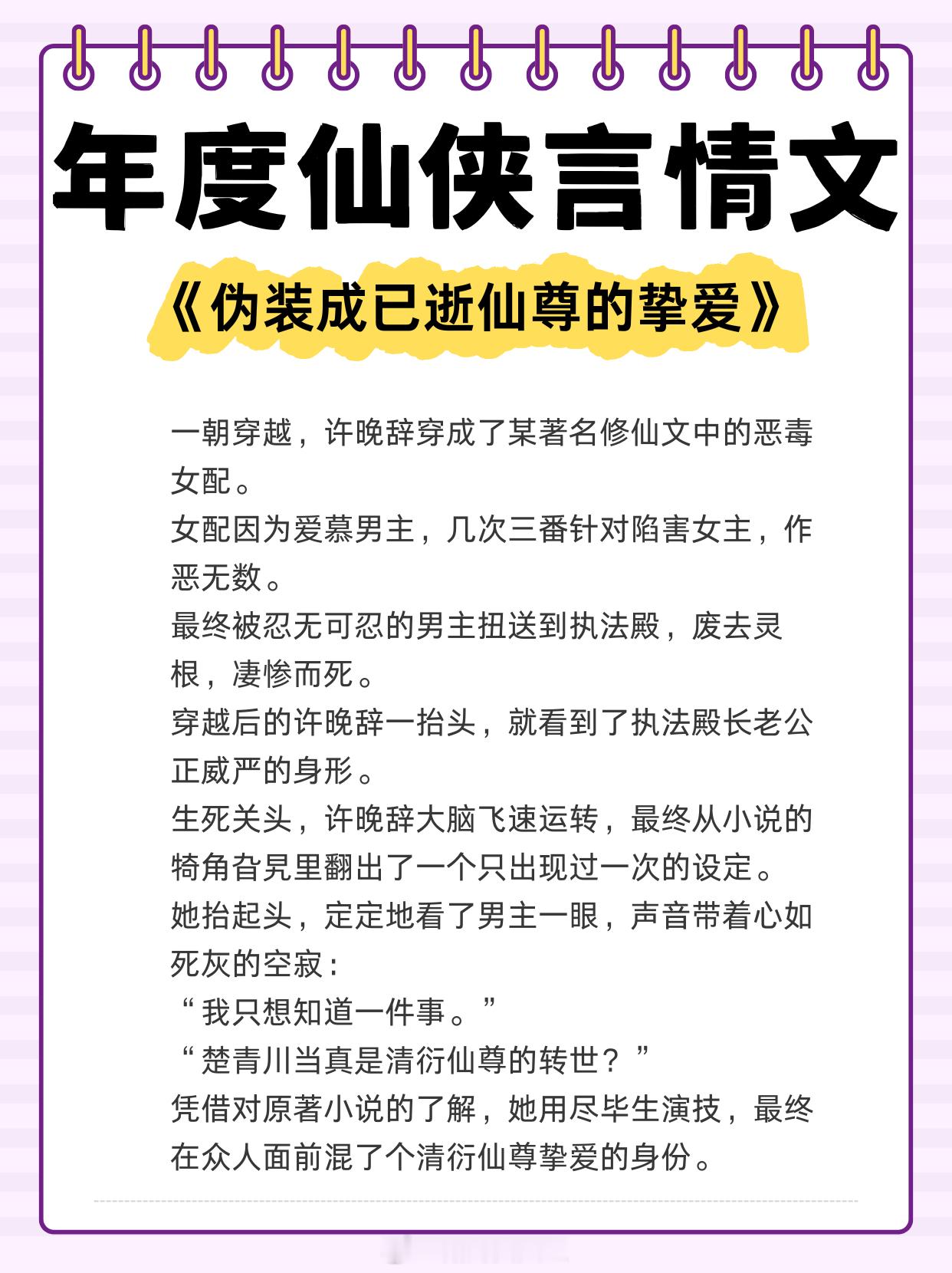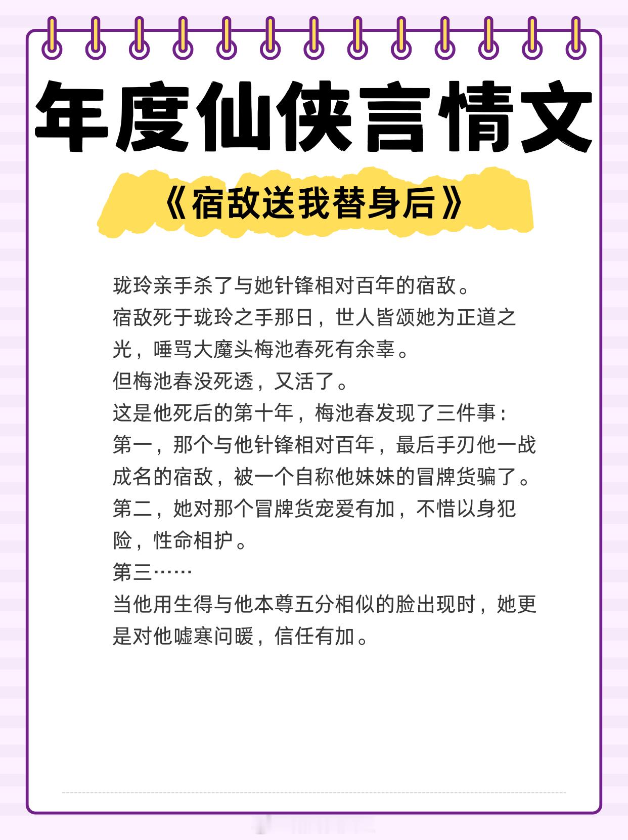 年度仙侠言情文,被我亲手捅死的白月光复活啦!1、《如何折辱清冷仙长》作者:黍宁2、《师母带我改嫁八次》作者:马桶上的小孩3、《宿敌送我替身后》作者:松庭4、《师父每天求我别破境了》作者:乌珑白桃5、《伪装成已逝仙尊的挚爱》作者:听风絮6、《鲨了我咱两口子一起飞升啊》作者:栖风念7、《错撩清冷仙君后》作者:枂下独酌8、《被大美人男二标记了怎么办》作者:秦灵书9、《前未婚夫他诈尸了》作者:平生约这小说写在我心趴上了 好看的小说推荐