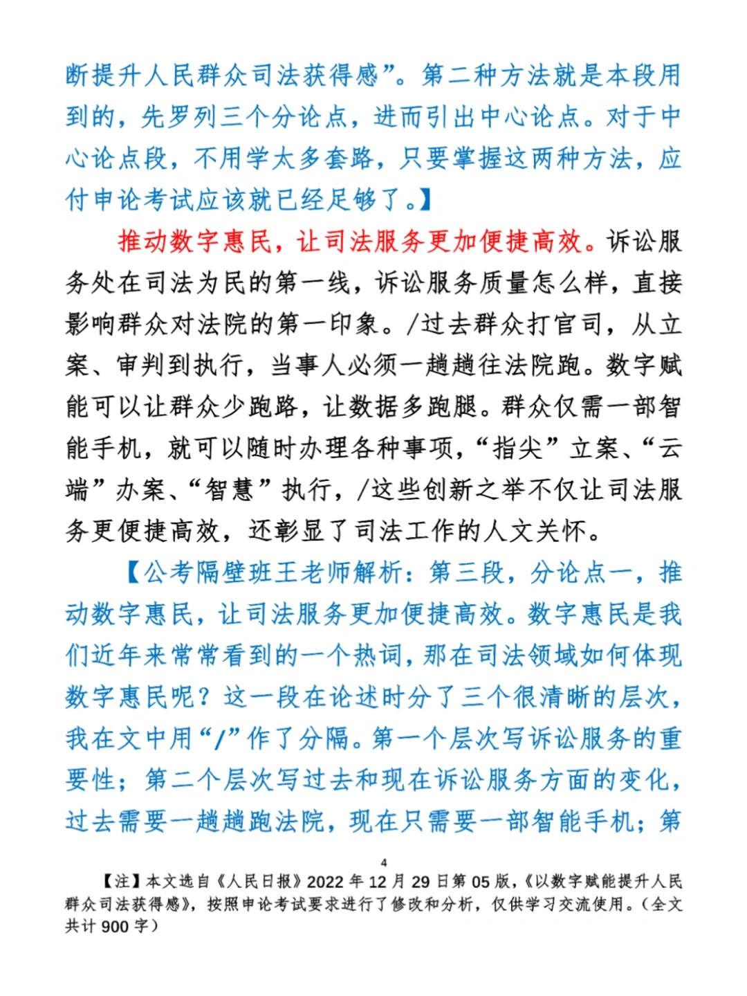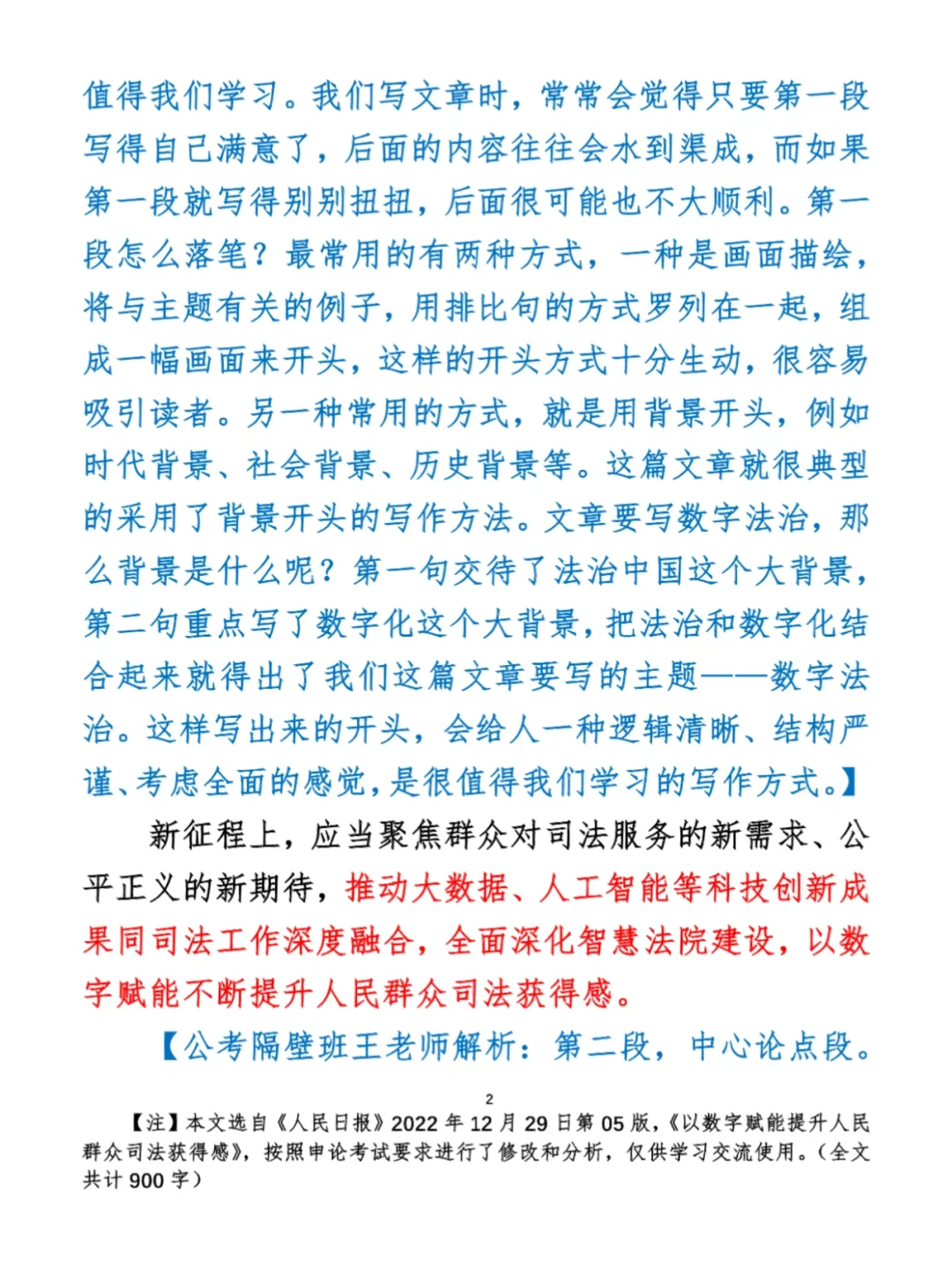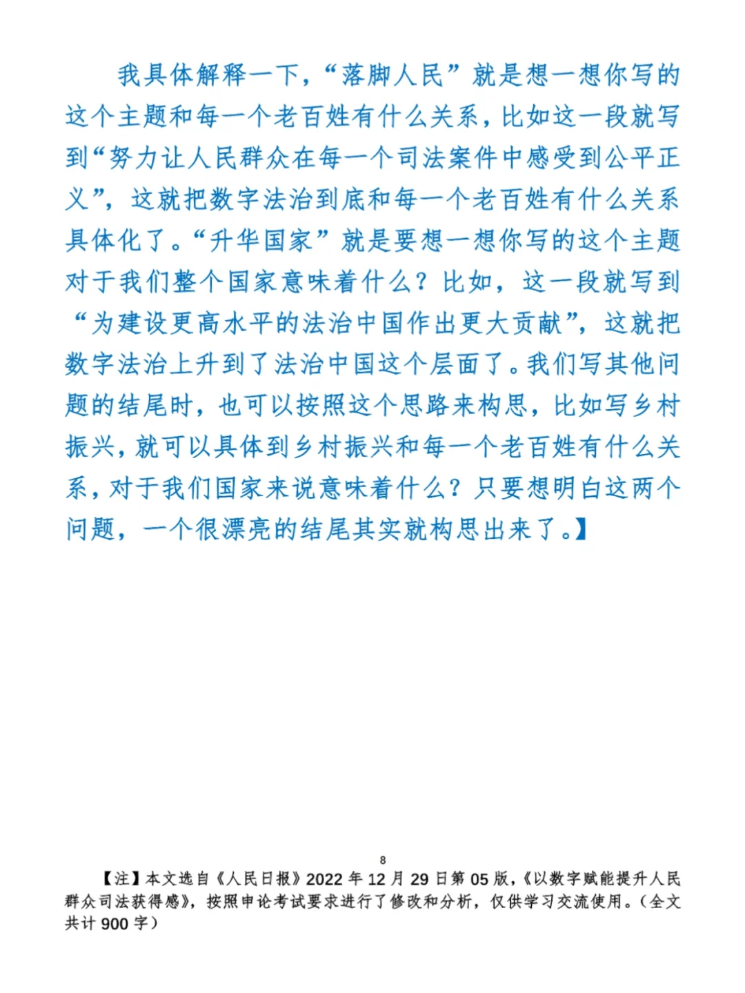 今日打卡作业: 1. 选一句你最喜欢的金句 2. 抄写全文红字+划线部分内容 3. 写完后在留言区打卡 ⭐️ ⭐️ ⭐️ ⭐️ ⭐️ ⭐️ 如何抄写:每天的抄写文章以图片形式发在“公考隔壁班王老师”账号,红色字是重点句和结构句,黑色字是正文,蓝色字是解析,大家抄写时不必抄蓝色字。建议先通读全文(包括蓝色解析部分),做到心中有数再开始抄写,效果会更好。 关于文章:抄写文章来源于人民日报,但每篇文章我都根据申论考试要求进行了修改,主要集中在四个方面:一是重写或修改开头、结尾;二是统一段首句句式结构;三是调整段落字数,使文章结构更均衡;四是简化复杂长难句,使之更具可模仿性。每篇文章修改幅度不同,无论修改多少,都是基于申论考试要求,毫无对人民日报文章品评之意。(此处致敬人民日报) 关于解析:我会在文章每段后面加一段蓝色字的解析,是我自己在抄写时的感悟,篇幅时间有限,不能面面俱到,但求重点突出。如果你有其他感悟,也希望能在评论里分享,我们相互学习、共同进步。 ⭐️ ⭐️ ⭐️ ⭐️ ⭐️ ⭐️ 这里是公考隔壁班王老师独创的“每天半小时・申论80分”抄写团,欢迎加入我们!