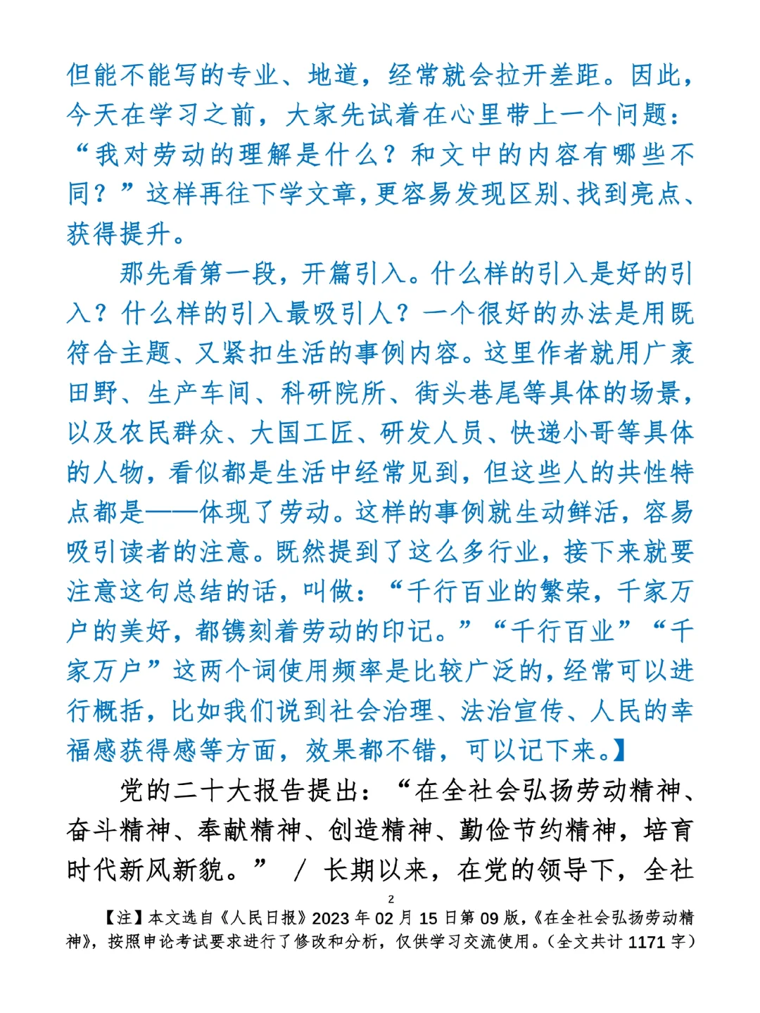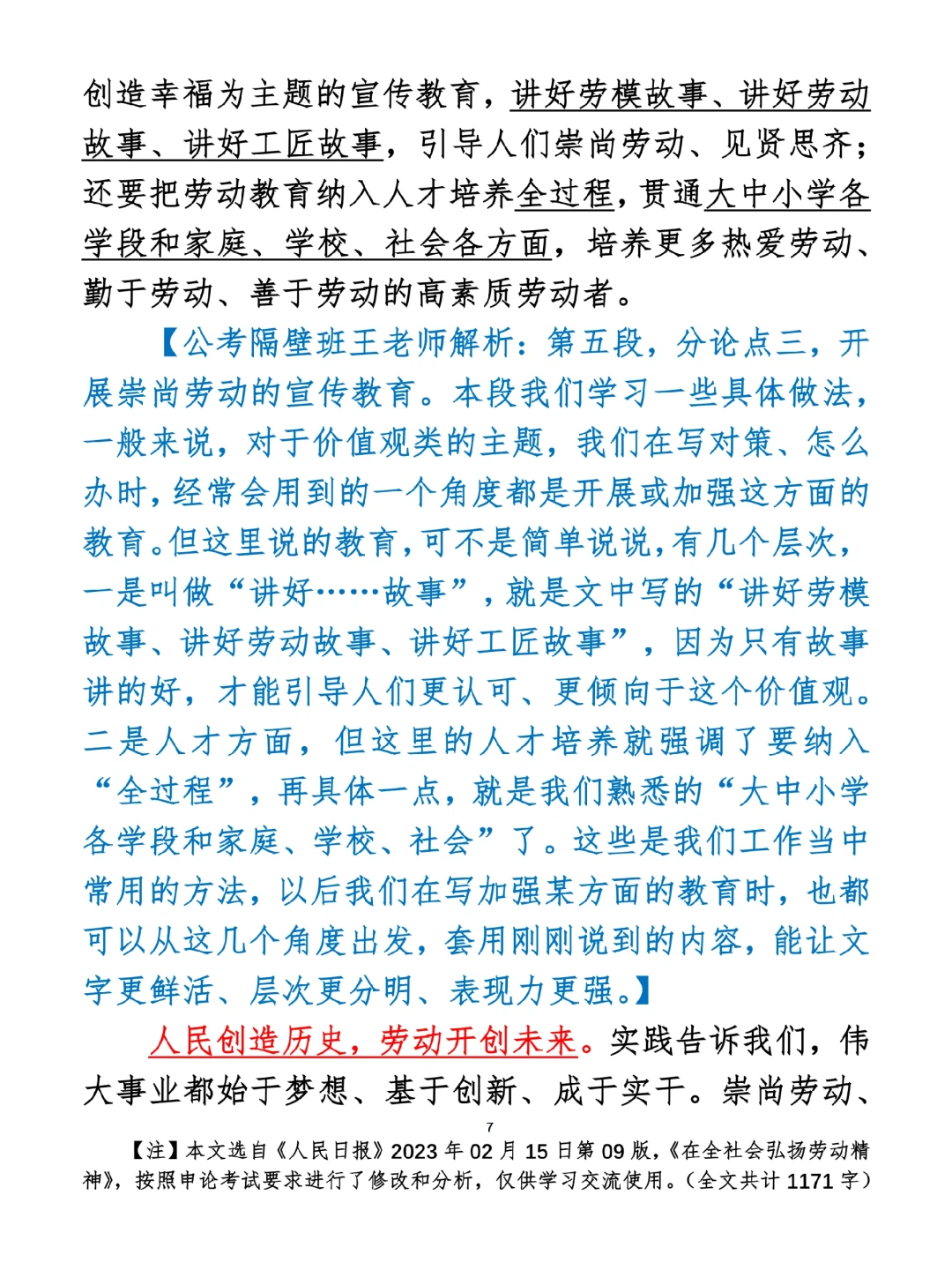看人民日报写申论热点:劳动精神