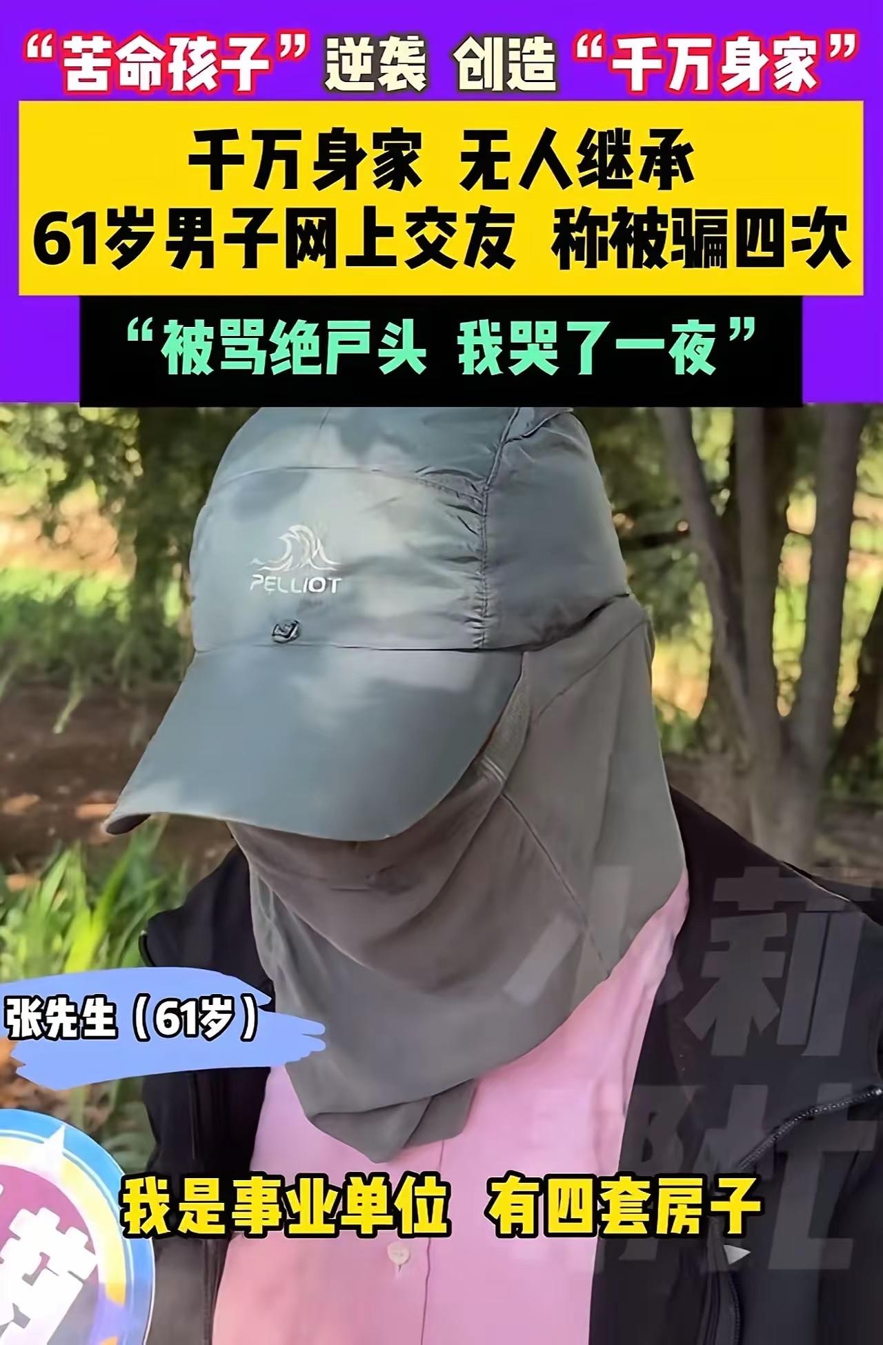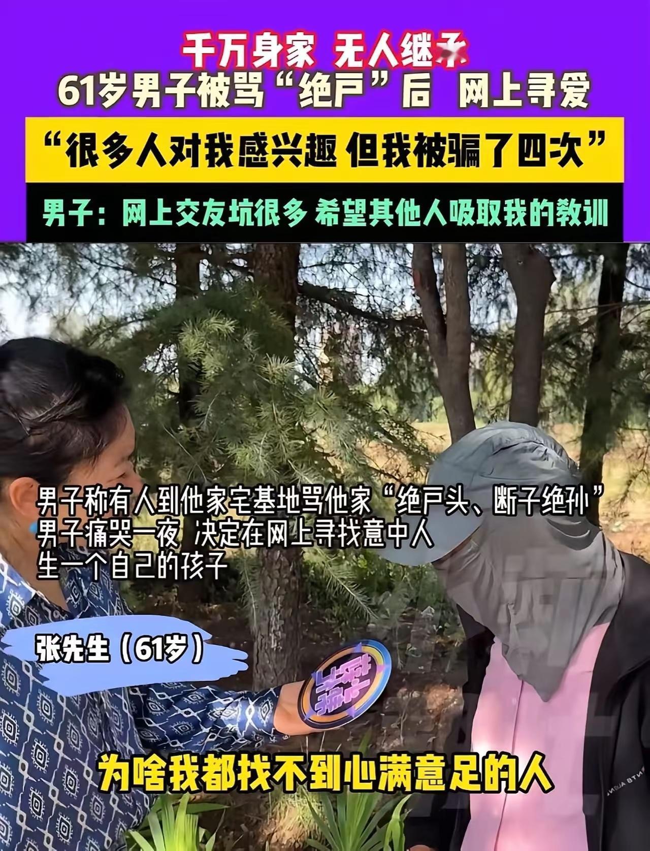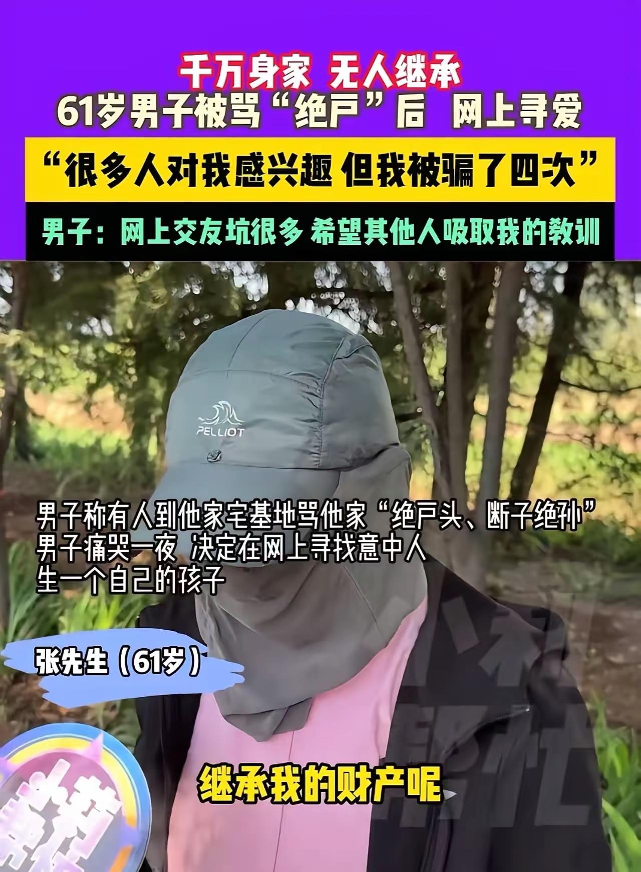 “原来身价千万也有烦恼!”61岁男子身价千万,可是这么多财产却无人继承,有人在他老家骂他“绝户,断子绝孙”,男子哭了一整夜,决定在网上寻找意中人,生一个孩子! 如今,他拥有了一份稳定的事业编制,名下有200万的存款,4套房产,其中还有一套位于繁华的深圳。 ​可是,在感情的世界里,他却一直徘徊在黑暗的角落。他经历过一次失败的婚姻,从那以后,便一直孤身一人。 谁能想到,这位在深圳有房、身家千万的老人,年轻时竟是从大山里走出来的穷小子。他叫李建国(化名),老家在辽宁一个偏远山村,父母都是面朝黄土背朝天的农民,家里兄弟三个,他是老大。18岁那年,为了给弟弟凑学费,他放弃了考大学的机会,揣着家里仅有的50块钱,坐上绿皮火车南下深圳打工。 在深圳的工厂里,他从流水线工人做起,每天工作14个小时,吃最便宜的盒饭,住最拥挤的集体宿舍。别人下班就睡觉、打牌,他却偷偷自学电工知识,周末泡在图书馆里啃专业书。凭着这股肯吃苦、爱钻研的劲儿,他考了电工证,从普通工人变成了技术骨干,后来又被单位推荐考了事业编制,成了体制内的技术人员。 攒下第一笔钱后,他没想着享受,而是果断在深圳关外买了一套小产权房——那时候深圳房价还没暴涨,这套房子花光了他所有积蓄,却让他在这座城市有了第一个落脚点。之后十几年,他跟着政策红利,又陆续投资了三套房产,两套在老家省会,一套在深圳核心区,加上多年攒下的存款,不知不觉就成了别人口中“身价千万”的人。 可财富积累的背后,是感情的空窗。30岁那年,经人介绍,他认识了老家的姑娘张某,两人相处半年就结婚了。那时候他一门心思扑在工作上,经常出差加班,家里的事全靠妻子打理。妻子想要个孩子,他总说“再等等,等我事业稳定了”,这一等就是五年。妻子渐渐有了怨言,两人沟通越来越少,矛盾越来越多,最后因为“三观不合”和平离婚。 离婚后的李建国,把所有精力都放在了工作和投资上。他觉得“感情不可靠,只有钱和房子才踏实”,可随着年龄增长,身边的朋友、同事都儿女绕膝,他才渐渐觉得孤单。每次回老家,看着弟弟们的孩子喊他“大伯”,围着他要红包,他心里又暖又酸。尤其是逢年过节,别人家热热闹闹,他却只能一个人在深圳的大房子里吃外卖,房子采光再好,也照不进心里的空荡。 真正让他崩溃的,是去年春节回老家。村里几个闲言碎语的老人,在背后指着他说“挣再多钱有什么用,连个后代都没有,真是绝户”“断子绝孙的命,再多房产也是给别人留的”。这些话像针一样扎进他心里,他从小在农村长大,深知“传宗接代”的观念有多根深蒂固。那天晚上,他一个人在老房子里哭了一整夜,看着窗外的月光,突然觉得自己奋斗了一辈子,挣下的千万家产,竟成了别人嘲笑他的把柄。 他不是没想过再找,可61岁的年纪,想找个合适的人太难了。身边的亲戚朋友给他介绍过几个,要么是冲着他的钱来的,要么是只想搭伙过日子,没人愿意给他生孩子。无奈之下,他才想到在网上发布征婚信息,坦诚自己的情况:“我有稳定收入,有房有存款,只想找一个三观合、愿意生个孩子的伴侣,以后财产都会留给孩子和她。” 帖子发出去后,有人骂他“异想天开”“一把年纪还想生孩子,太自私”,也有人佩服他的勇气,觉得“每个人都有追求幸福的权利”。李建国看到这些评论,心里五味杂陈。他知道自己年纪大了,生孩子有风险,可他就是想有个念想,想在老的时候有人陪在身边,想让自己的财产有个真正的继承人,而不是百年之后留给远房亲戚或者捐献出去。 其实李建国的烦恼,本质上是传统观念与现代生活的碰撞。在很多人看来,“传宗接代”是人生的必修课,可随着社会发展,越来越多的人选择单身、丁克,可对于李建国这样从传统环境走出来的人来说,“断子绝孙”依然是难以承受的指责。他的千万身家,没能填补他对“家”的渴望,也没能抵御传统观念的压力。 有人说他“有钱任性”,可谁又能懂他深夜里的孤独?61岁还想生孩子,或许有些不切实际,但这份对家庭的渴望,对亲情的期盼,却真实又动人。他只是想在人生的最后阶段,弥补年轻时的遗憾,拥有一个真正属于自己的家。 各位读者你们怎么看?欢迎在评论区讨论。