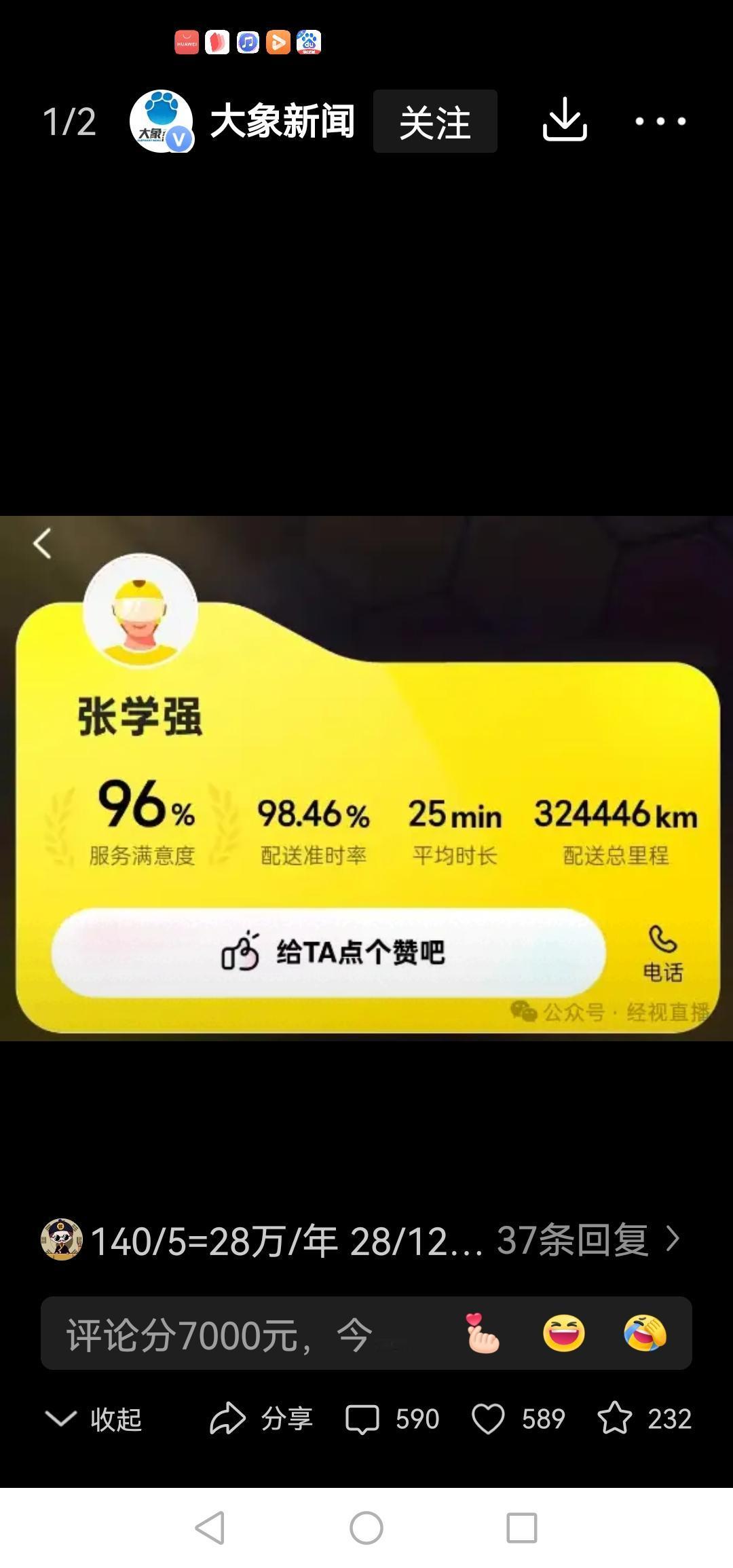 “单王”,让无数人鼓满奋发图强的风帆 今天,一则上海外卖小哥“单王”张学强送外卖5年,赚140万的消息登上热榜。不仅让人热血沸腾,鼓满奋发图强,自强不息的风帆。这则简单的消息有这样几个看点。 看点一,跑外卖,最简单劳动也能够实现励志梦想。张学强跑外卖5年,赚了140万。经过记者调查相关人员情况属实。尽管张学强跑外卖辛苦,专业。但是没有影响休息,没有出现身体问题。属于正常收入。这让无数对于跑外卖这个工作刮目相看,跑外卖这样的工作没有什么科技含量,没有学业要求,只要身体健康,吃苦耐劳,认真工作就能够实现。这样,通过张学强的事例,让无数青年人看点了生活的希望,点燃了生活,事业的热情。 看点二,青年人受点挫折不要害怕,生活有很多希望。张学强曾经看饭店失败过,欠下5万元的外债。做买卖没有挣钱范儿赔钱。张学强没有被失败下倒,而是认认真真,起早贪黑跑起来外卖。不仅还上了欠债,还剩下120多万。张学强准备东山再起,再次创业,精神可佳。 看点三,张学强讲求保护好自己休息,而不是蛮干。张学强尽管背负外债,干着最简单的跑外卖工作。但是,张学强十分注意身体,保证每天睡觉8小时以上。 张学强的励志经历,对于无数青年人是一个很好的成功榜样,教会青年人怎么面对失败,背负外债。怎么从事简单工作,实现自己梦想。怎么保护自己身体,坚持做好工作,怎么在失败中再次站起来。特别是张学强没有什么学历,没有什么特殊经历,就是一个普普通通的青年人。