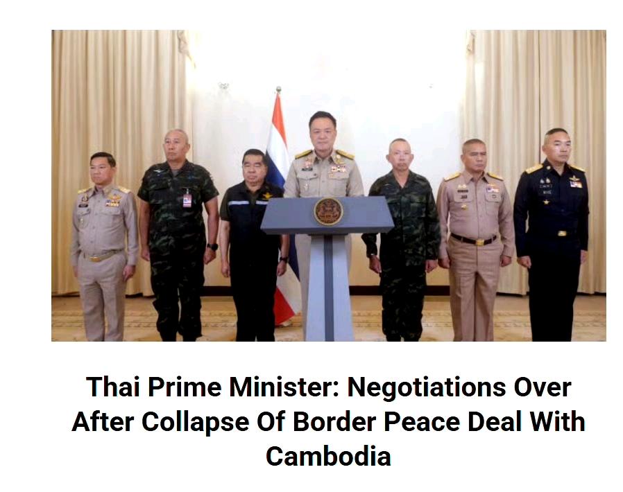 泰国总理阿努廷·查恩维拉库12月8日宣布,10月26日由马来西亚和美国共同保障的柬埔寨与泰国和平条约现已无效,并下令关闭所有与柬埔寨的所有谈判渠道。 起因是因为柬埔寨埋设的地雷导致很多泰国士兵受伤,双方12月7日和8日又一次发生交火,和上次一样,双方再次互相指责是对方先开得火,并且泰国这次态度很强硬,表示关闭了所有的谈判大门。 泰国和柬埔寨今年两度交火,并且可以剥了美国的面子再度交火,说明两国之间的矛盾很大,短期里面是不可弥补的。即使佩通坦不叫那一声叔叔,也会有其他导火索引发矛盾并交火。 交火已经是这两年国与国之间解决矛盾的手段。估计阿川从现在起每天工作30小时,也把这么多火灭不掉,当他不能灭这么多战火的时候,只有一个结果,就是自己“以身入局”。