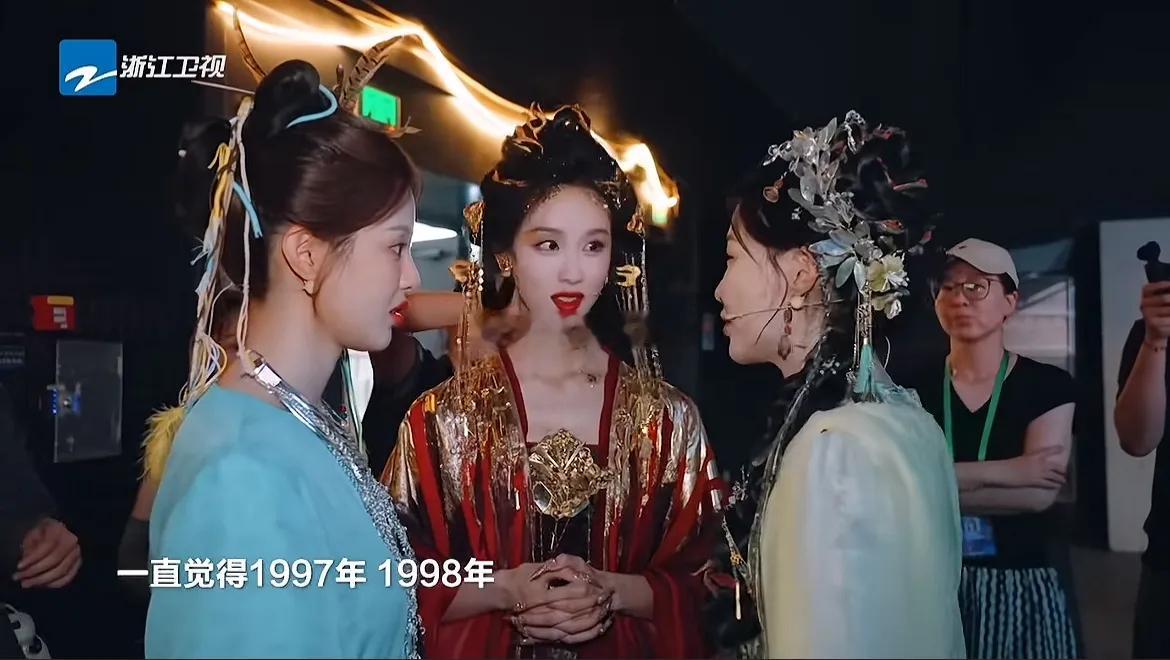 金靖说:“1997年都28了。”杨超越:“对,我都27了,你说我小,我都不好意思说。”金靖:“因为在我的脑海里,一直觉得97、98就只有20岁左右。”就连杨超越也觉得自己才20来岁。陈都灵说:“我觉得95年都很小。”然后杨超越说自己马上奔三了。金靖:“奔三其实也没什么感觉啦。”