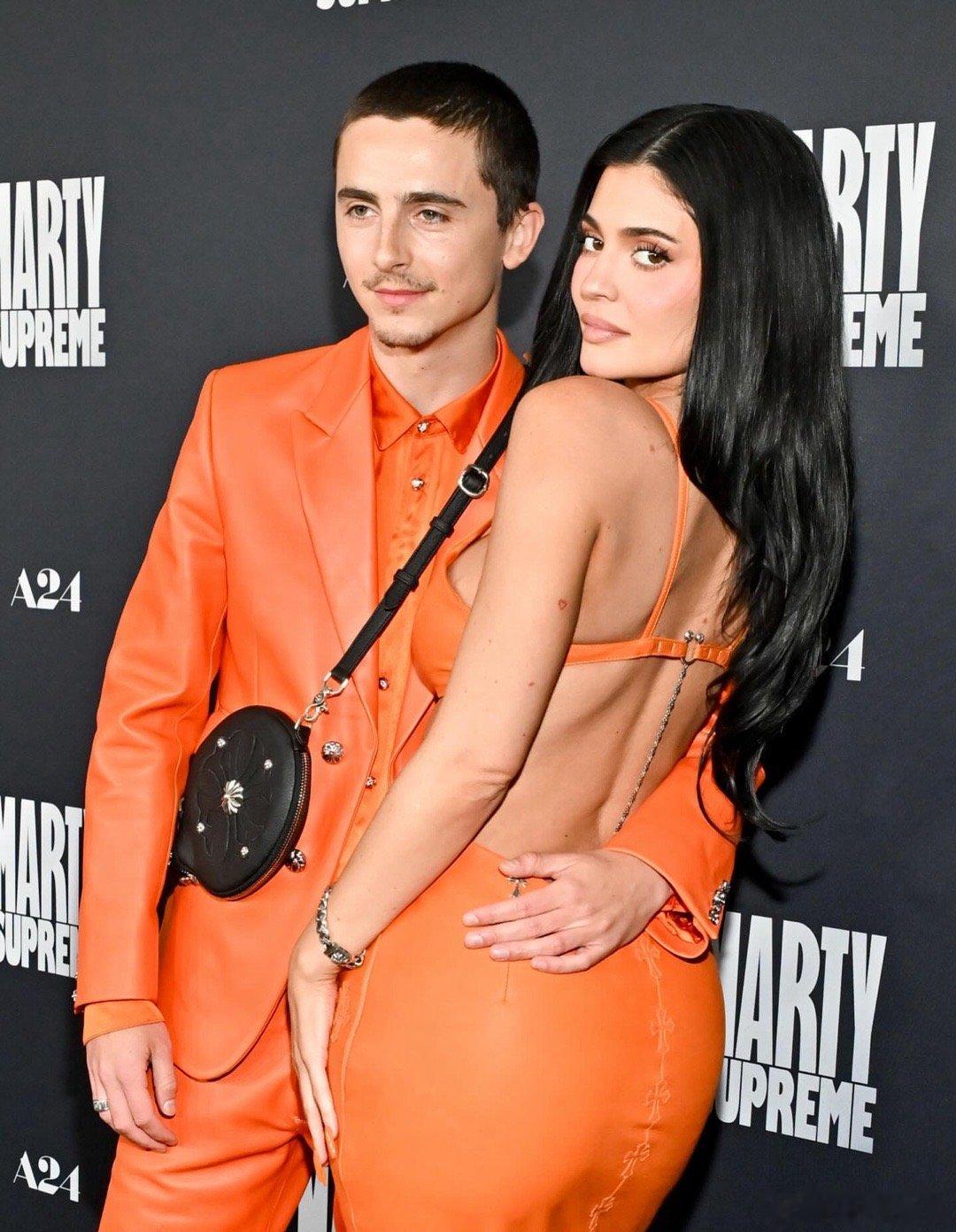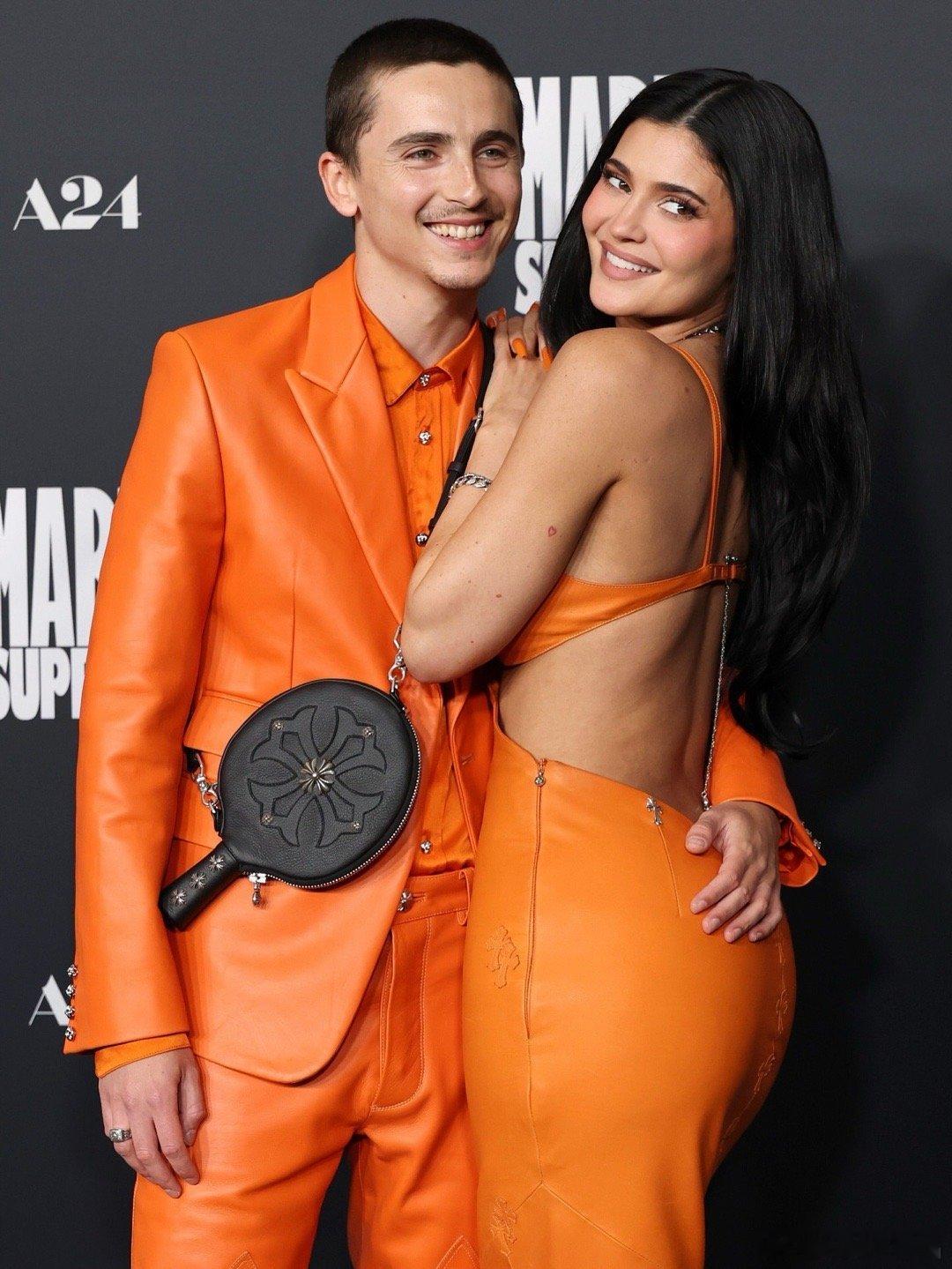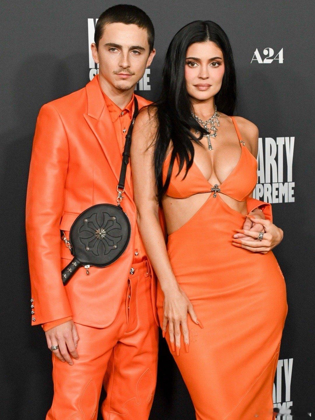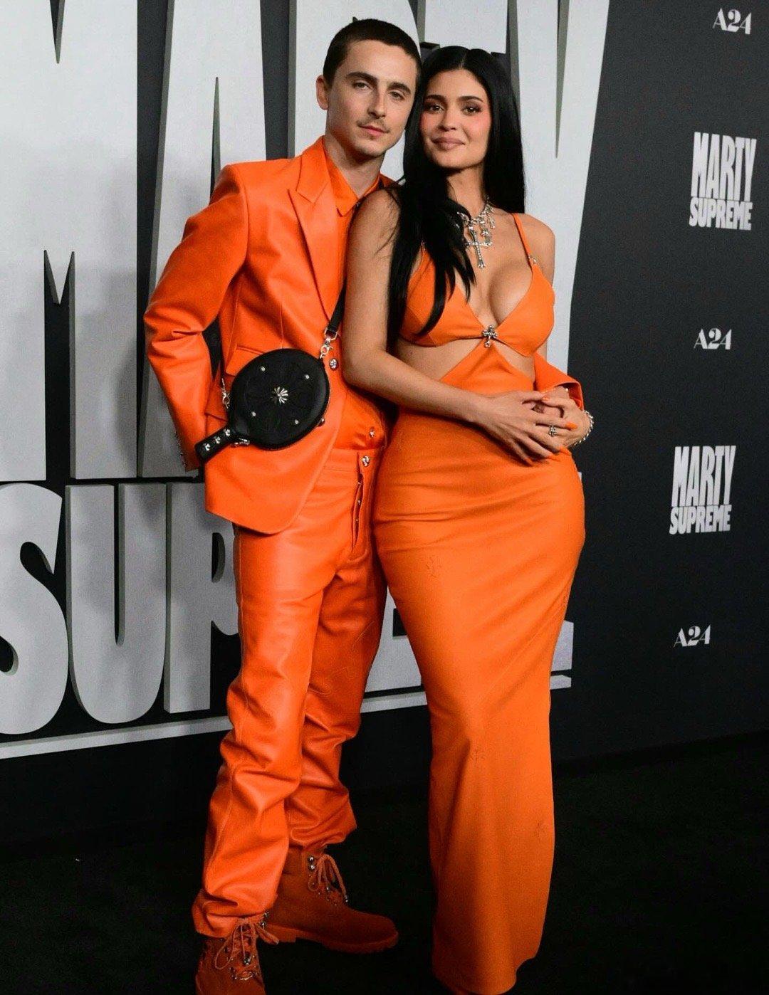 甜茶Timothee Chalamet和女友金小妹Kylie Jenner 在洛杉矶一同亮相他的新电影《Marty Supreme》首映礼,两人为了显得很搭,还穿了同橘色的克罗心情侣装。
