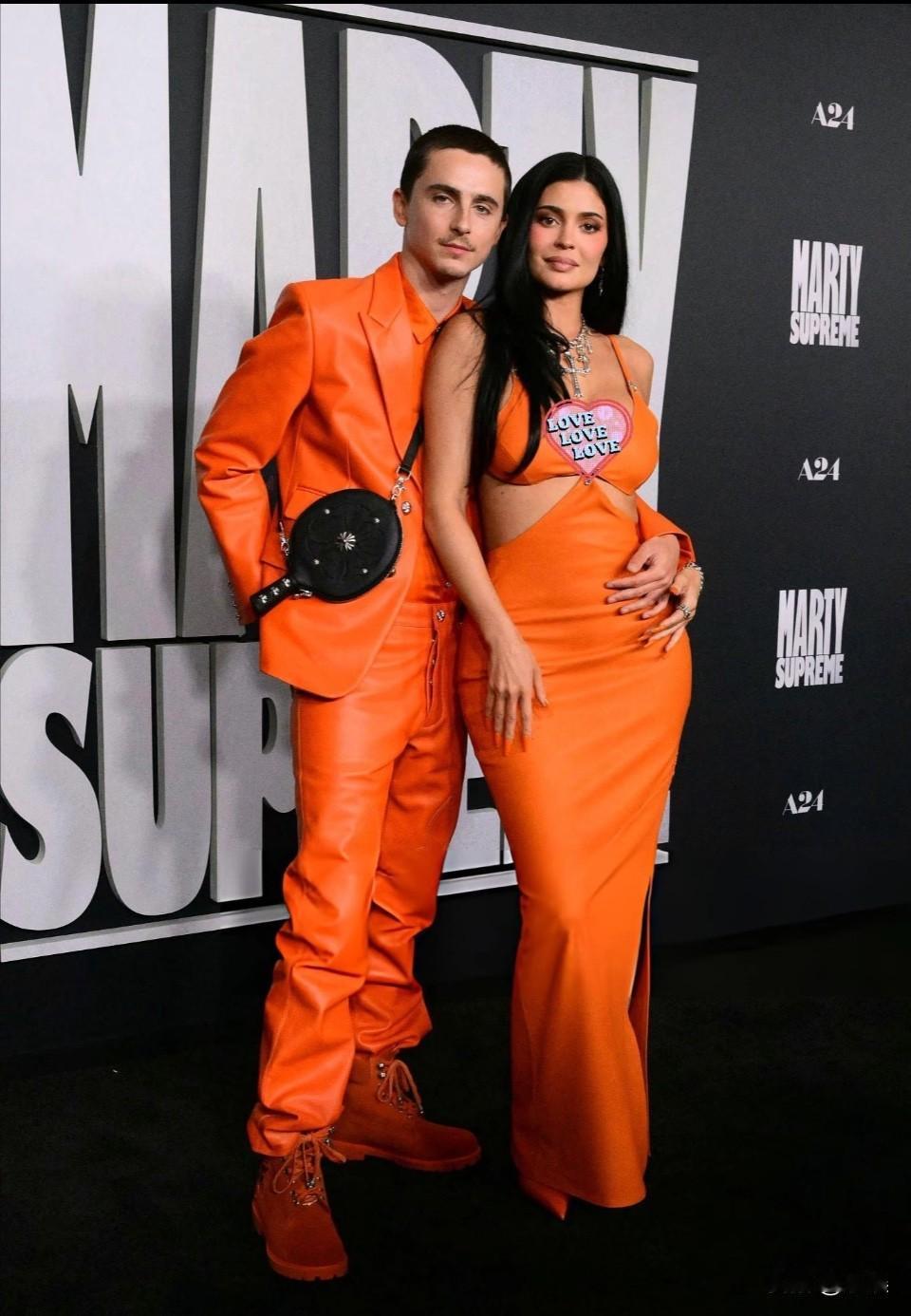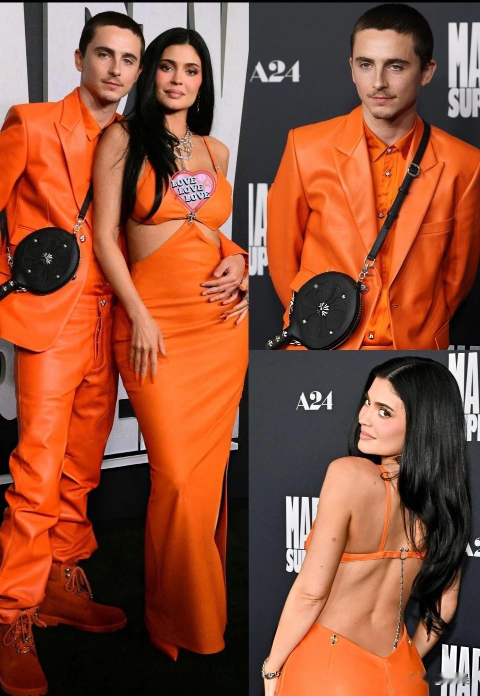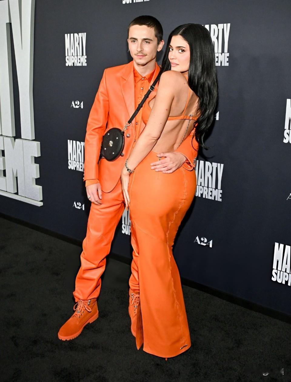 甜茶金小妹破分手谣言!穿情侣装高调走红毯 近日,美国演员“甜茶”-提莫西•查拉梅(Timothee Chalamet) 和女友“金小妹”-凯莉 • 詹娜(Kylie Jenner) 出席在美国洛杉矶举行的电影Marty Supreme 首映式。前阵有传谣两人分手,如今两人高调牵手同框,穿定制款Chrome Hearts 橙色情侣装亮相红毯,大方秀恩爱!詹娜甜茶